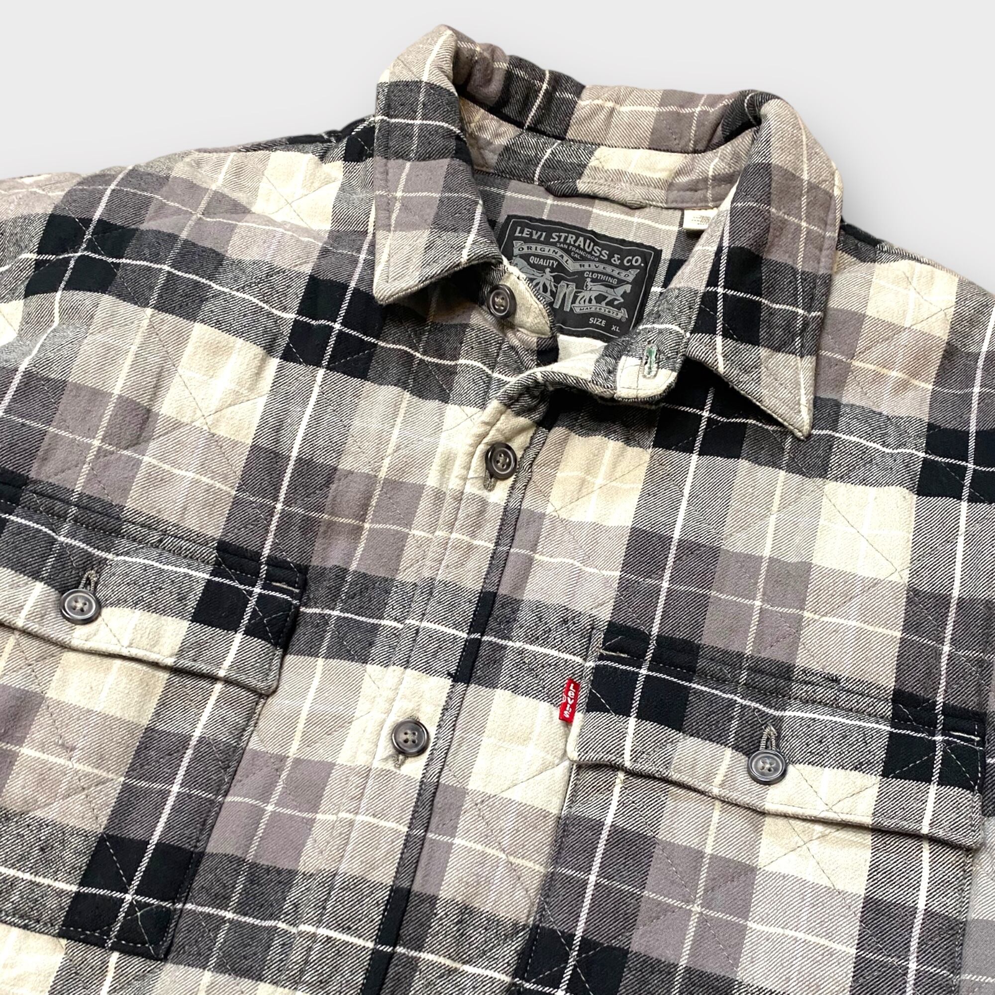 Levisのキルティングライナー付きネルシャツは、これからの季節にぴったりなアイテムです。ビッグサイズで、まるでコートのように着こなすことができ、カジュアルながらもリラックスした雰囲気を演出します。