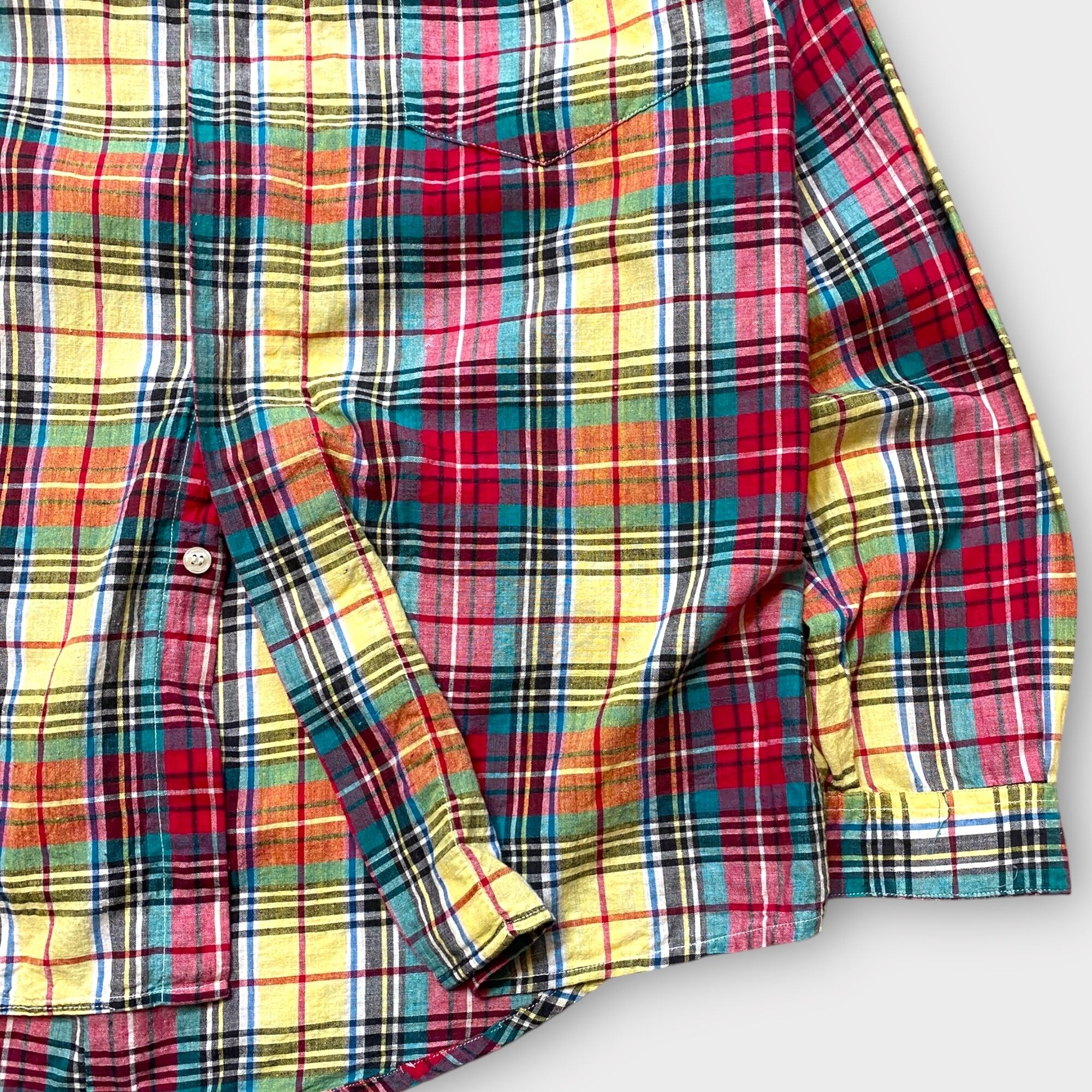 軽やかなコットン地に鮮やかなチェック柄が映える、90s-blue note India madras check shirtです。スタイリッシュな比翼前立てデザインが、カジュアルでありながらも洗練された印象を与えています。