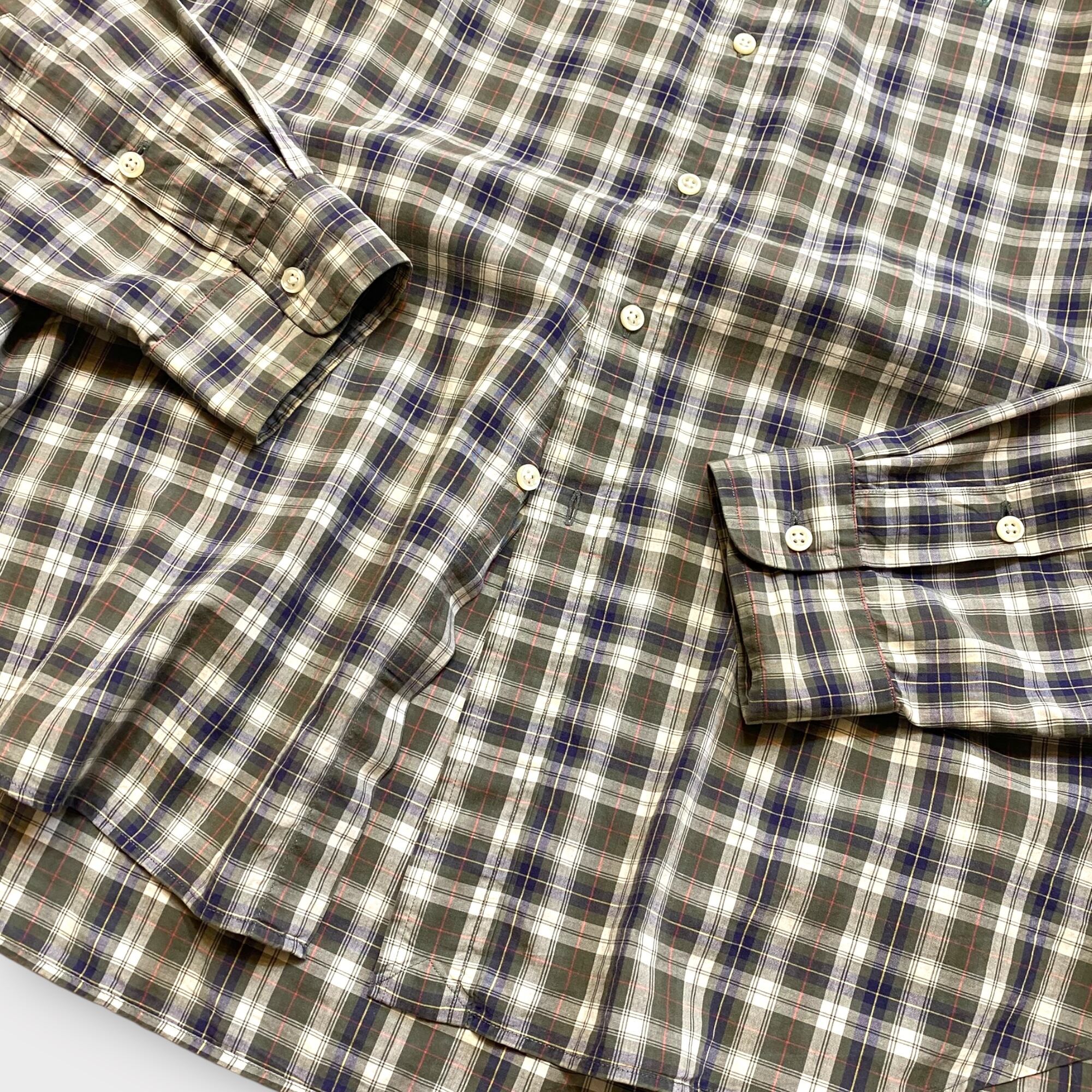 ダークオリーブカラーをベースにした落ち着いたチェック柄が魅力のこのシャツは、カジュアルながらも洗練された印象を与え、様々なスタイルに応じて活躍してくれます。