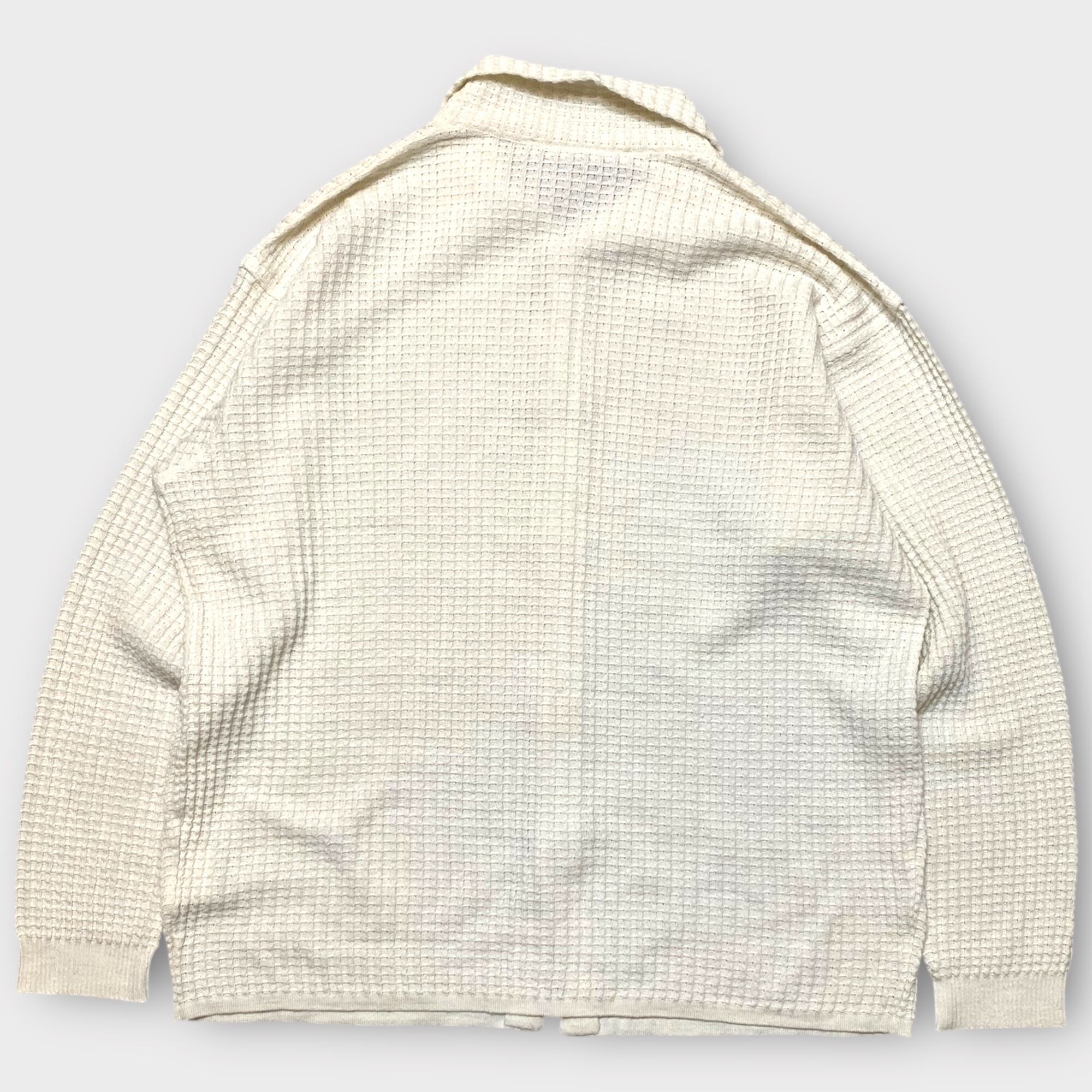 シンプルでありながら、スタイリッシュな印象を与える90s- Italy thermal shirt jacketです。このシャツジャケットは、コットンリネン素材のワッフル地を使用しており、肌触りが良く快適な着心地を実現しています。