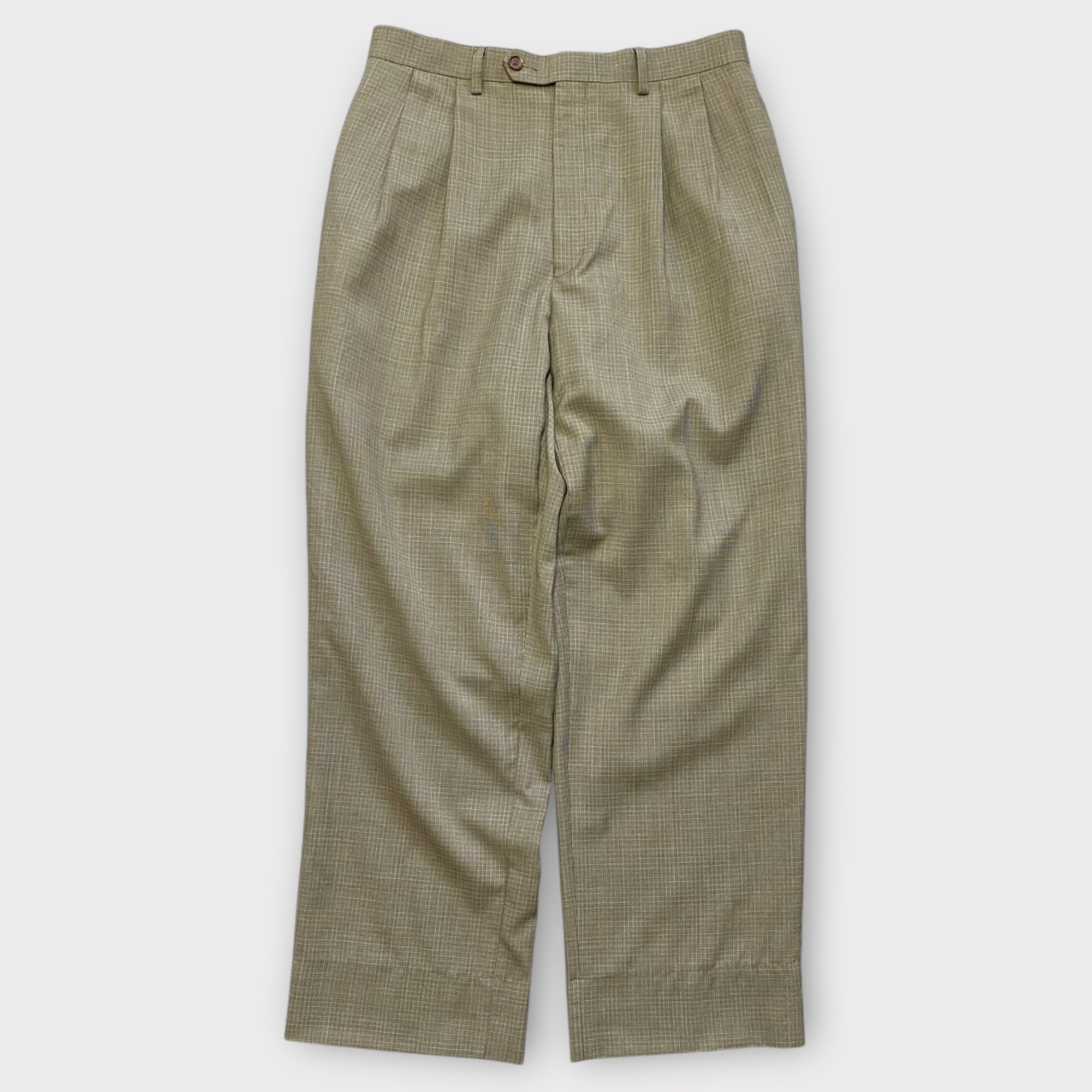 細かいチェックが上品な印象を与える、00s- lauren ralph 2tucks wide slacksです。34×32サイジングのワイドスラックスは、ライトなウール地を使用しており、夏でも快適に着こなせる一着となっています。