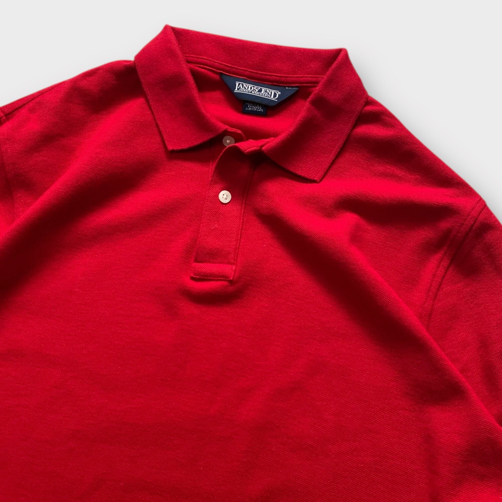 90s- LAND'S END long sleeve polo shirtは、鮮やかな赤色が印象的なロングポロシャツです。アメリカ製の高品質な素材を使用しており、カジュアルさとスタイルを兼ね備えた一枚です。