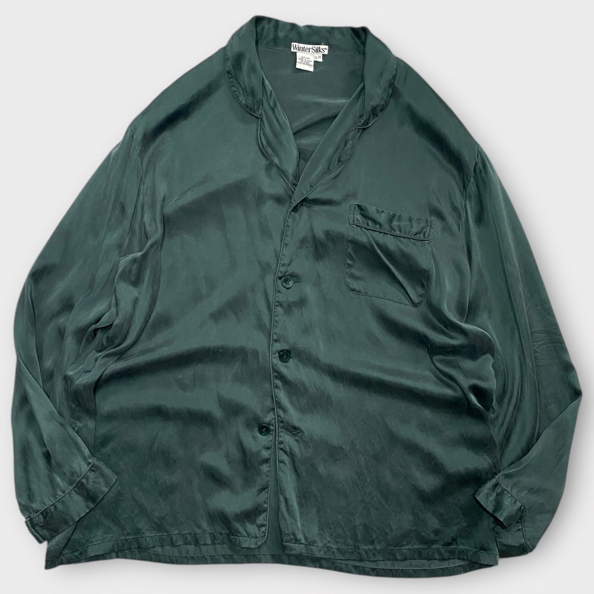 シルク特有の滑らかさが魅力のパジャマシャツです。優雅なドレープと美しい陰影が生み出すエレガントな雰囲気は、まさに特別なリラックスタイムを演出します。