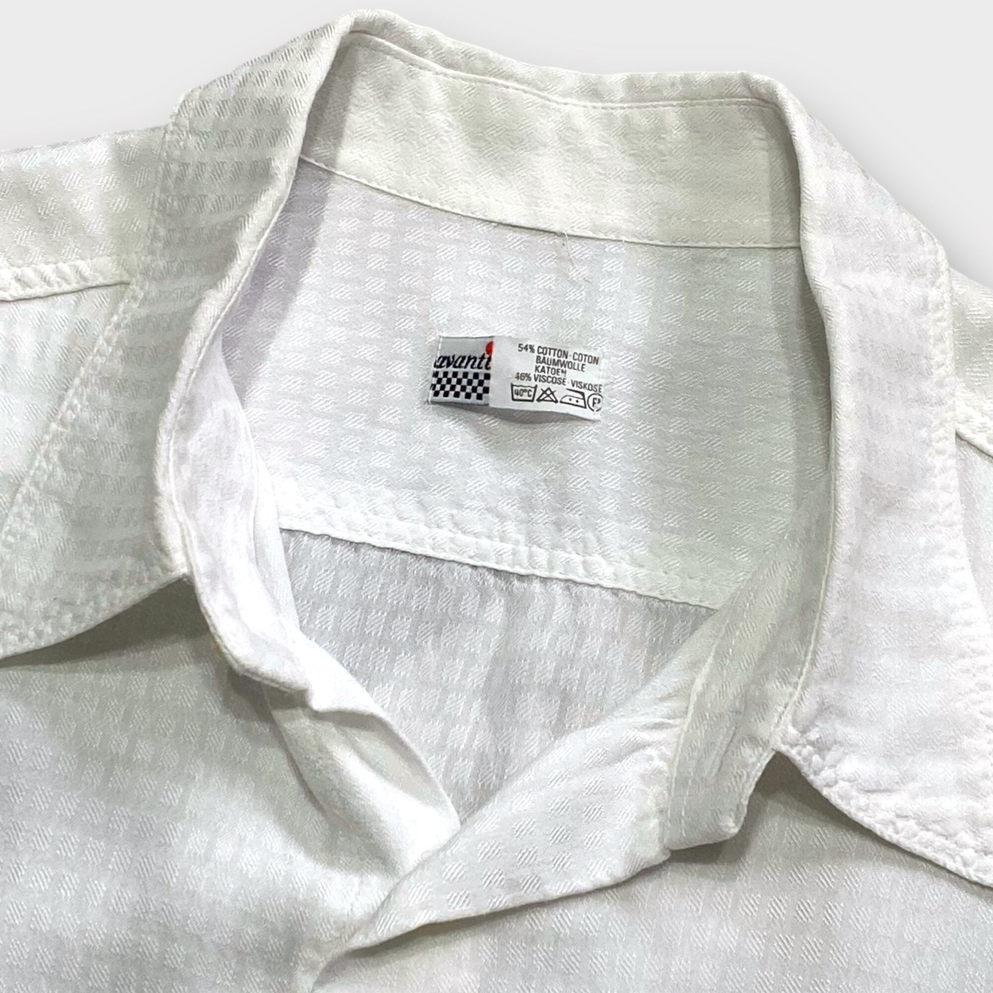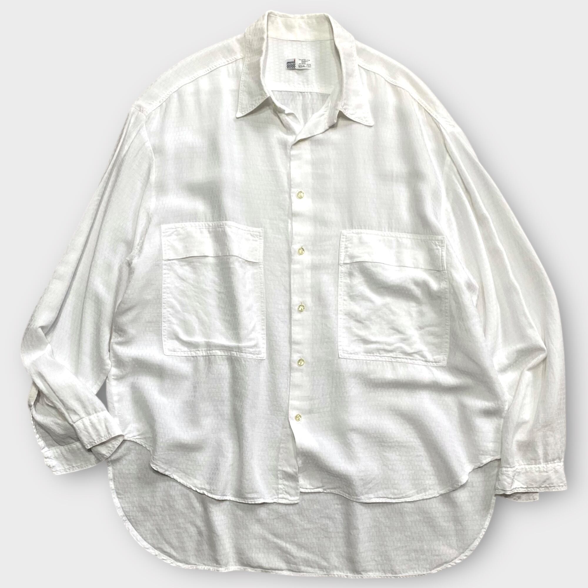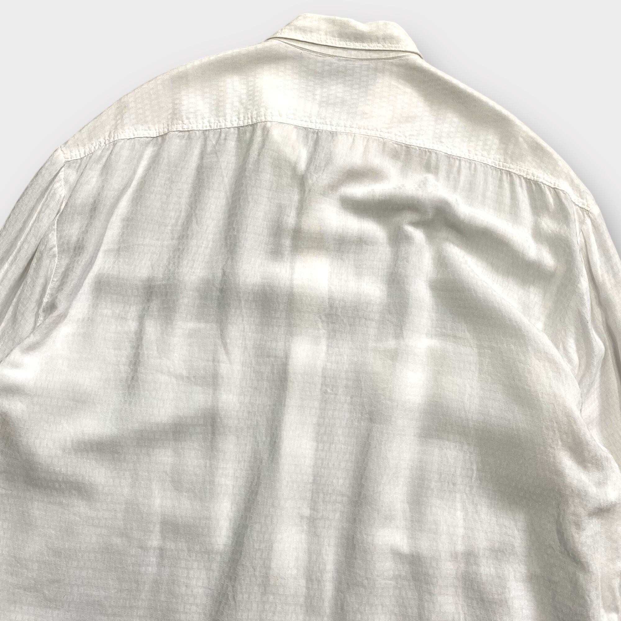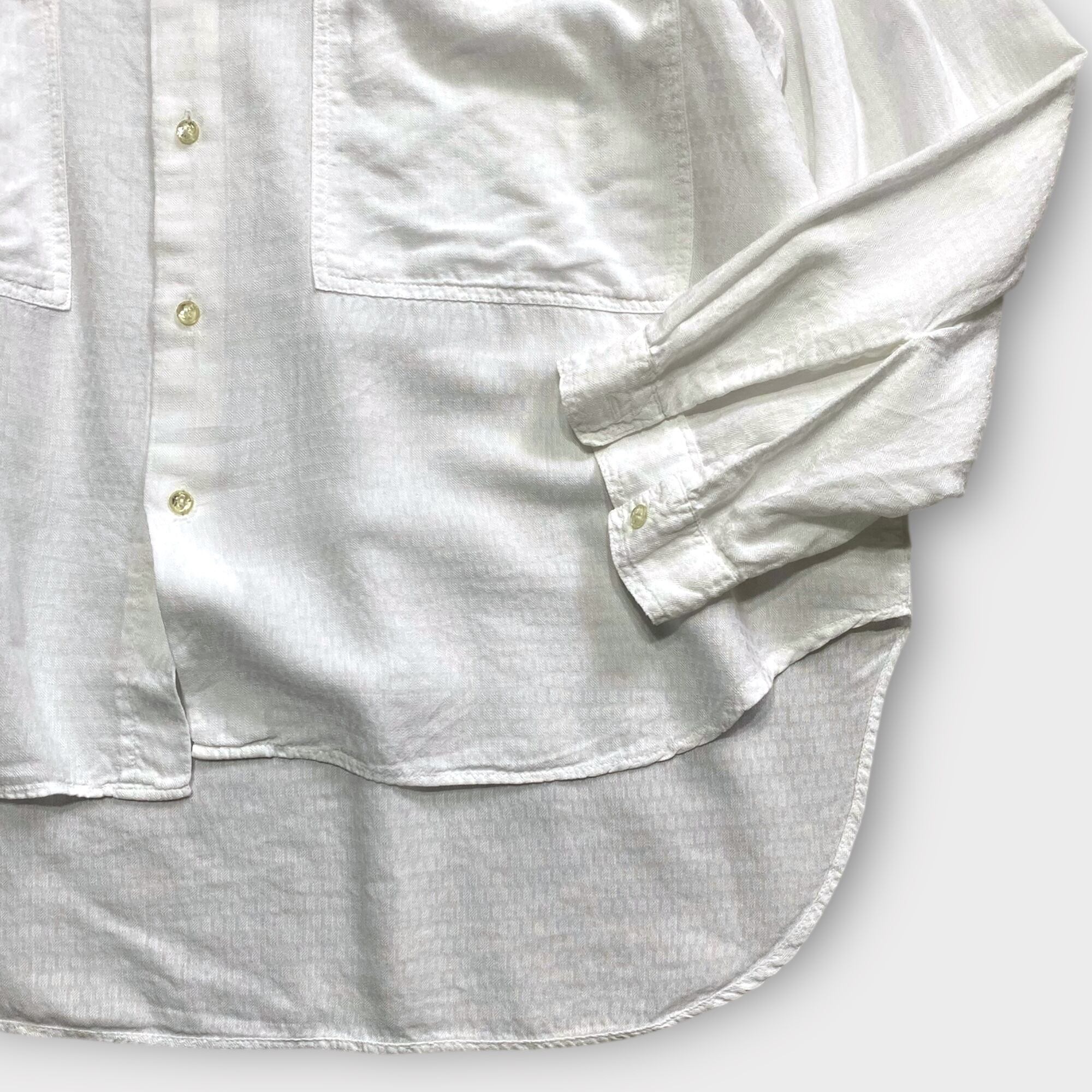 ヨーロッパのエッセンスを感じさせるホワイトの透け感あるシャツは、コットンとビスコース素材を使用した軽やかでテクニカルなアイテムです。細かい織柄が施されており、上品な印象を与えつつ、どんなコーディネートにもマッチします。