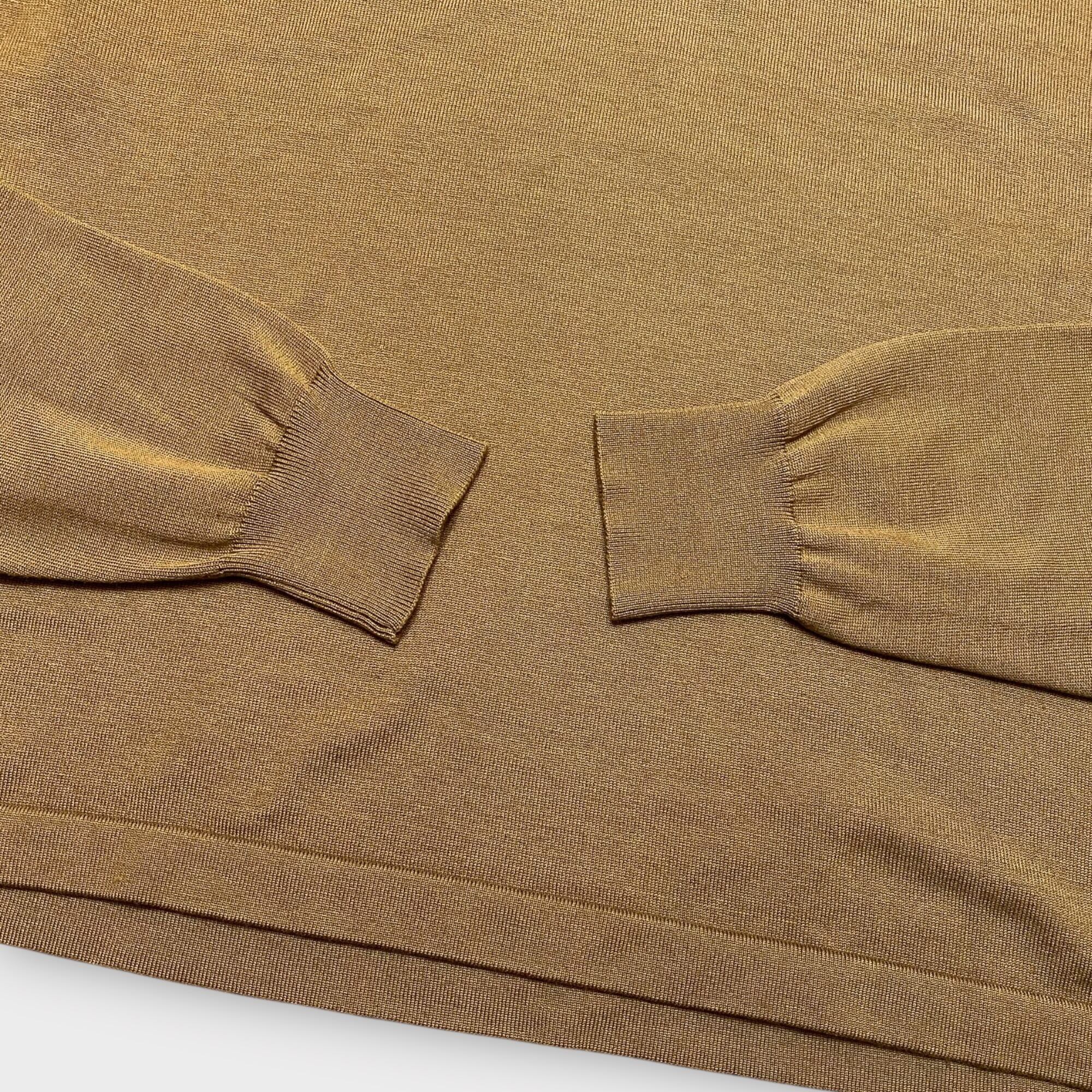 シルクをたっぷり使用した「90s- bachrach silk nylon knit polo」は、トロトロとした柔らかな質感が特徴のニットポロです。夏のスタイリングにぴったりな一着で、ショーツとの相性も抜群。セクシーな雰囲気を演出します。