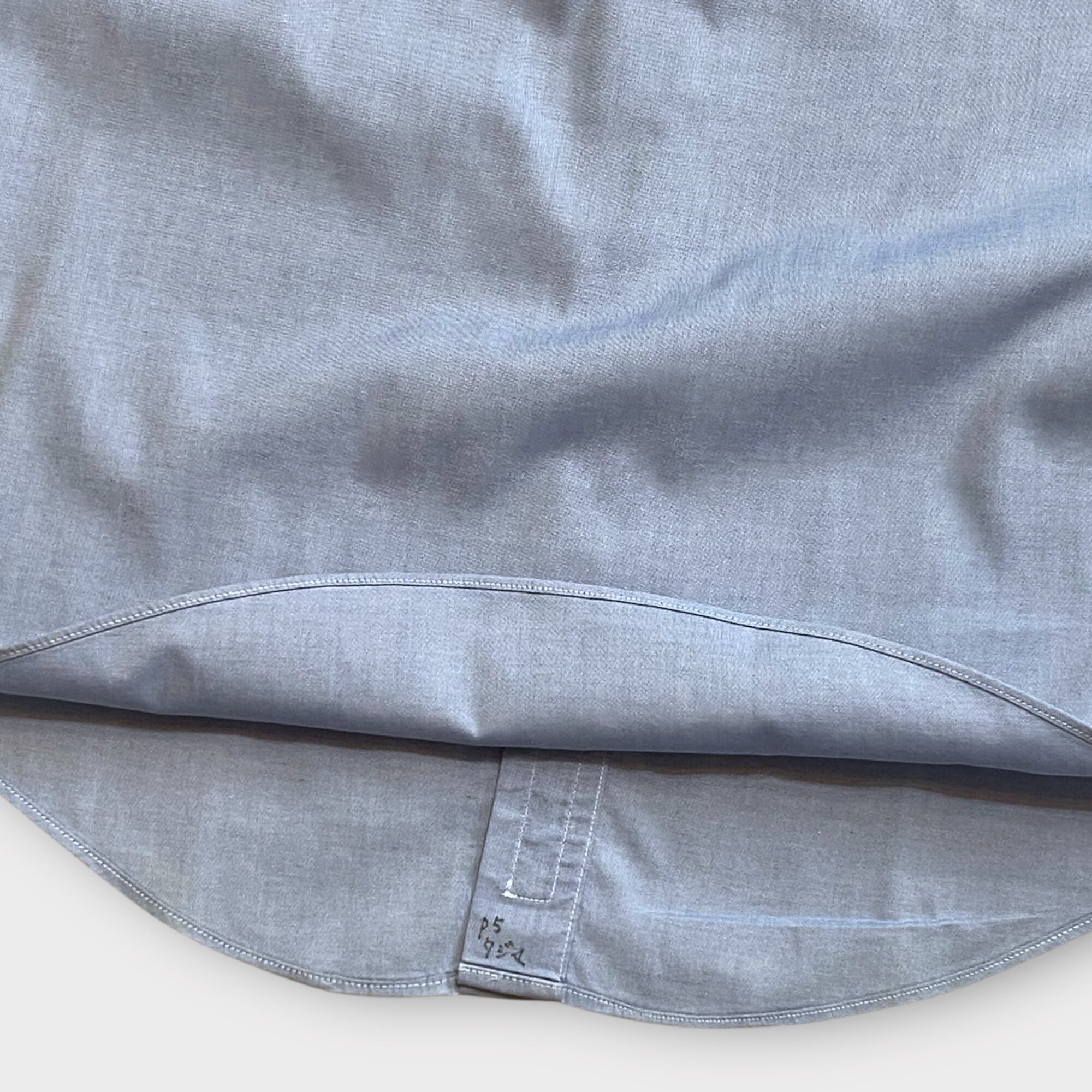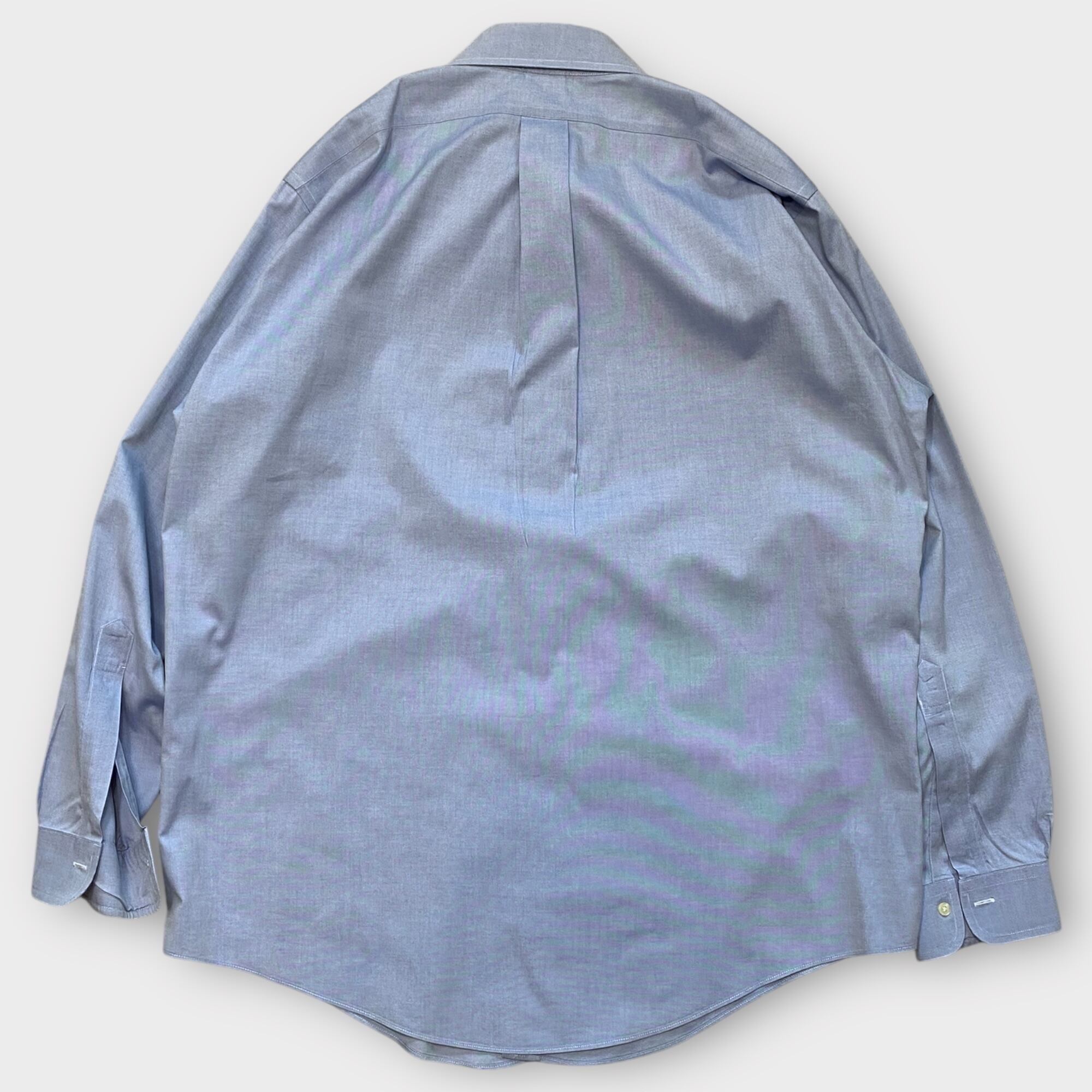 定番のオックスフォードシャツとしてはその特異なサイズ感が際立ちます。はちゃめちゃにでかい身幅が、リラックスした着心地を実現し、カジュアルシーンにおけるスタイルの幅を広げてくれる一着です。
