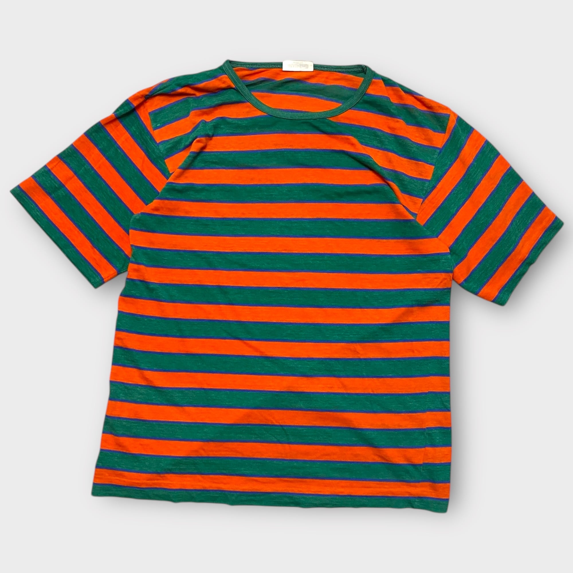 ヴィンテージ感あふれる80s- HANGTEN border T-shirtは、コットンポリ素材で抜群の着心地を誇るボーダーTシャツです。スカスカ感が心地よく、一枚着としてもインナーとしても活躍するアイテムです。