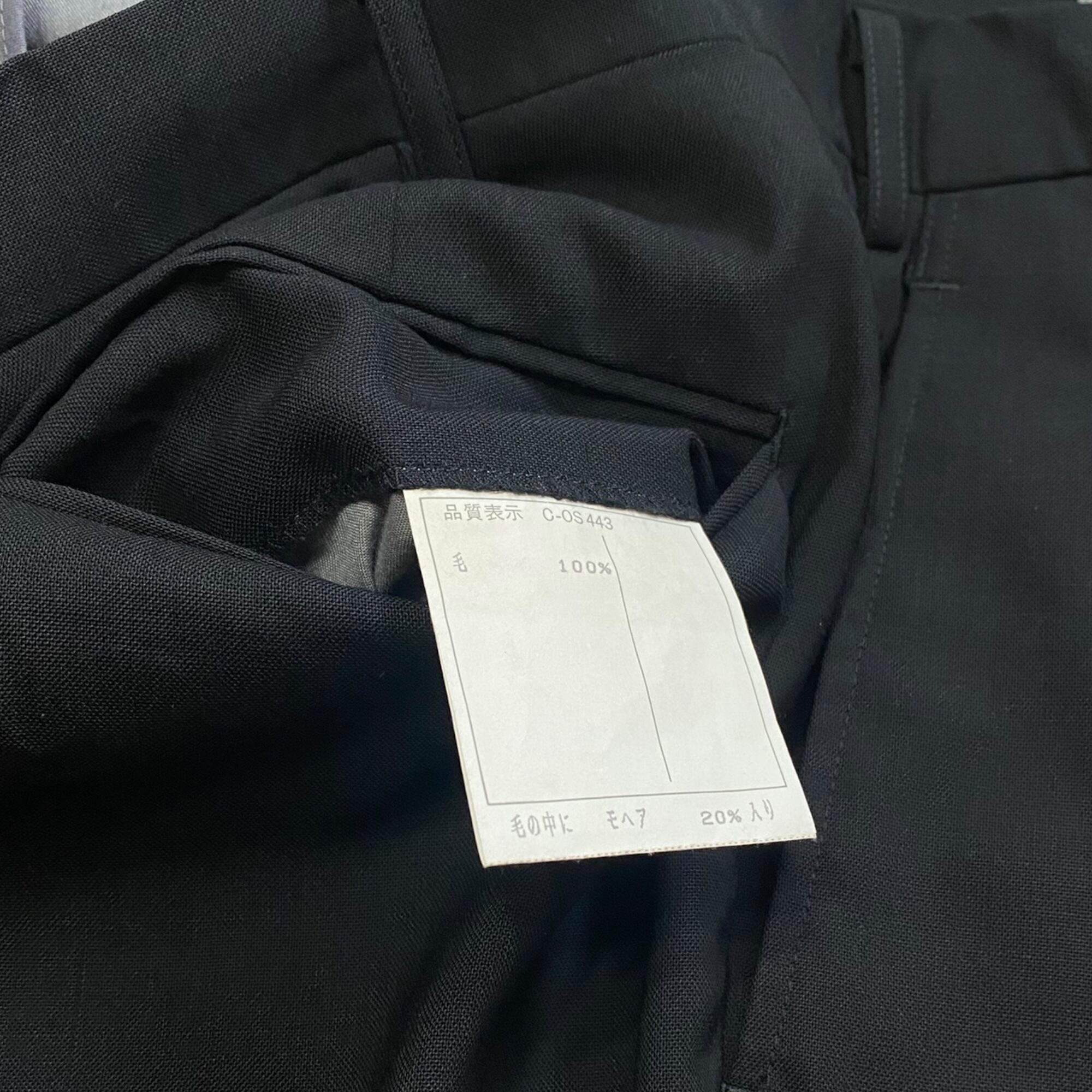 夏にぴったりなサマーウールモヘアを使用した90s- pierre cardin summer wool mohair slacksは、軽やかで透け感のあるブラックスラックスです。ワイドなシルエットが特徴的で、快適な着心地を追求しています。