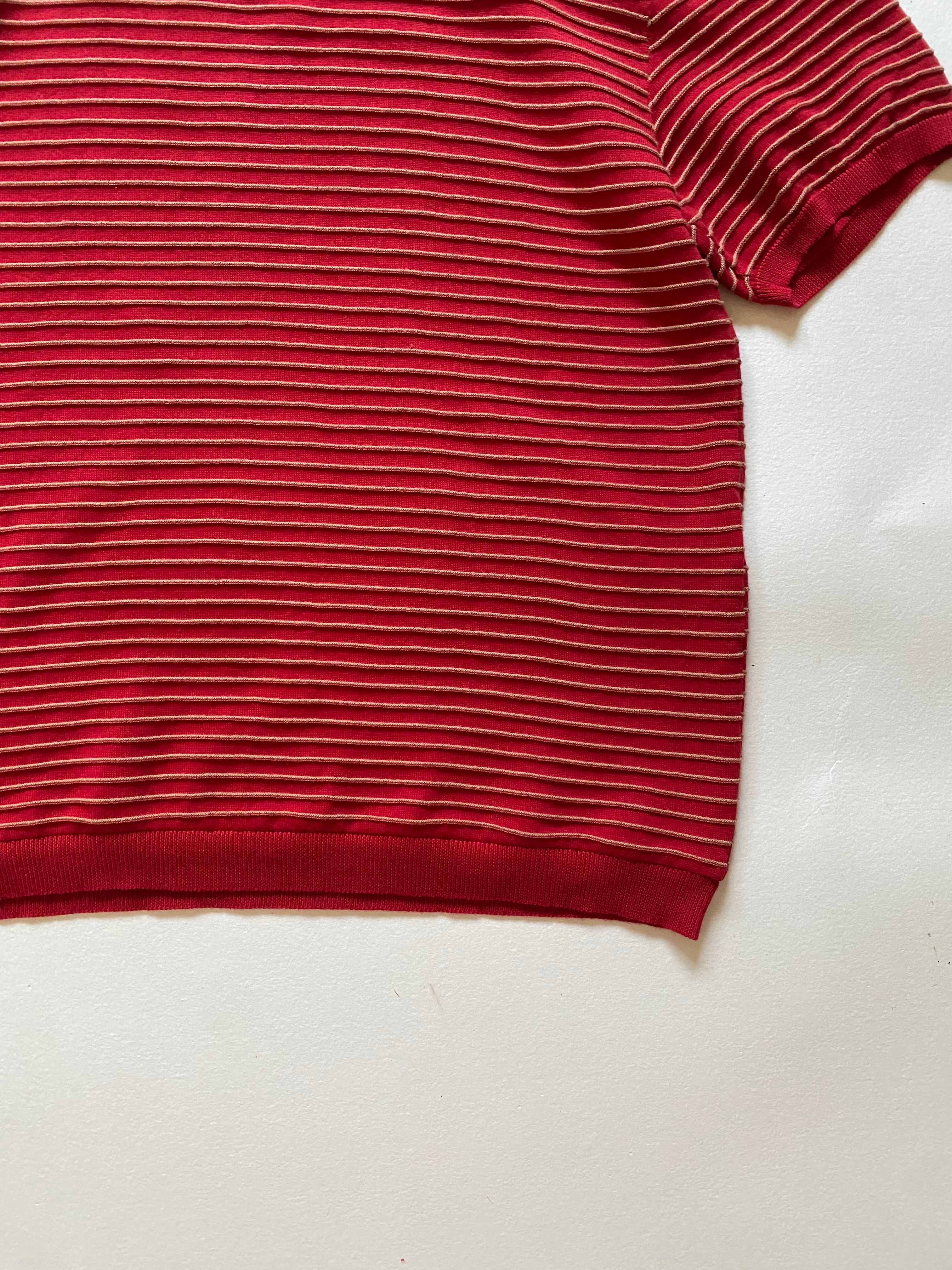 夏にぴったりな90s- border cotton knit italyは、独自の編み地で表現された畝が印象的なニットTシャツです。イタリア製の高品質なコットン素材を使用しており、涼しさとお洒落なデザインが見事に融合しています。