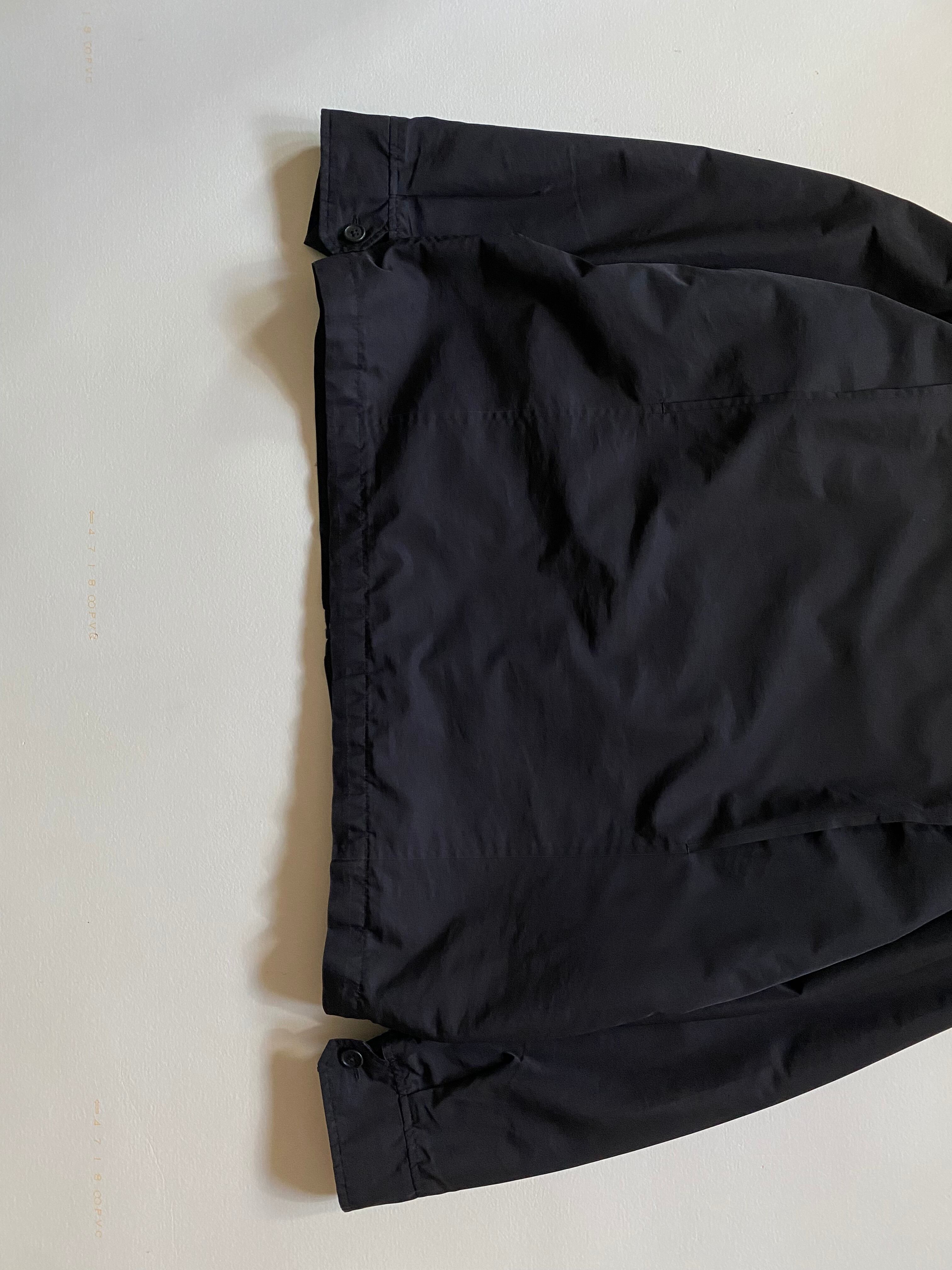 軽やかなポリエステル素材を使用した00s- paul smith jeans polyester jacketは、ドッグイヤー系の丈長いデザインが魅力の一着です。シンプルでスタイリッシュなブラックカラーは、様々なスタイルにマッチし、一度着るとついつい手に取ってしまいたくなるアイテムとなっています。