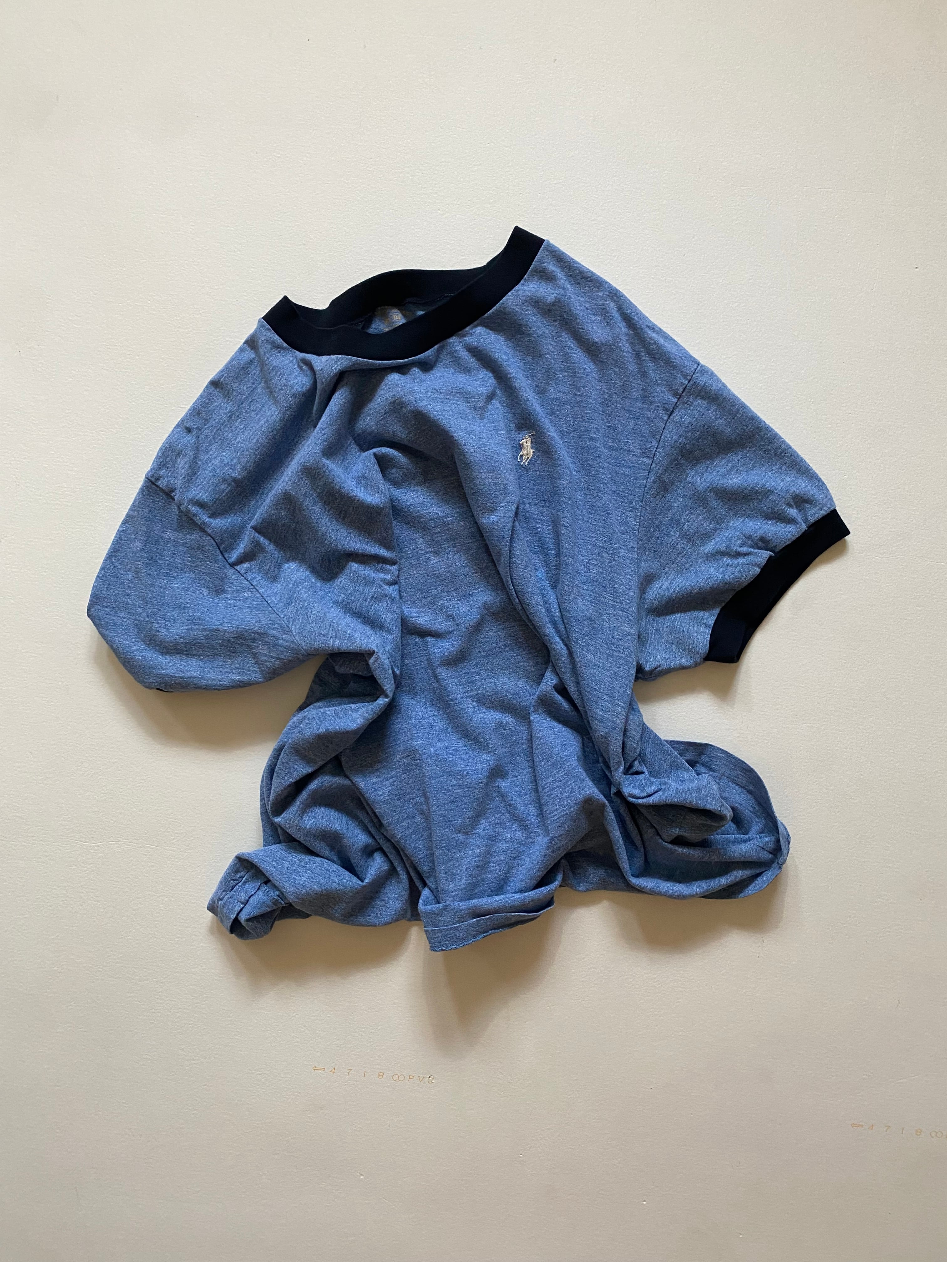 洗練されたブラック×ブルーのカラーリングが魅力の00s- polo ralph linger Tシャツ。スラブ感のあるブルーの色合いと、白いポニーがアクセントとなり、洗練された印象を与えます。このTシャツは、シンプルながらもおしゃれを楽しむことができ、幅広いコーディネートに対応できます。
