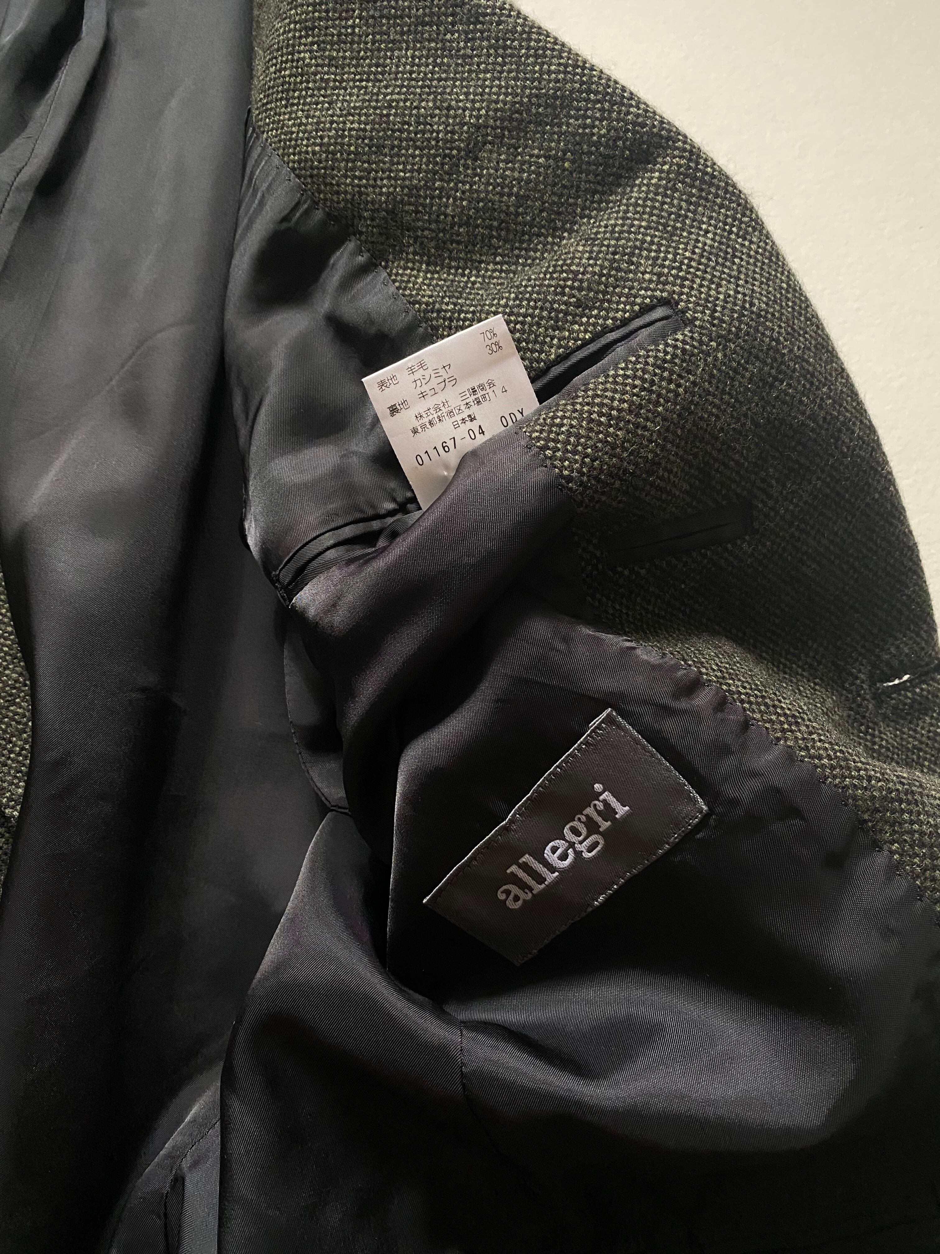 柔らかいウールカシミヤの素材が魅力的なジャケット。深みのあるダークグリーンのカラーが、シックな印象を与えながらも、カジュアルなスタイルにもしっかりとマッチします。