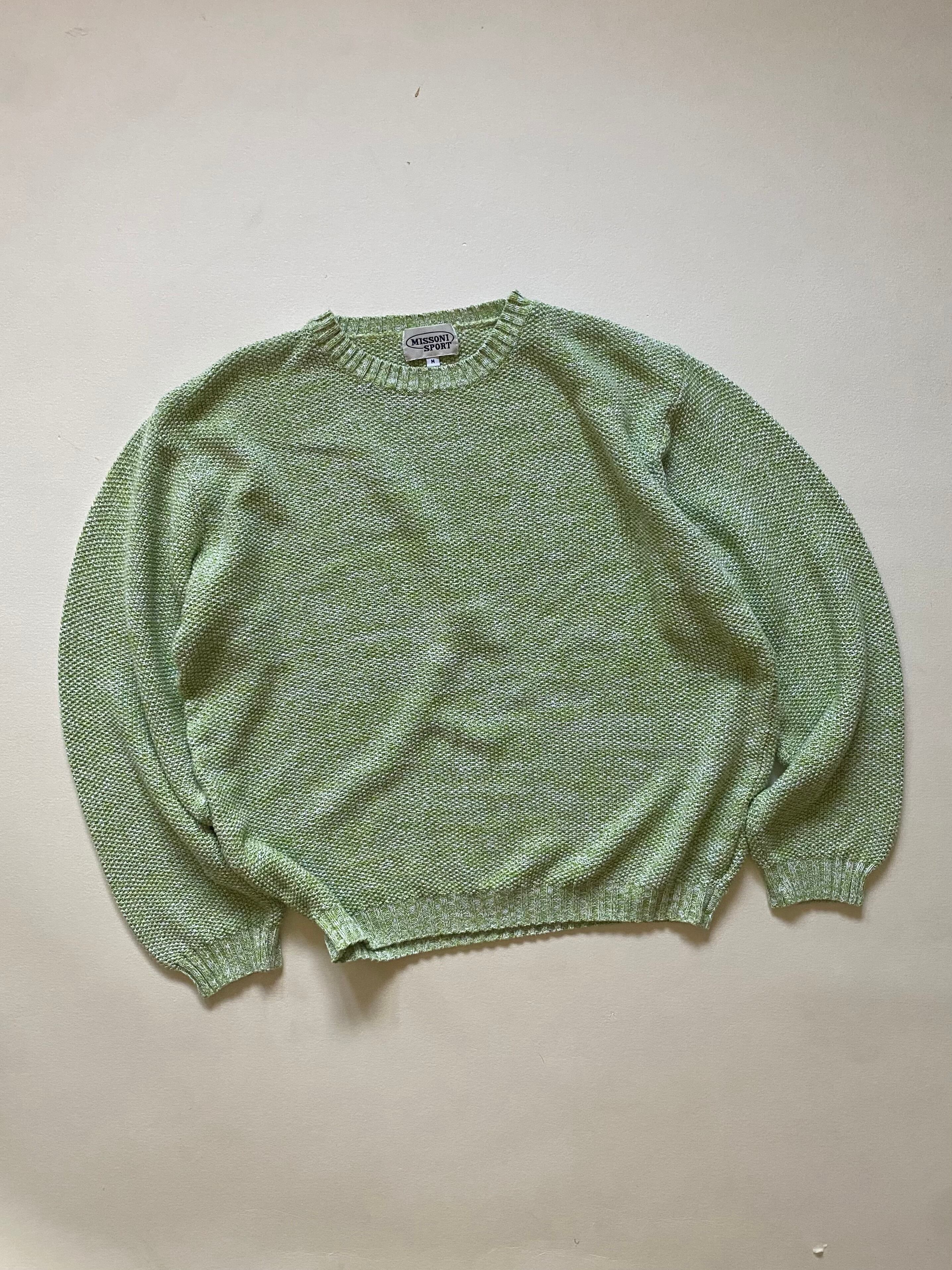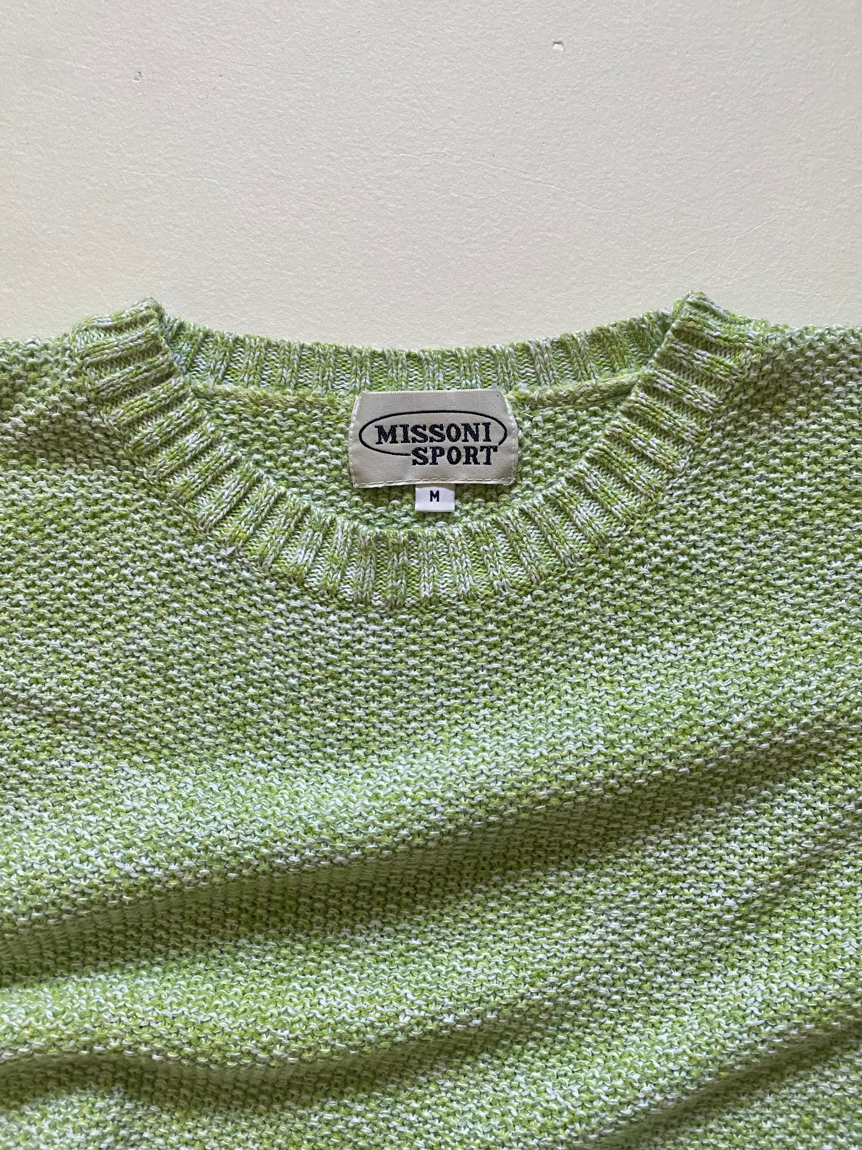 ミッソーニのコットンニット。ボックスなシルエットと、絶妙なミックスグリーンカラーが魅力的な一着で、この季節にぴったりです。このコットンニットは、ブランドならではの高い品質を誇り、着心地の良さとスタイリッシュなデザインが融合しています。