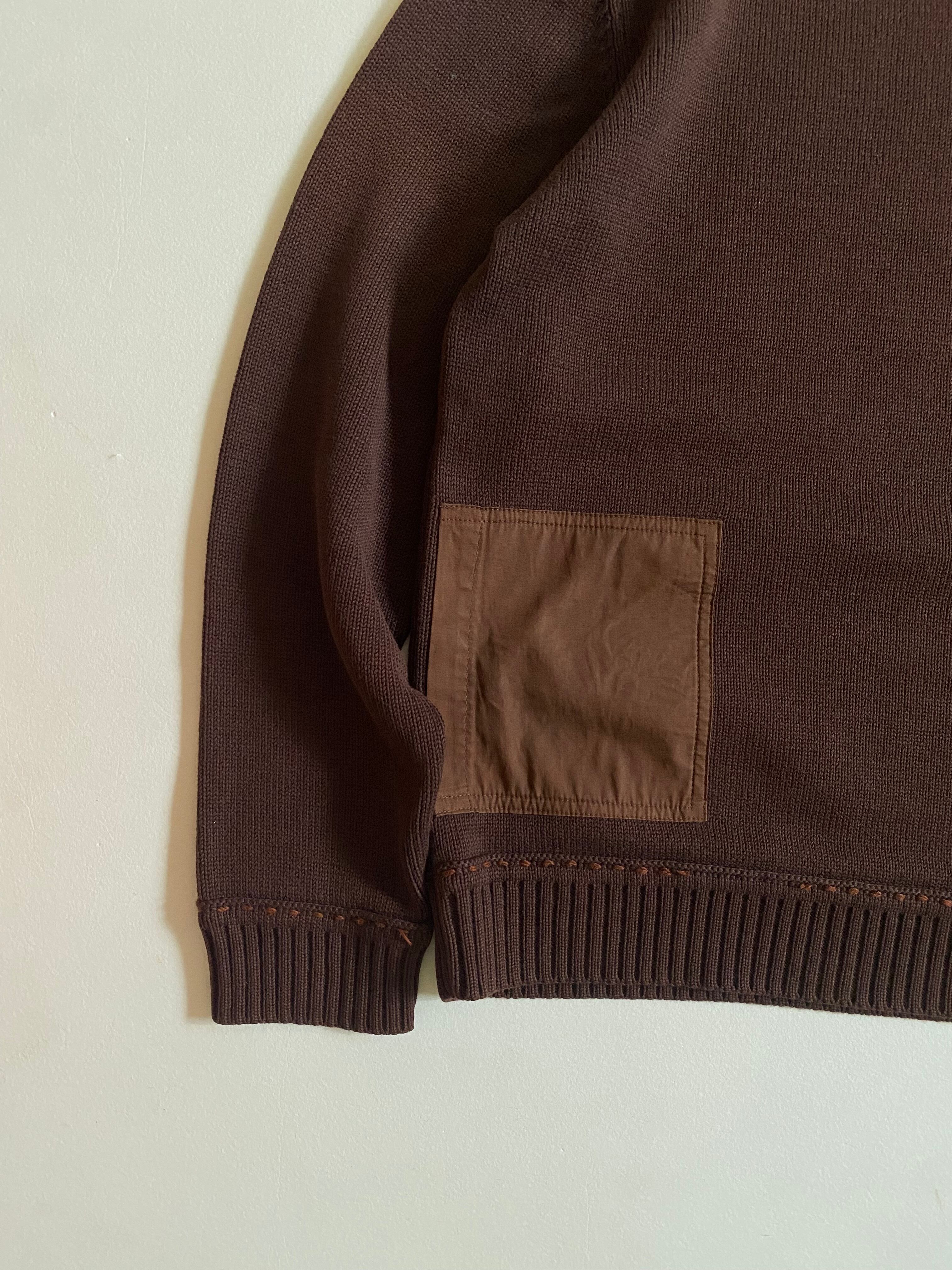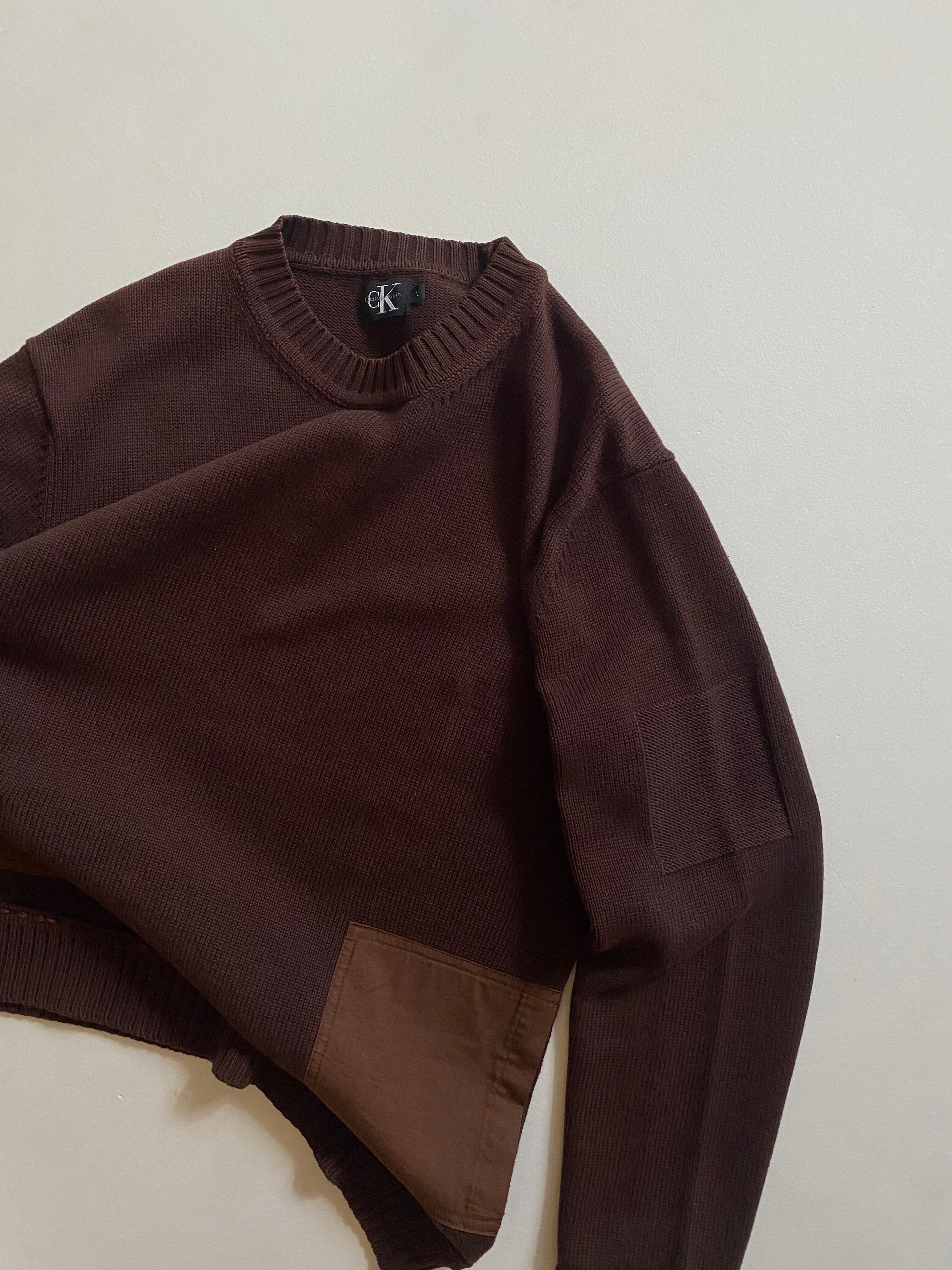 90年代のカルバン・クラインによるポケットコットンセーターです。このセーターは、魅力的なブラウンカラーに際立ったステッチが施されており、シンプルながら洗練された印象を与えます。しっかりとしたコットン素材が心地よい着心地を提供し、機能性にも優れたポケットがアクセントとなっています。