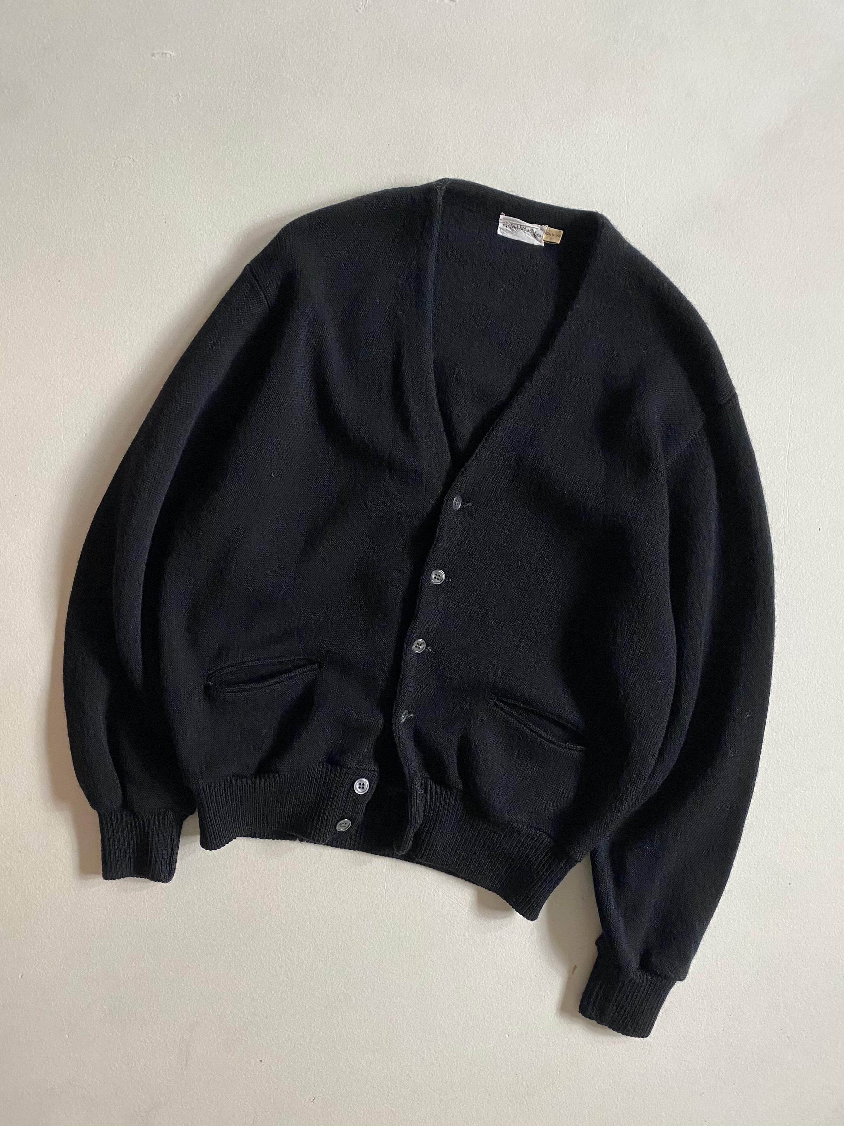 70s- black virgin wool cardigan