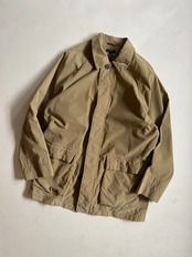 J.Crewウールライニングコットンダックコートです。このコートは、ベージュのコットンポリダック地を使用しており、シンプルながらも気の利いたデザインが魅力的な一着です。大きめなサイジングとマチ付きのポケットは、機能性を重視しつつもスタイリッシュな印象を与えます。