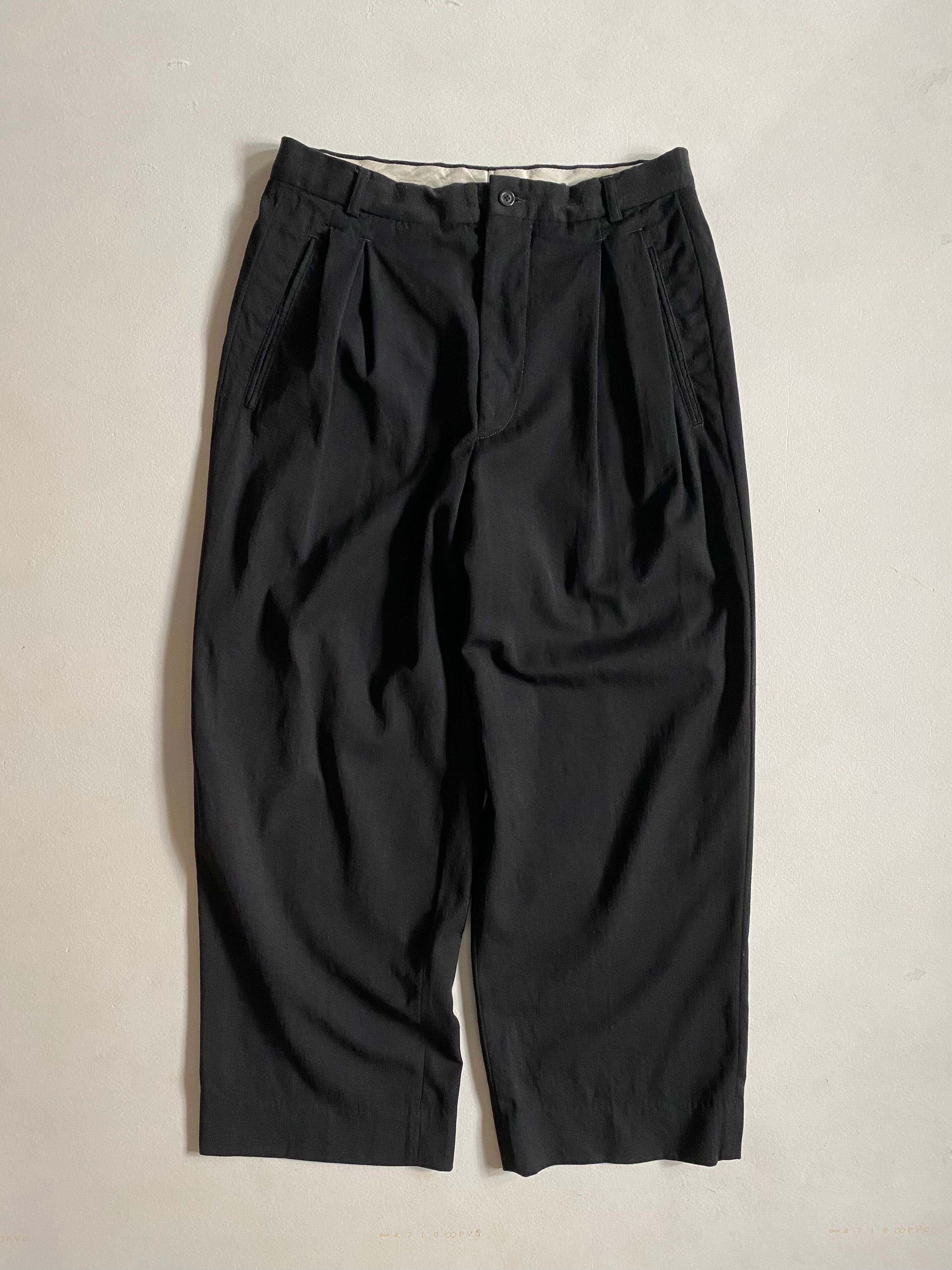 HILTON TIMEは、ジョルジオアルマーニがデザインしていたことで知られる逸品で、クラシックさとスタイリッシュさを兼ね備えた一着です。イタリア製のウール素材を使用しており、太めのシルエットが特徴で、リラックスした着心地を提供します。