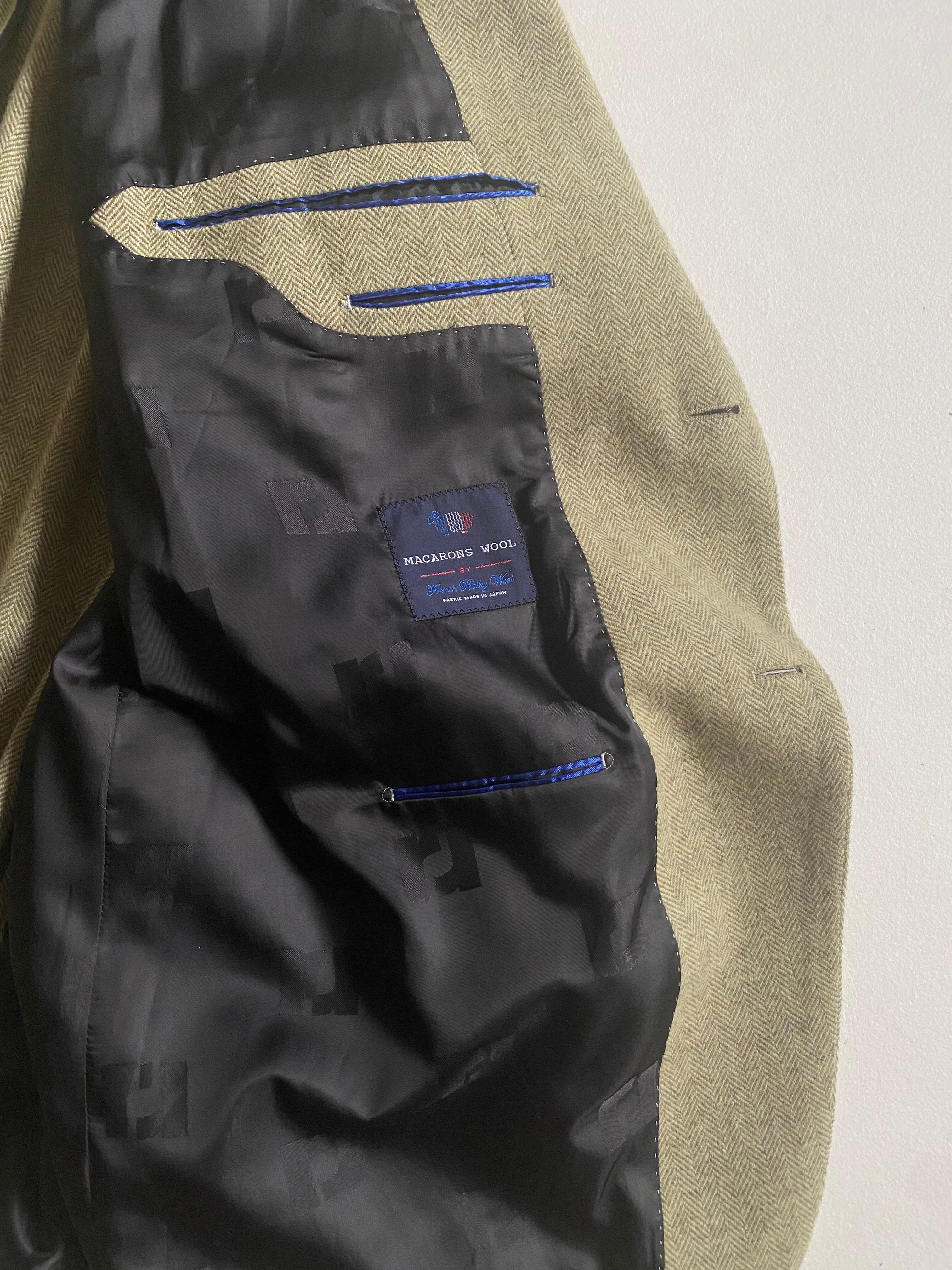 renomaのヘリンボーンウールBIGジャケットです。このジャケットは、一見するとベーシックでクラシックな印象を持つウール素材を使用しており、ヘリンボーン柄が雰囲気を引き立てる一着です。迫力ある大きなサイズ感で、まるでコートのような着心地を実現しています。