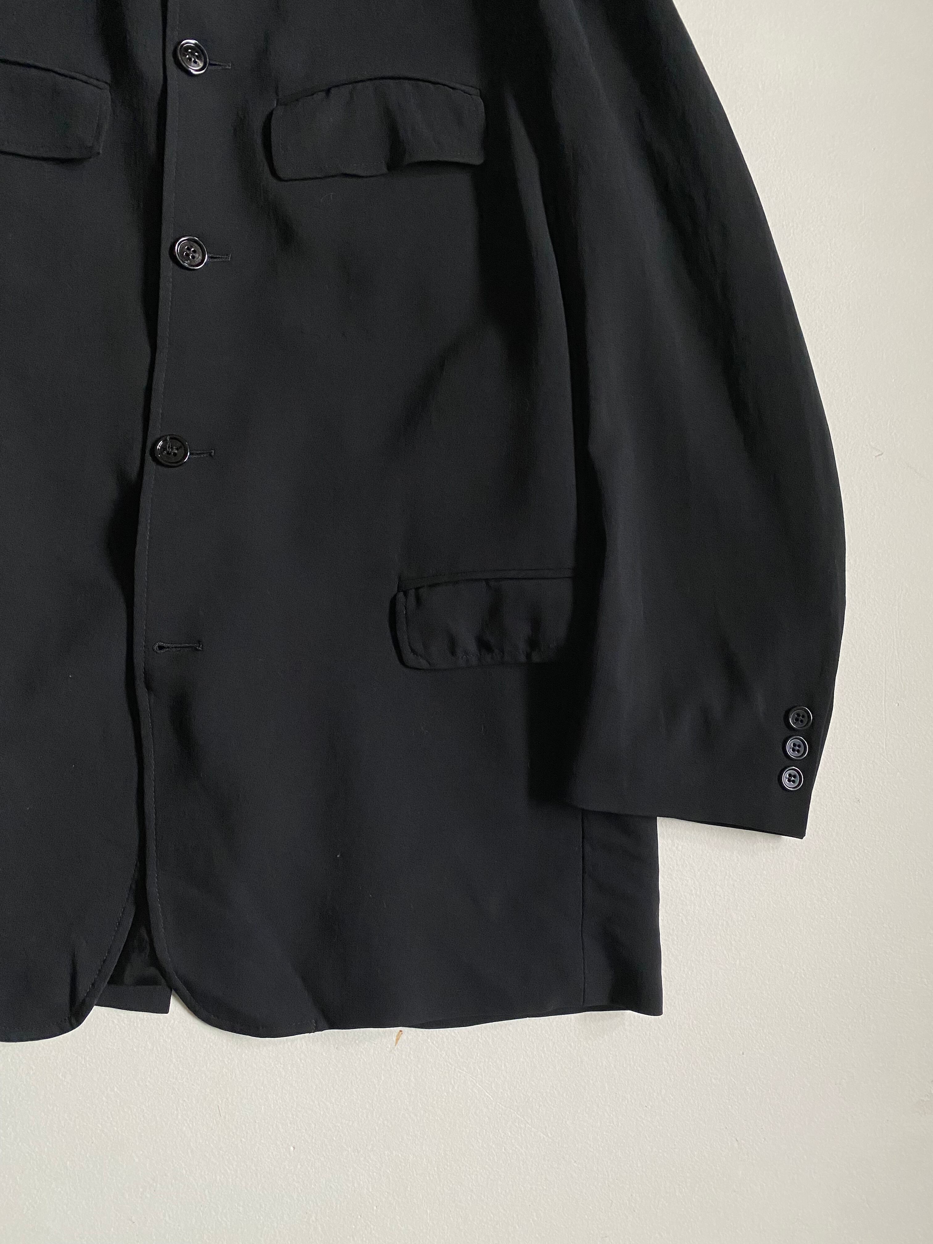 イタリアの香り漂う、ダナキャランの4ポケットジャケットです。このジャケットは、テーラードジャケットとサファリジャケットの絶妙な融合が魅力で、洗練されたデザインが印象的です。