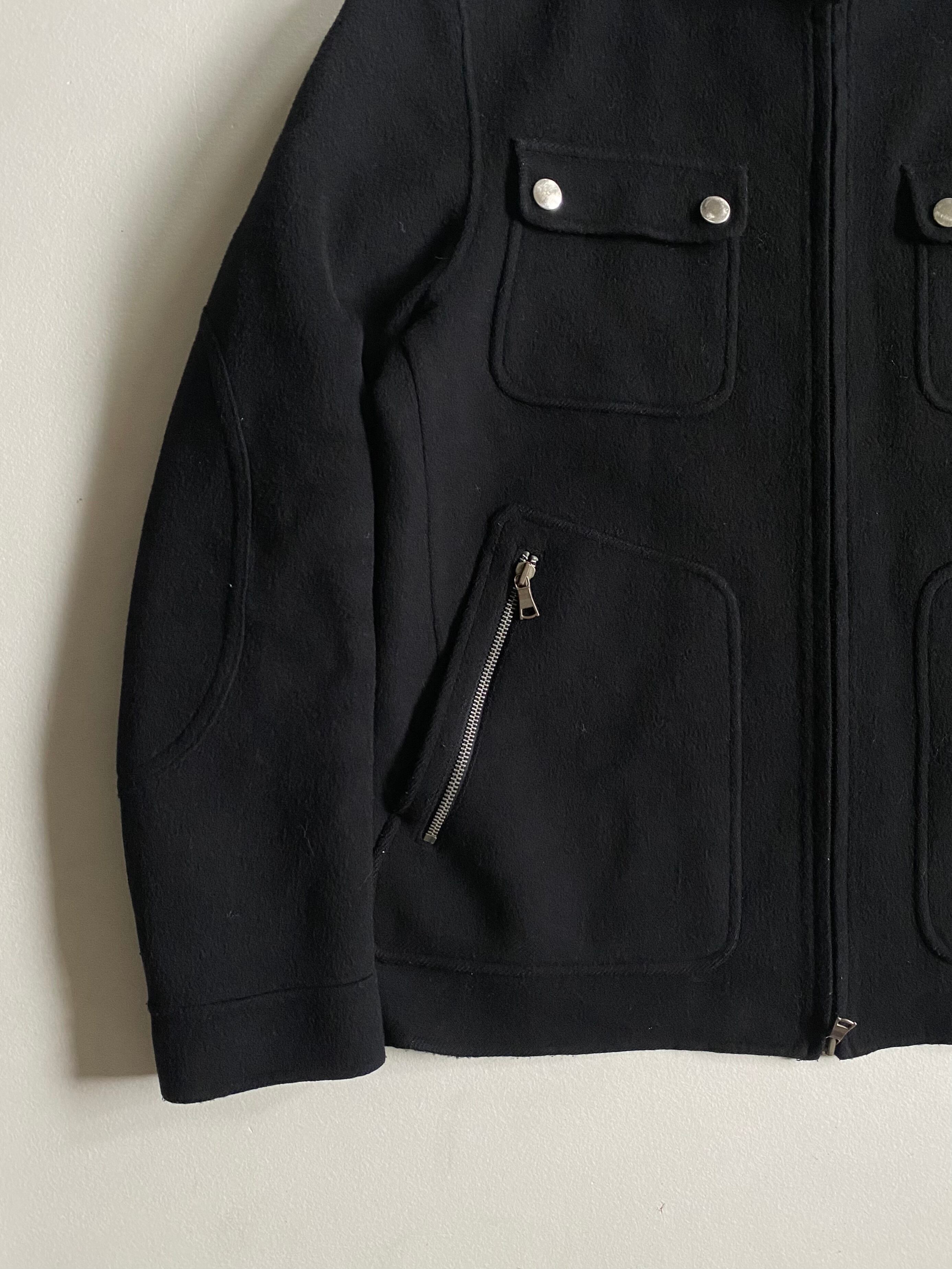 00s- DKNYのウールライダースジャケットです。このジャケットは、洗練されたデザインと温かみのあるウール素材が魅力となっています。ボタンやジップのシルバーアクセントが、スタイリッシュでモダンな印象を与えます。