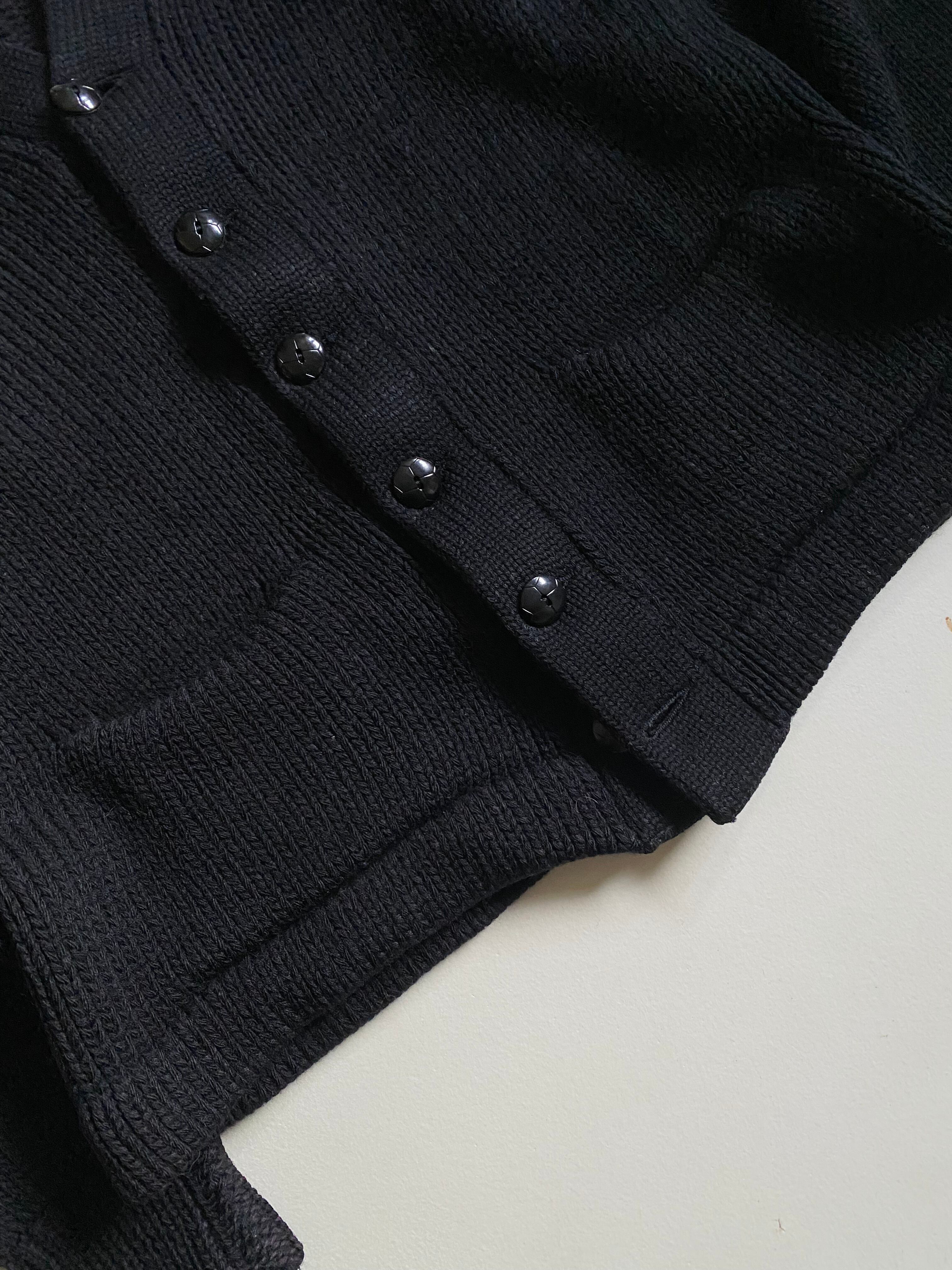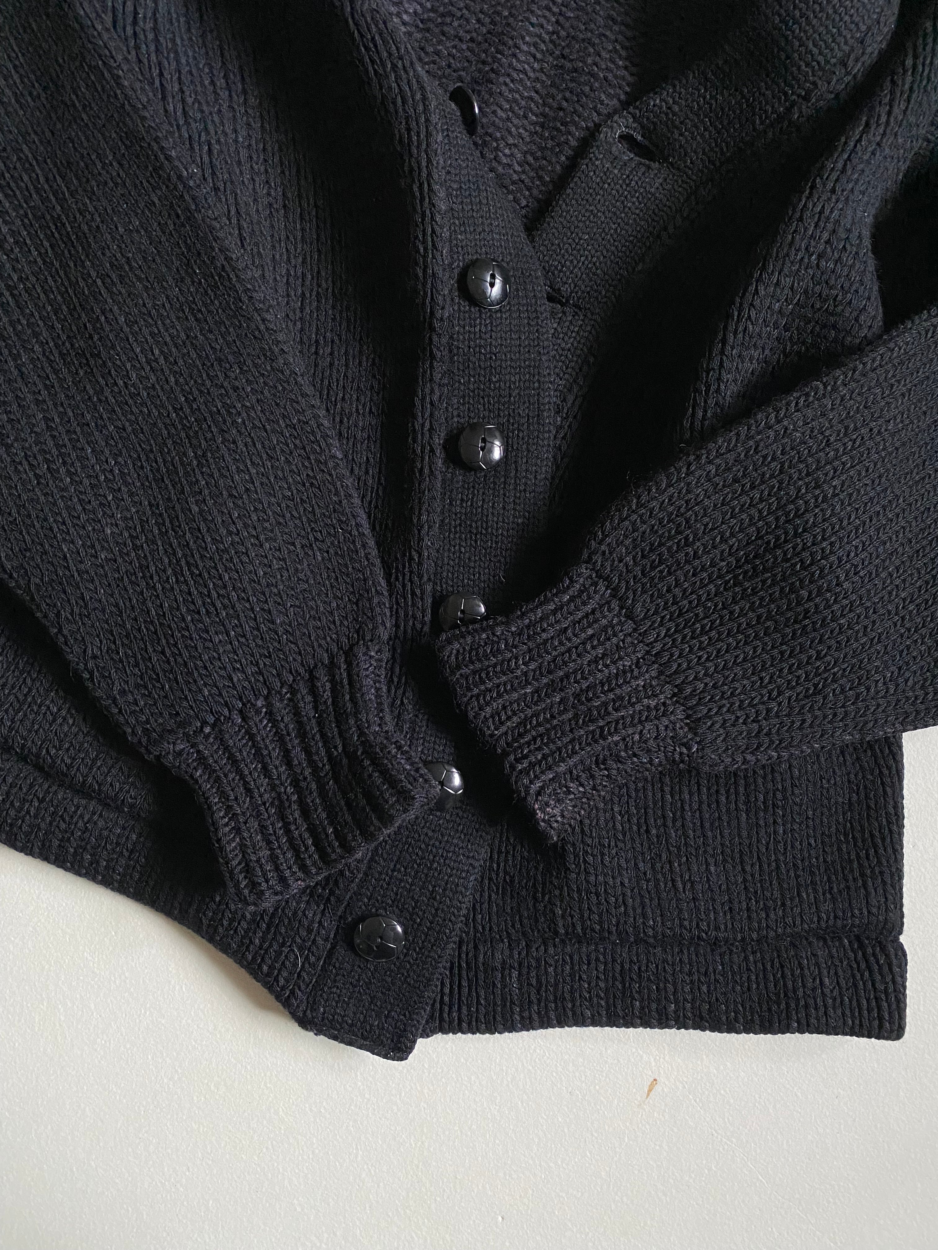 50s- ブラックレタードカーディガンです。このカーディガンは、シンプルでありながら洗練されたデザインが魅力で、無地のスタイルが際立つアイテムです。