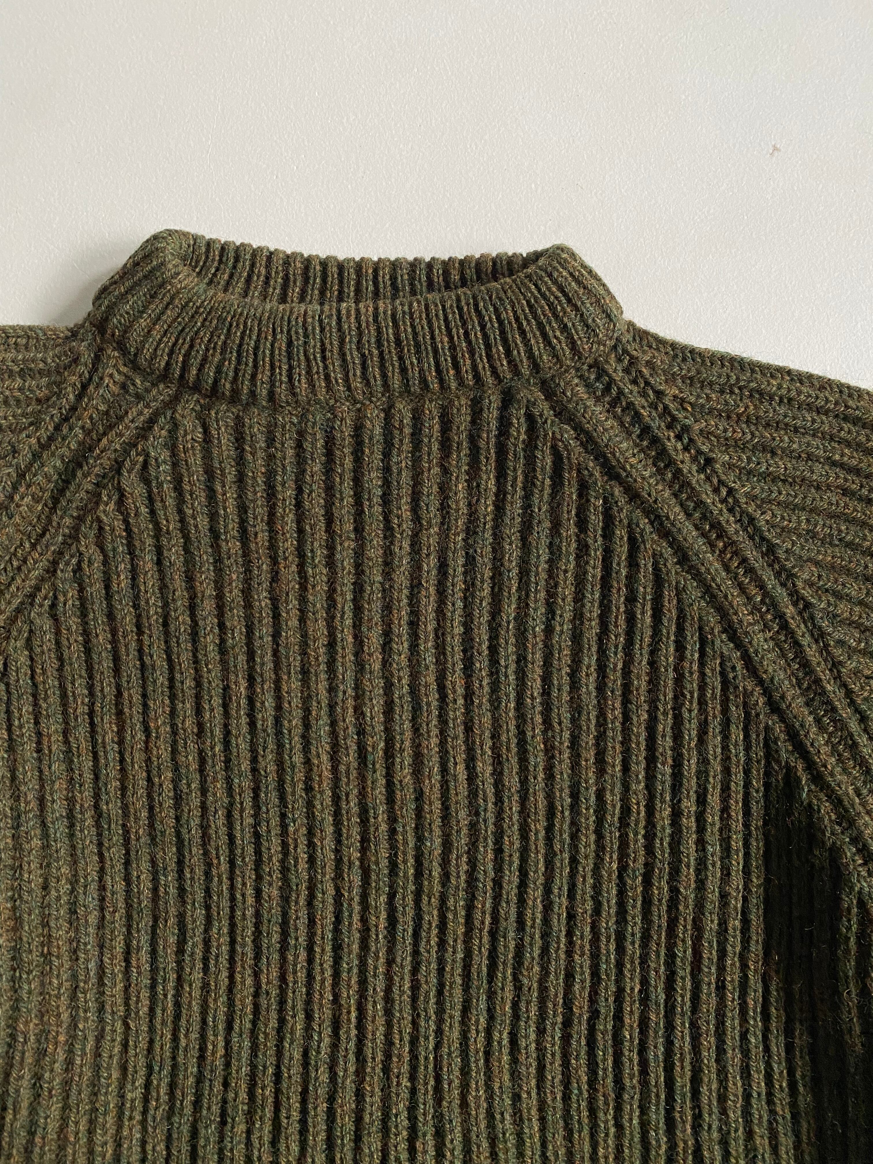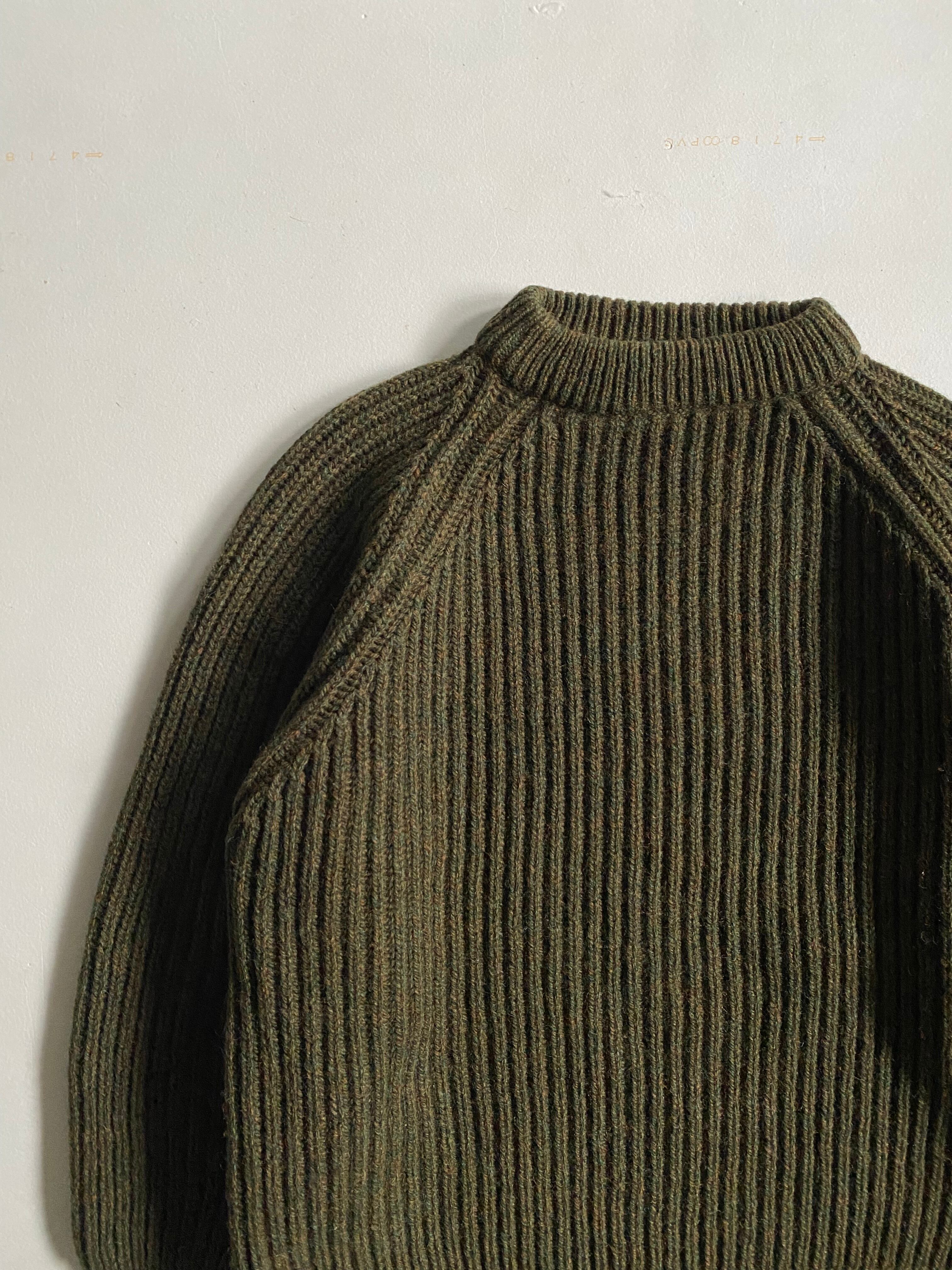 80s- the British wool collection sweaterです。このウールセーターは、グリーンとブラウンの絶妙なメランジ感が特徴で、モッチモチの生地は着心地抜群のアイテムです。がっしりとした素材感があり、秋冬のコーディネートにぜひ取り入れたい一着となっています。
