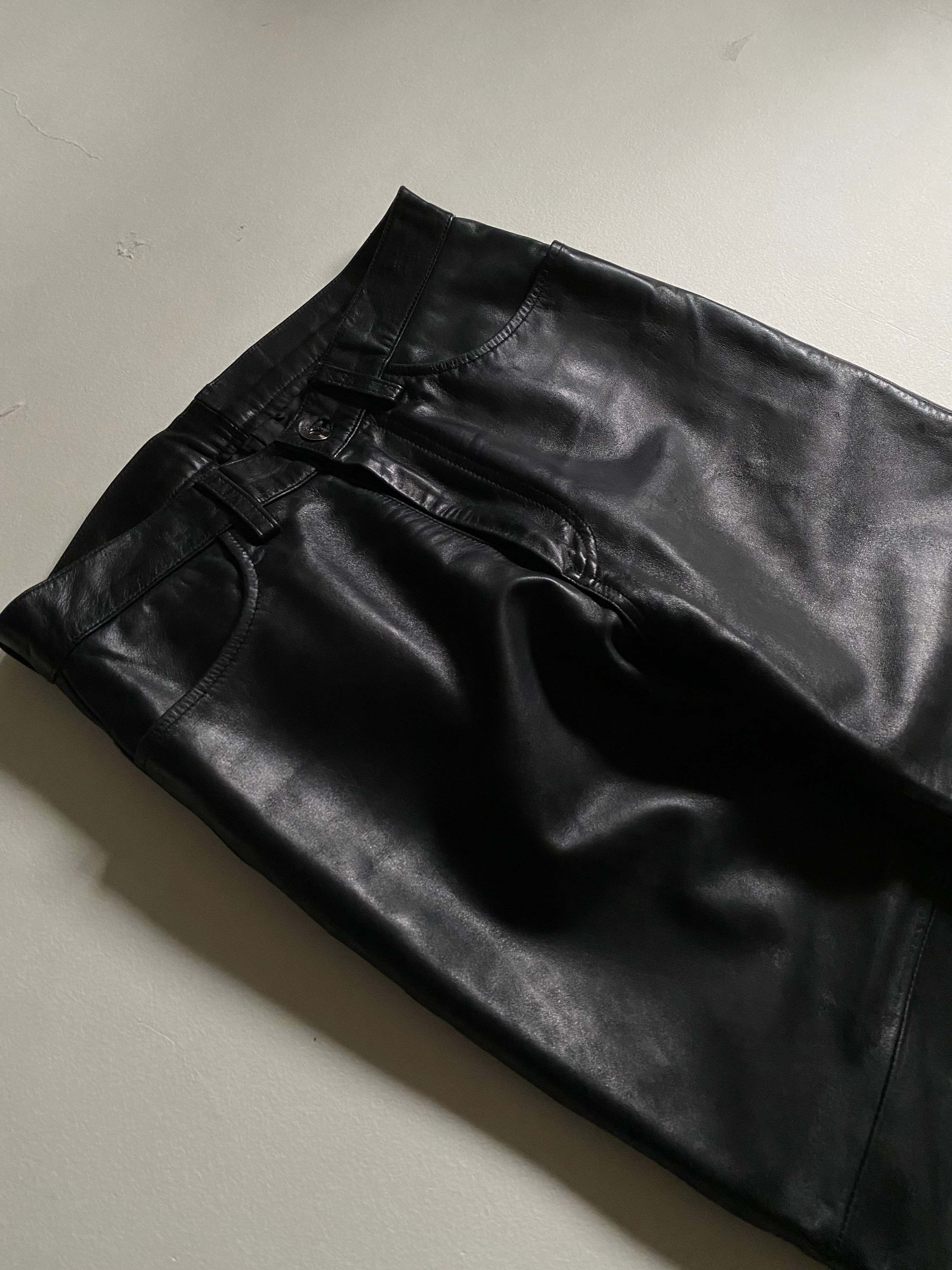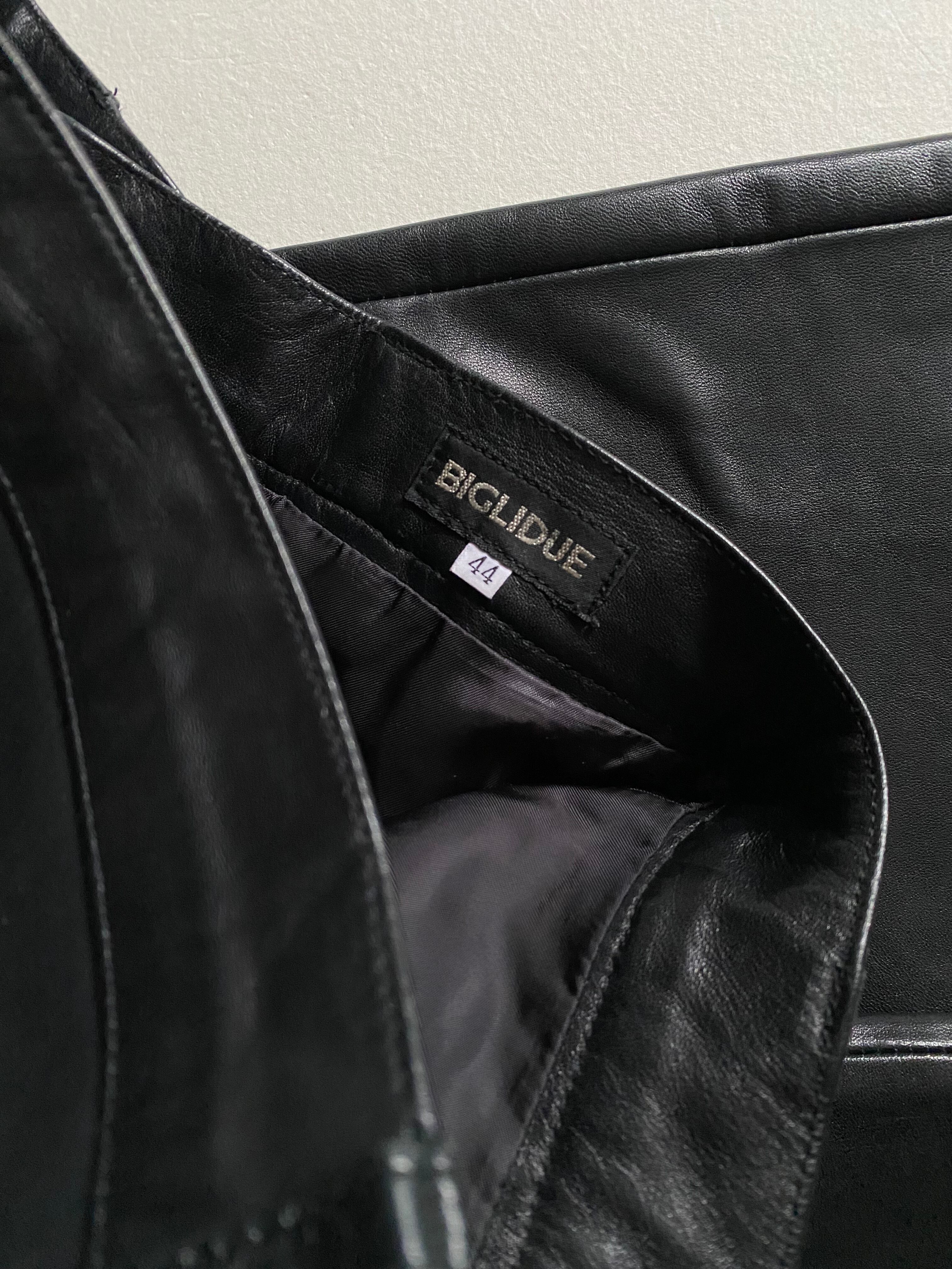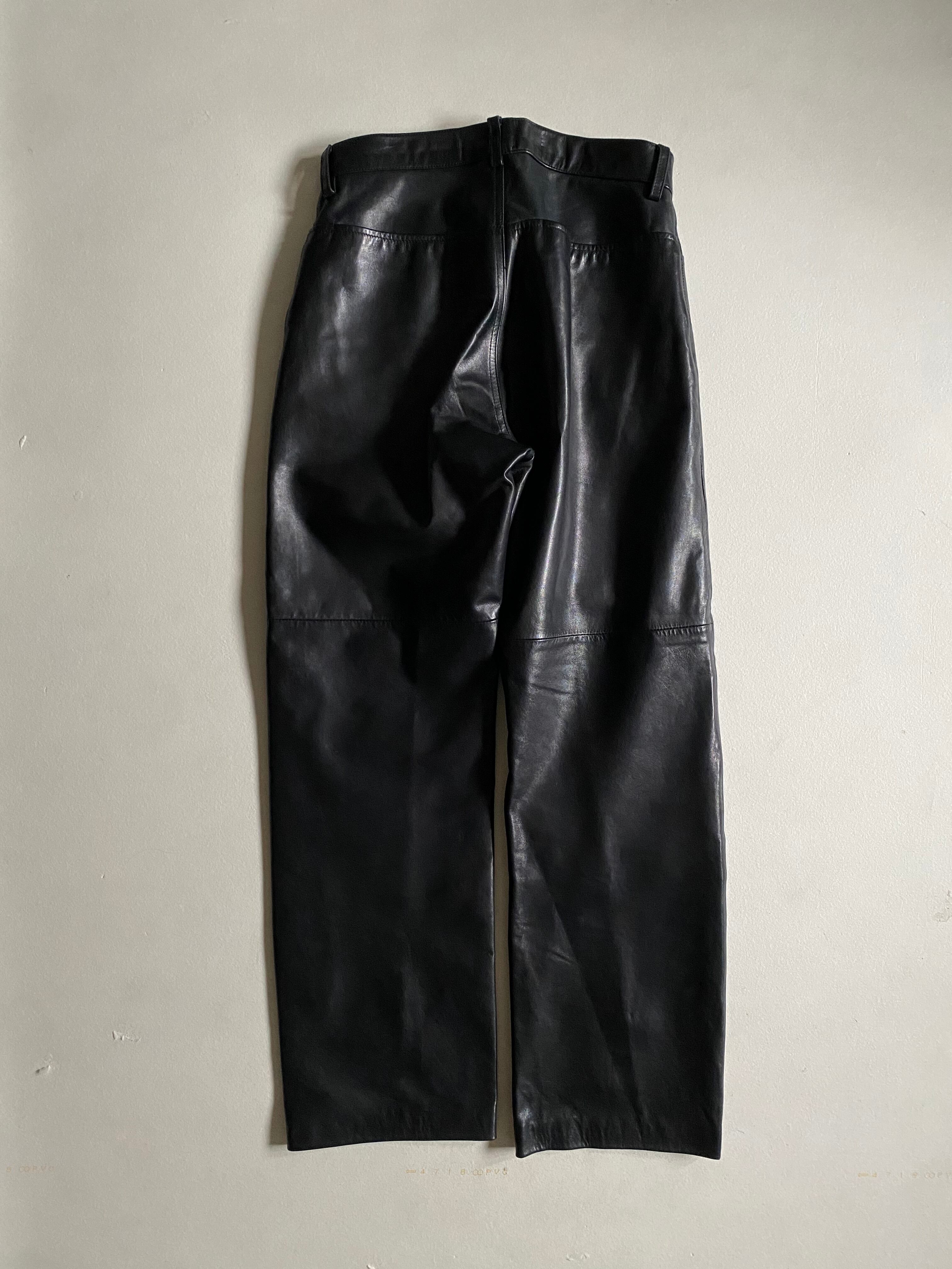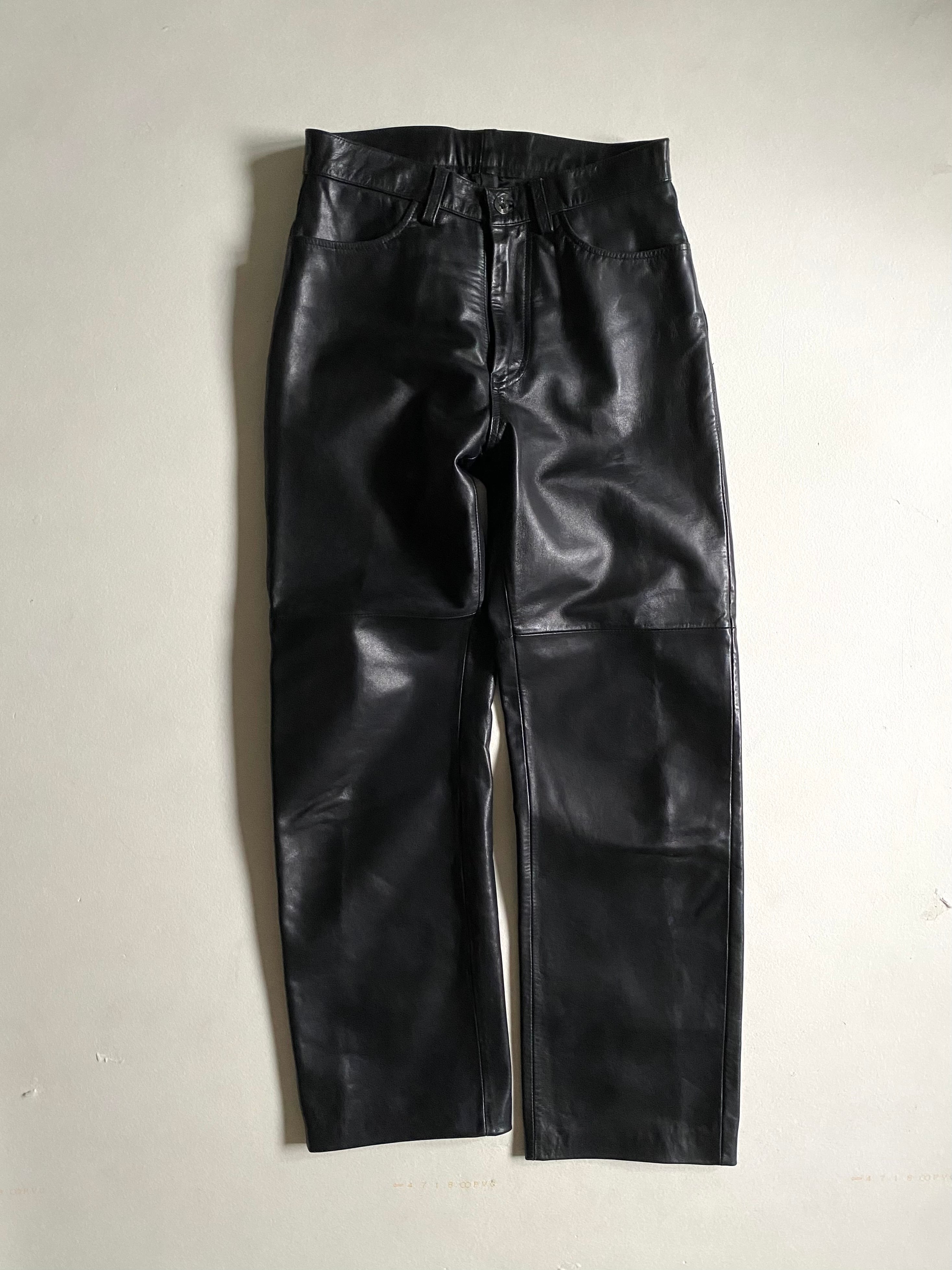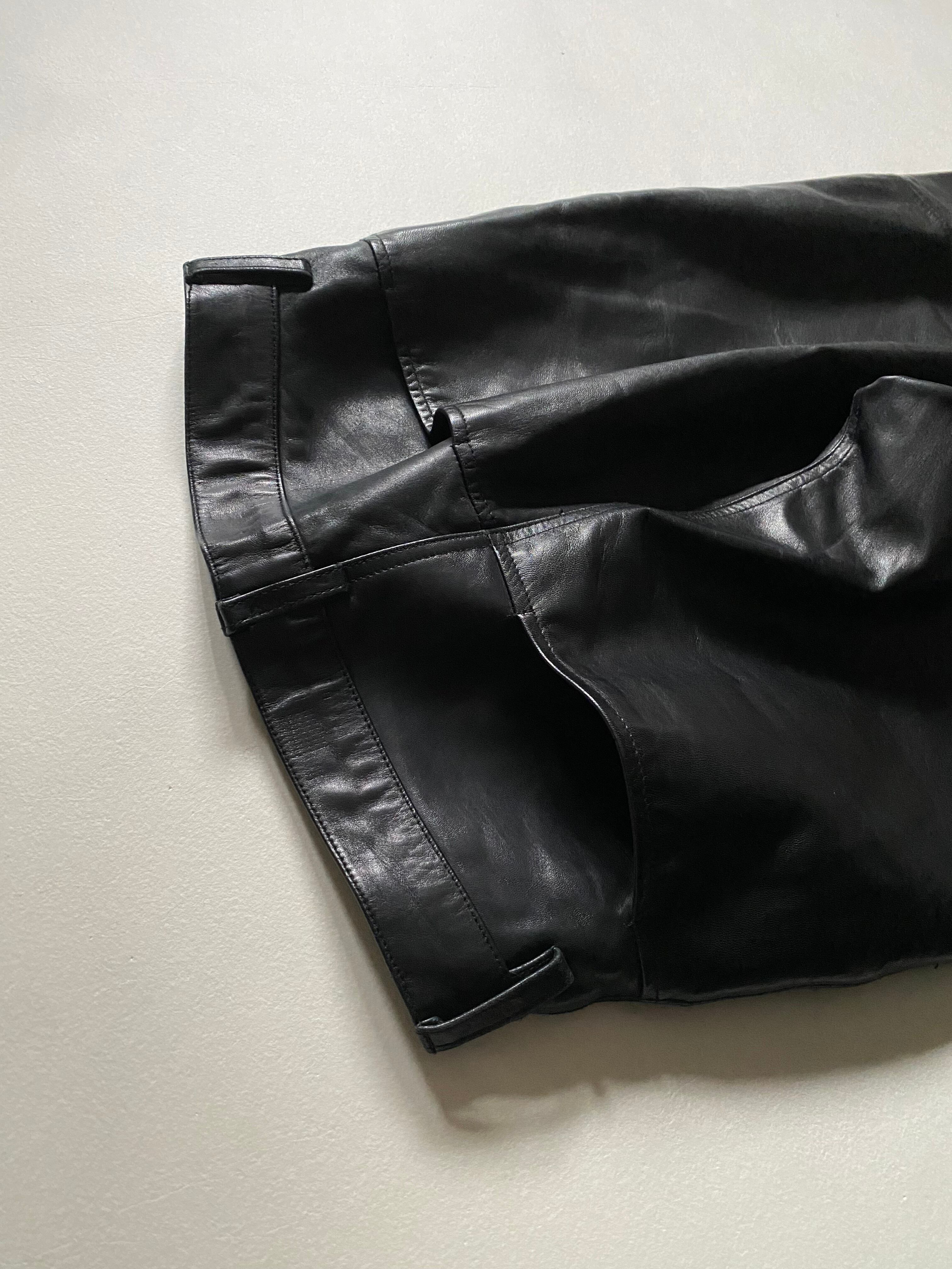 90s- biglidue horse leather pantsは、ビリドゥーエによる高品質な馬革を使用したレザーパンツです。マットでもっちりとした素材感が特徴で、しなやかさを兼ね備えています。このパンツは、従来の革パンの概念を覆すデザインで、着心地も抜群です。