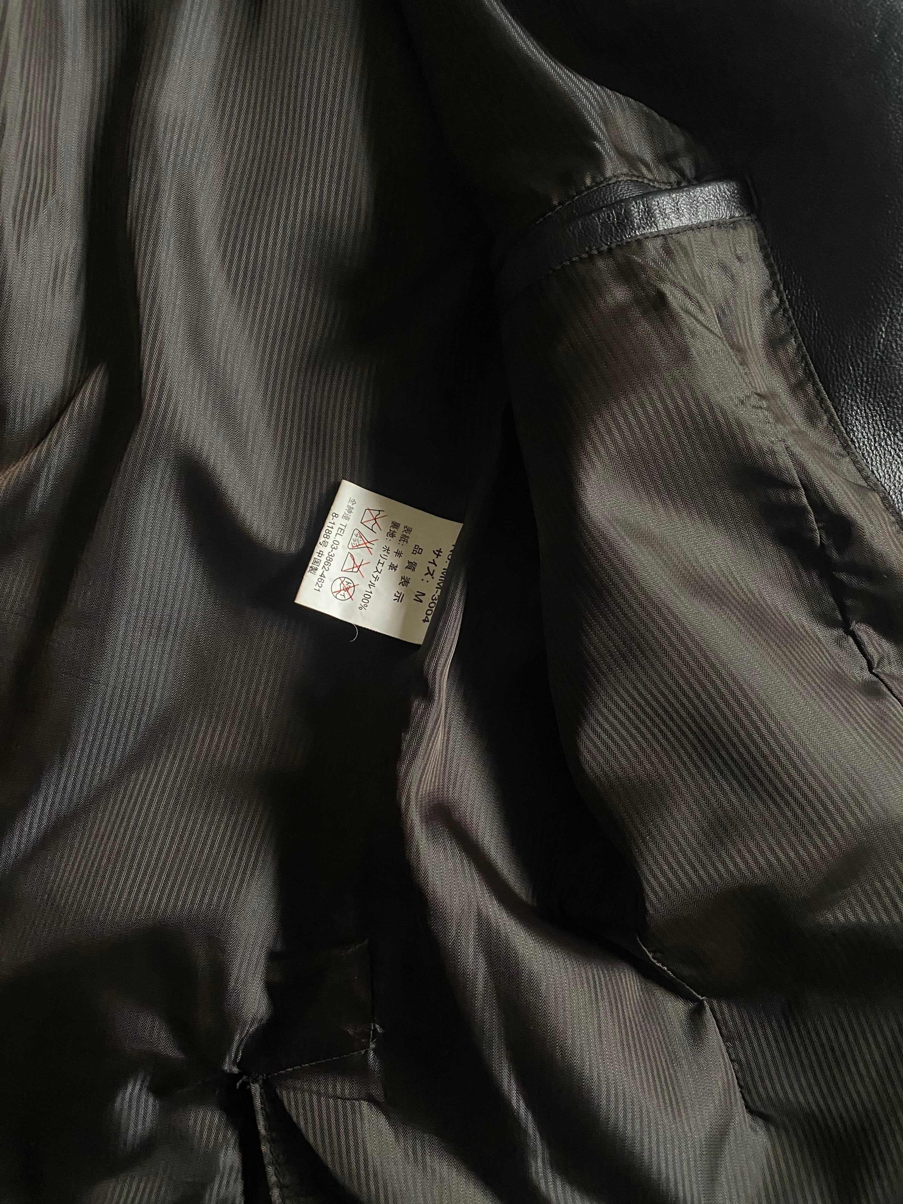 90s- sheepskin 3B leather jacketは、浅いVゾーンが特徴のレザーテーラードジャケットです。必須アイテムなデザインで、スタイリッシュさが際立ちます。このジャケットは、しなやかなシープスキンを使用しており、見た目の美しさだけでなく、着心地の良さも追求しています。