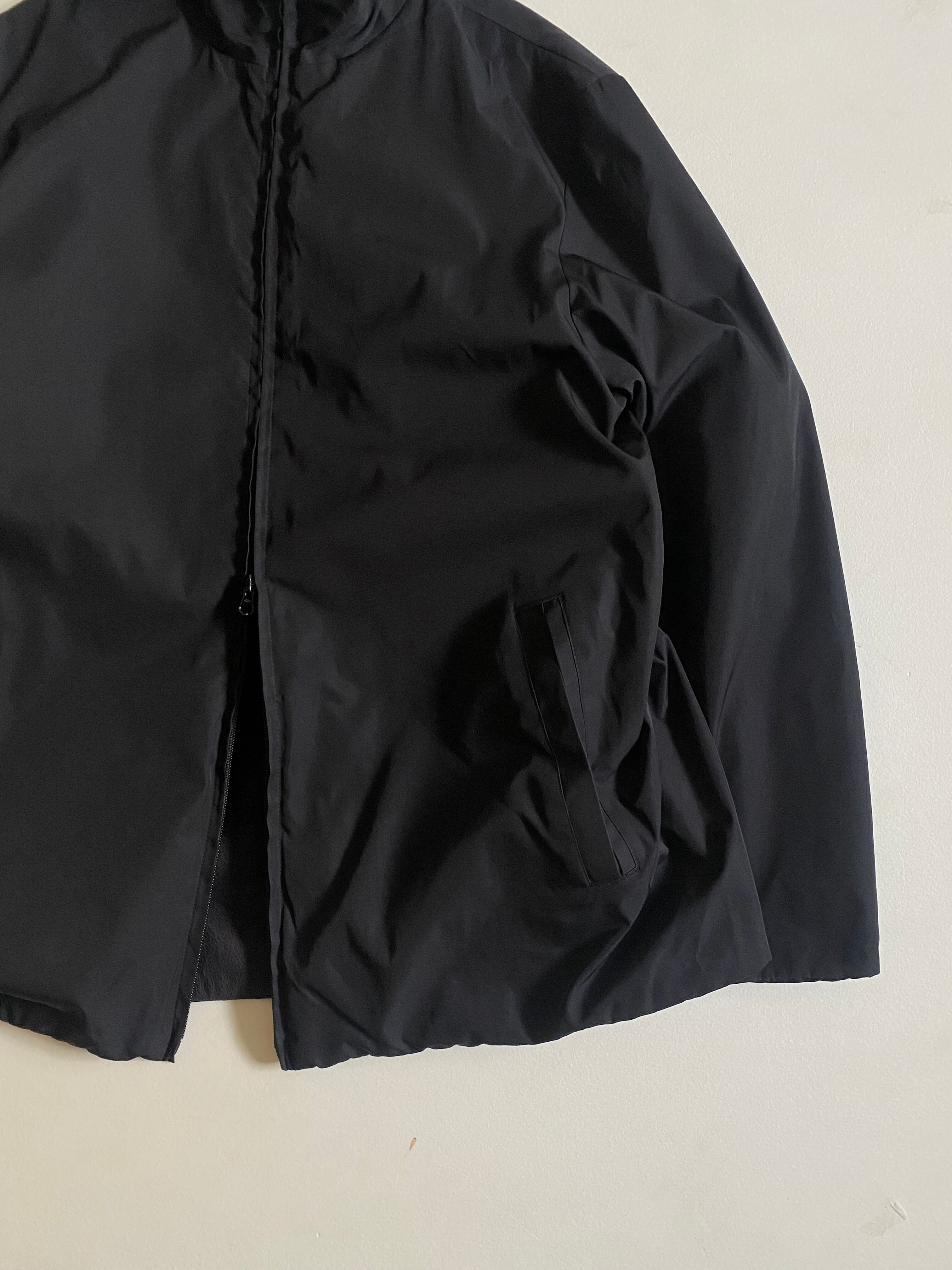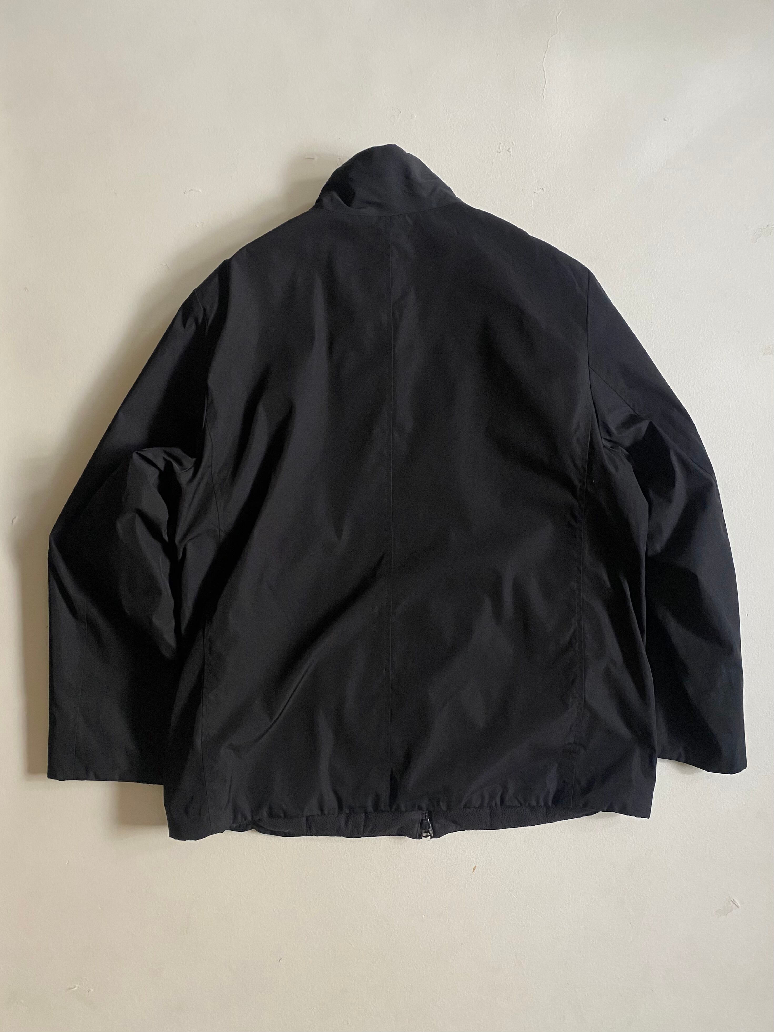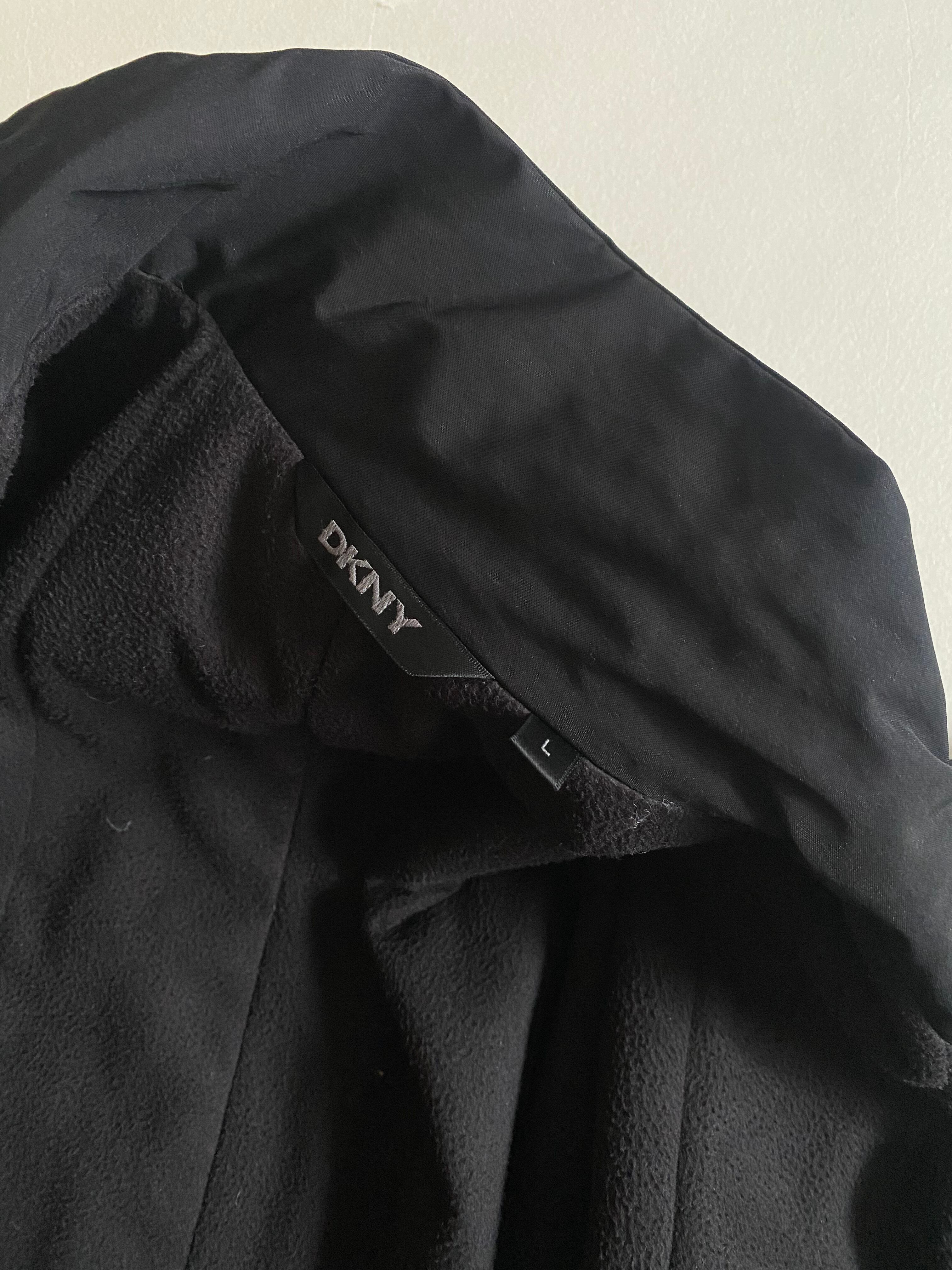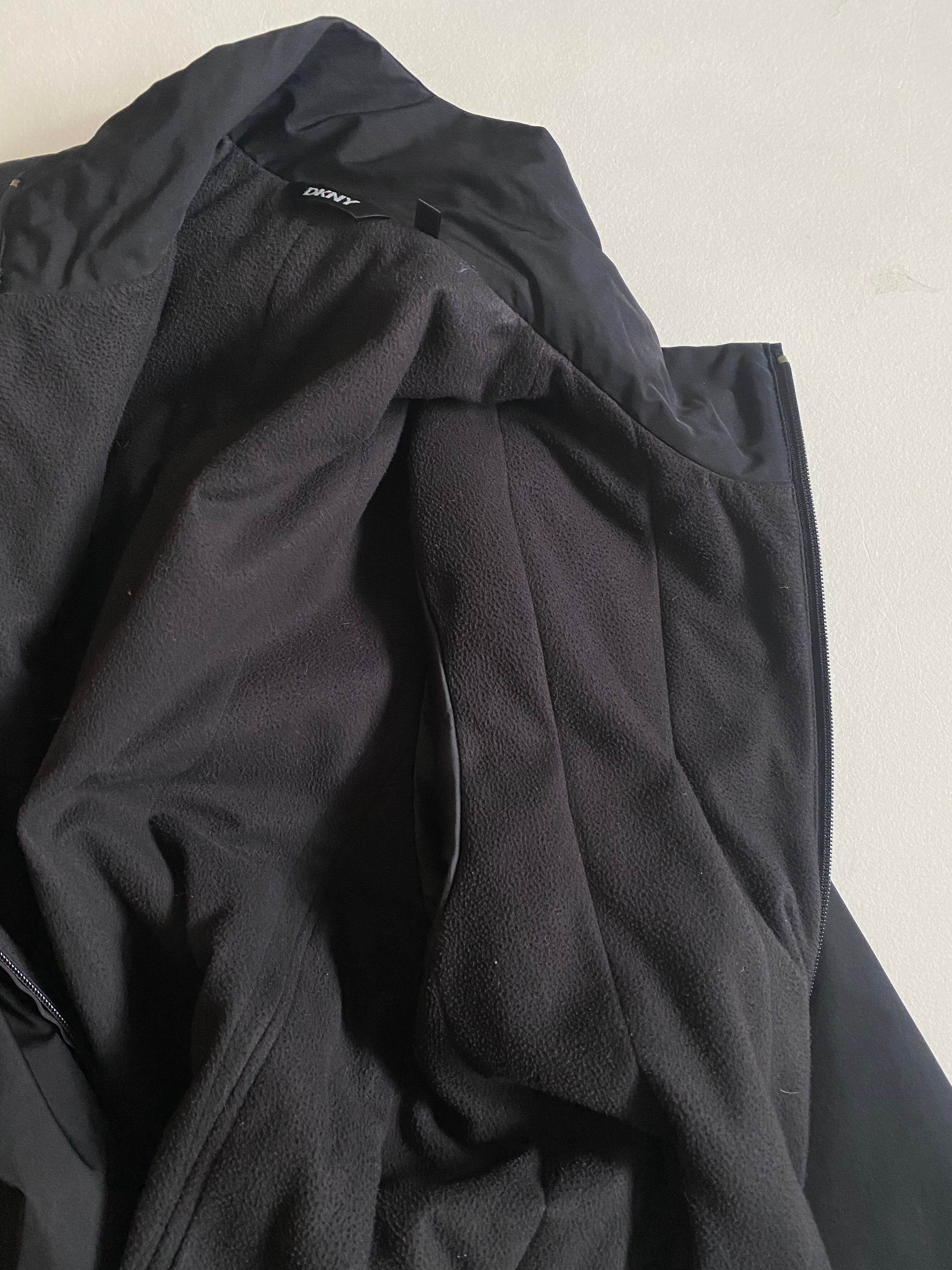 洗練されたミニマルデザインが魅力のDKNYブラックジャケットです。表側にはポリエステル素材を使用し、裏地はフリース地で仕立てられています。さらに薄い中綿も装備しており、温かさと快適さを兼ね備えた一着です。