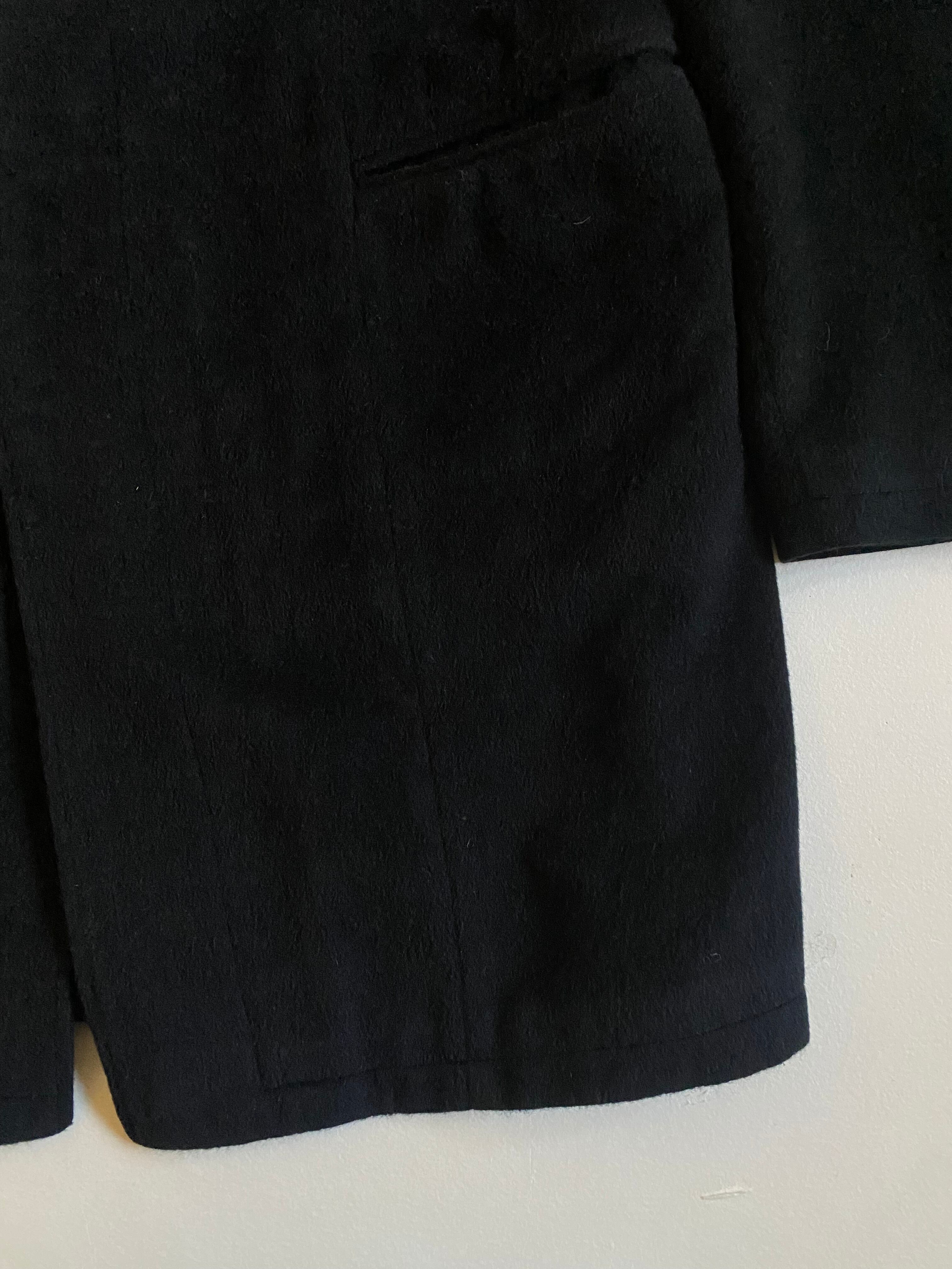 エンポリオアルマーニのアンゴラウールコート。このコートは、アンゴラウールの軽やかな素材が特徴で、上品さが際立つ一着となっています。流れるようなシルエットが、着用することで美しく体にフィットし、魅力を引き立てます。