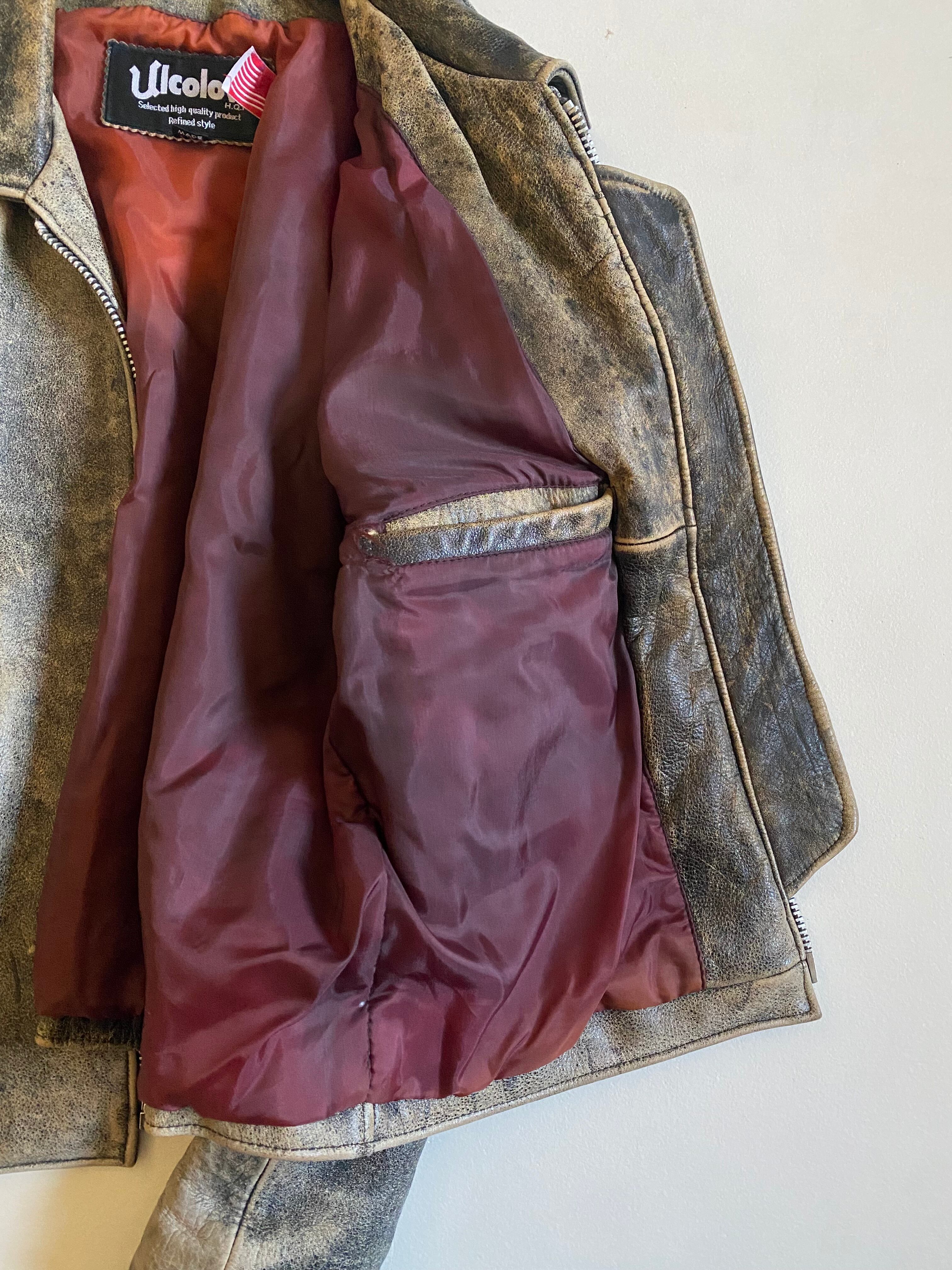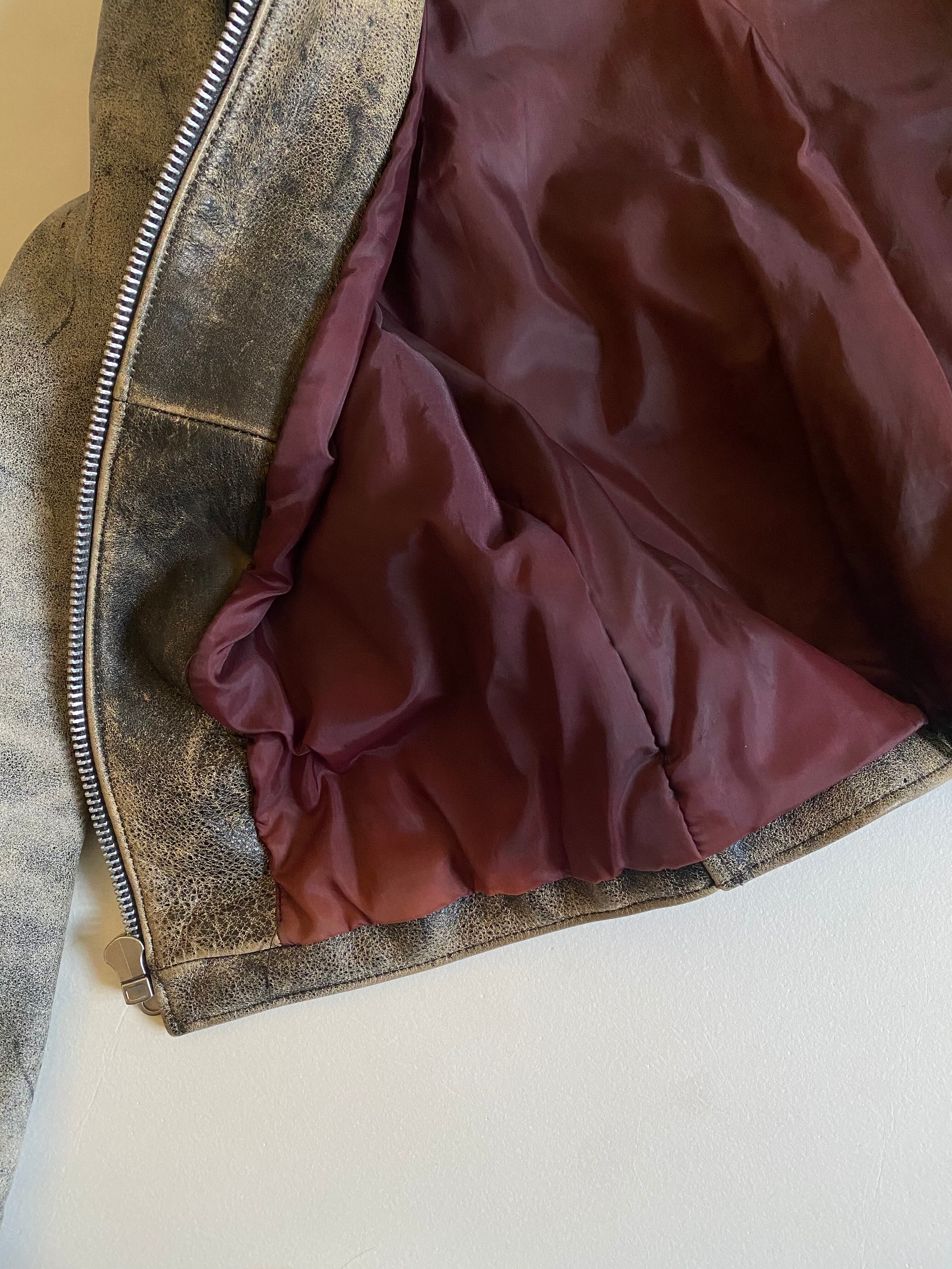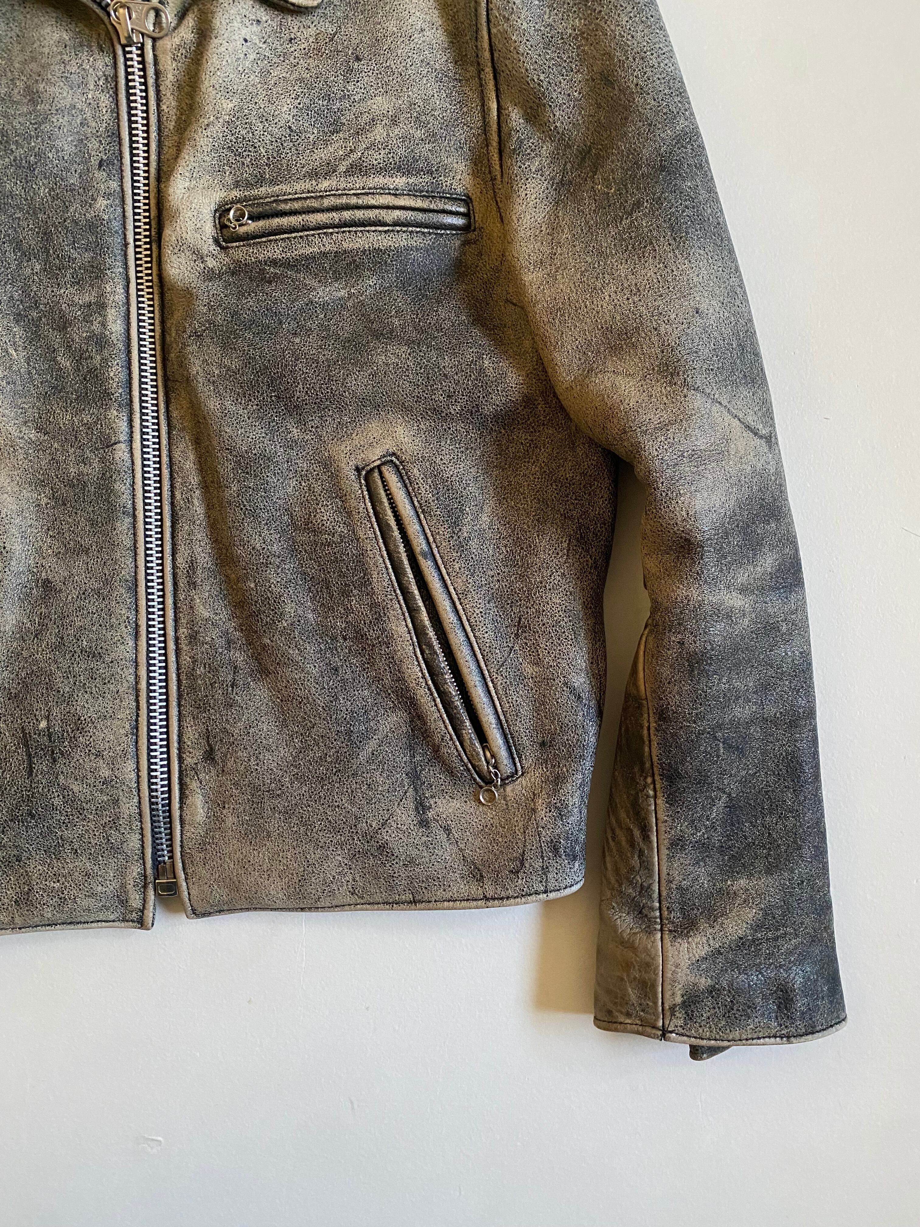抜群の雰囲気が楽しめるフェードレザーシングルライダースジャケットです。このジャケットは、スーパーフェードの独特な質感を持ち、短丈デザインが今の気分にマッチした一着となっています。