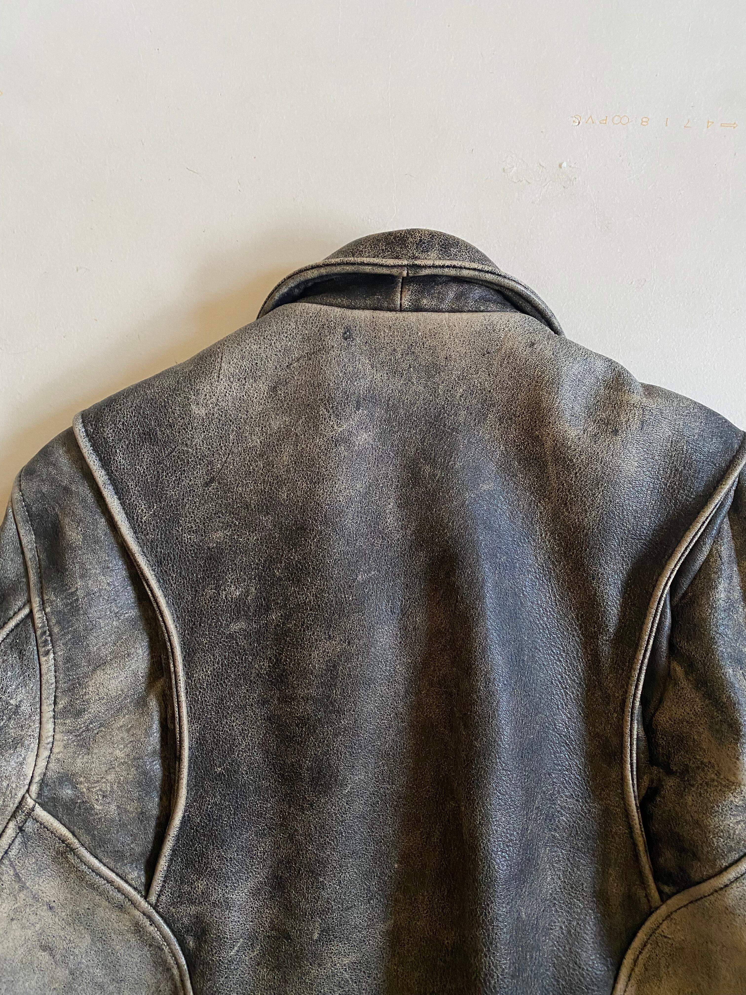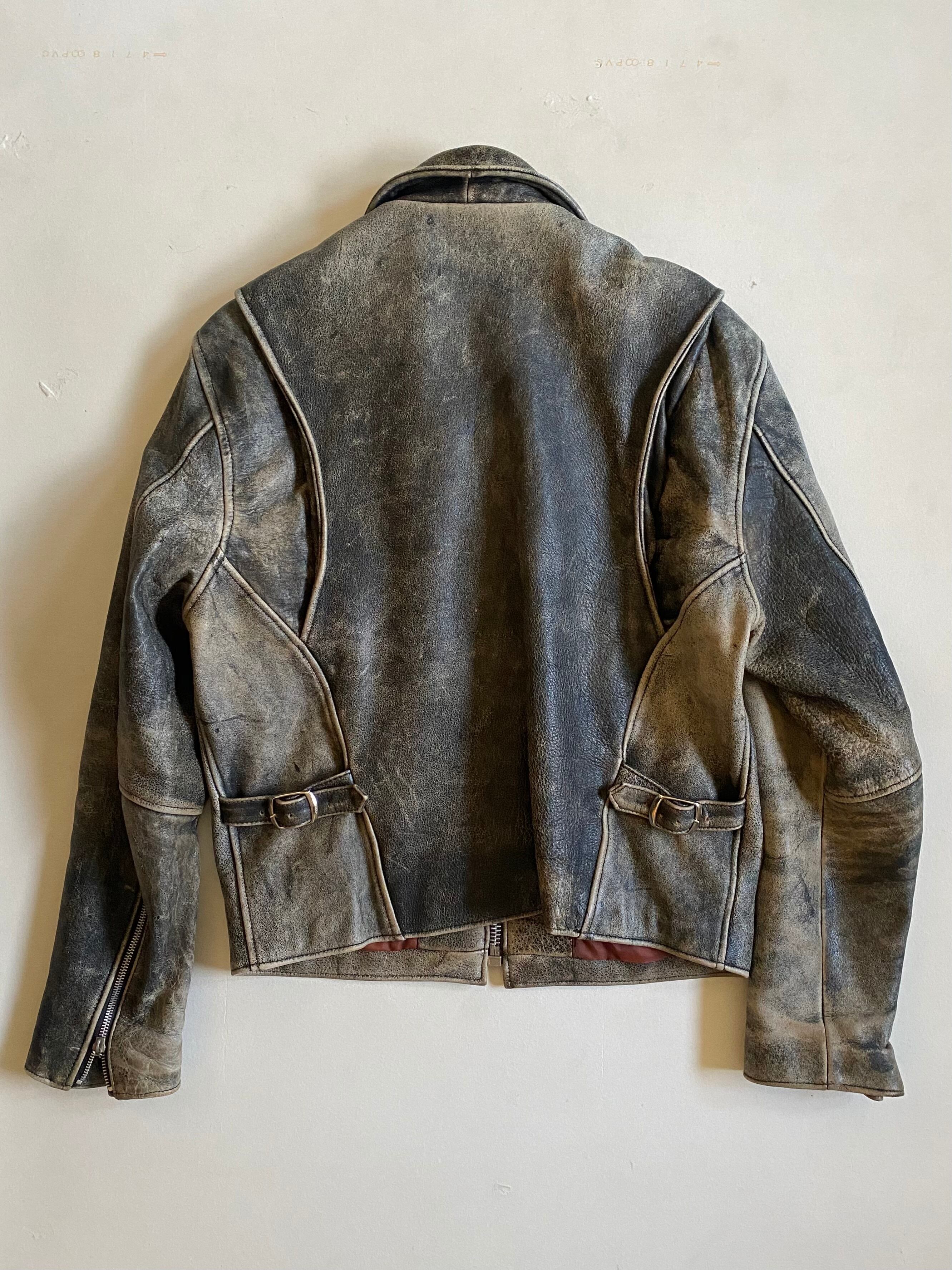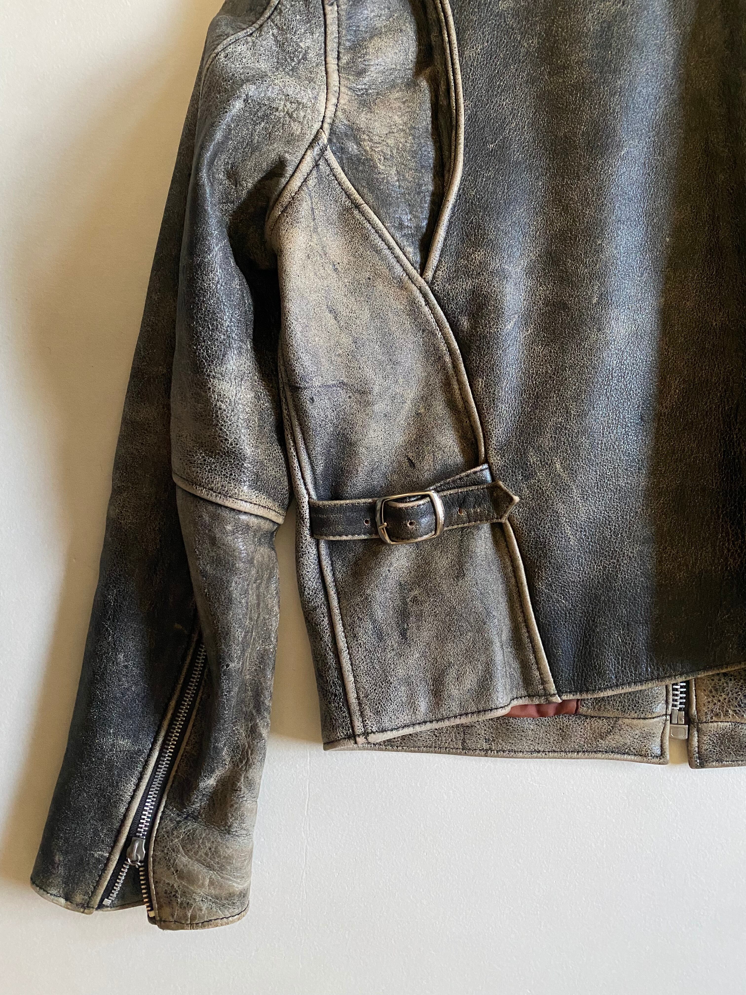 抜群の雰囲気が楽しめるフェードレザーシングルライダースジャケットです。このジャケットは、スーパーフェードの独特な質感を持ち、短丈デザインが今の気分にマッチした一着となっています。