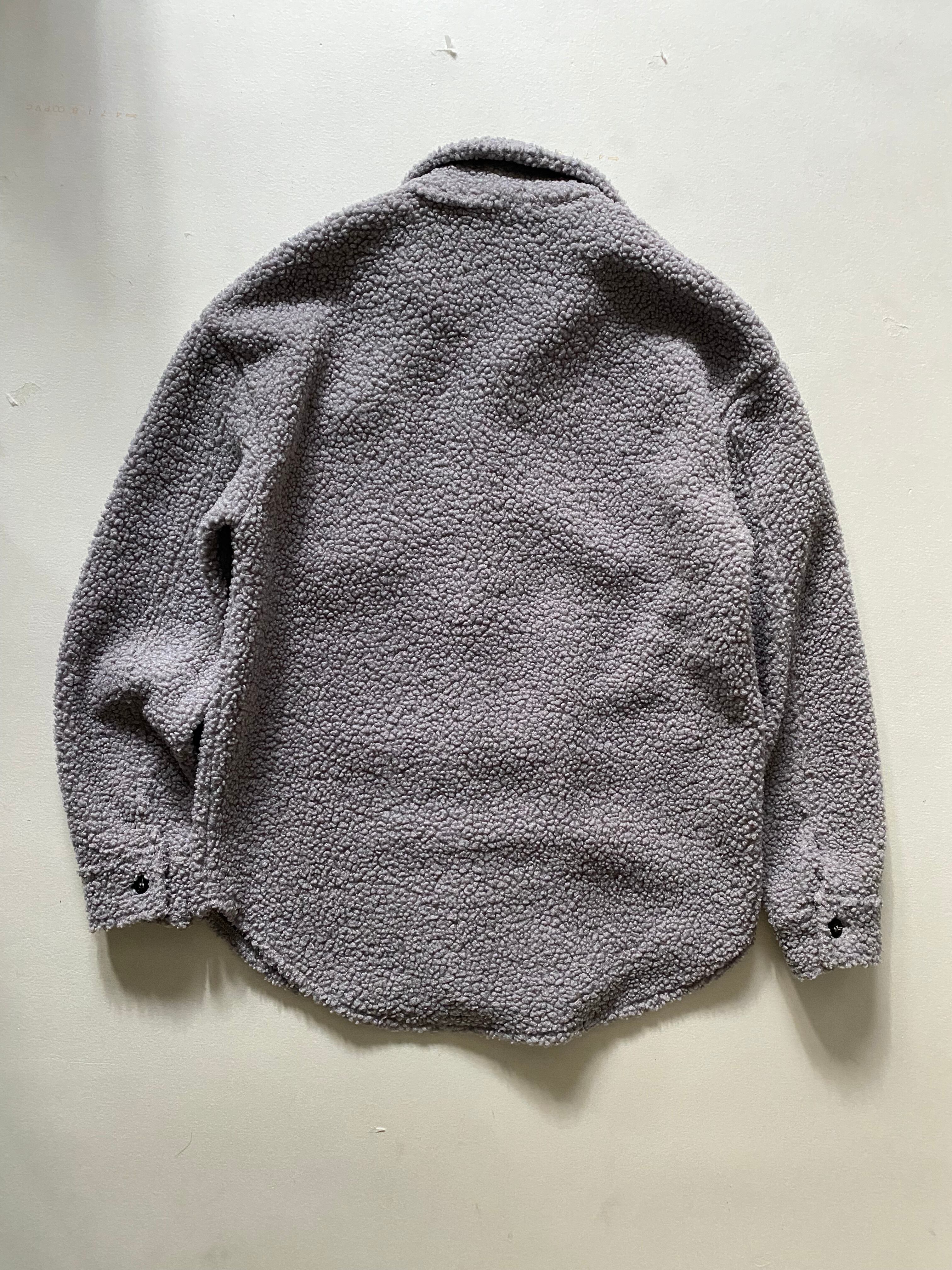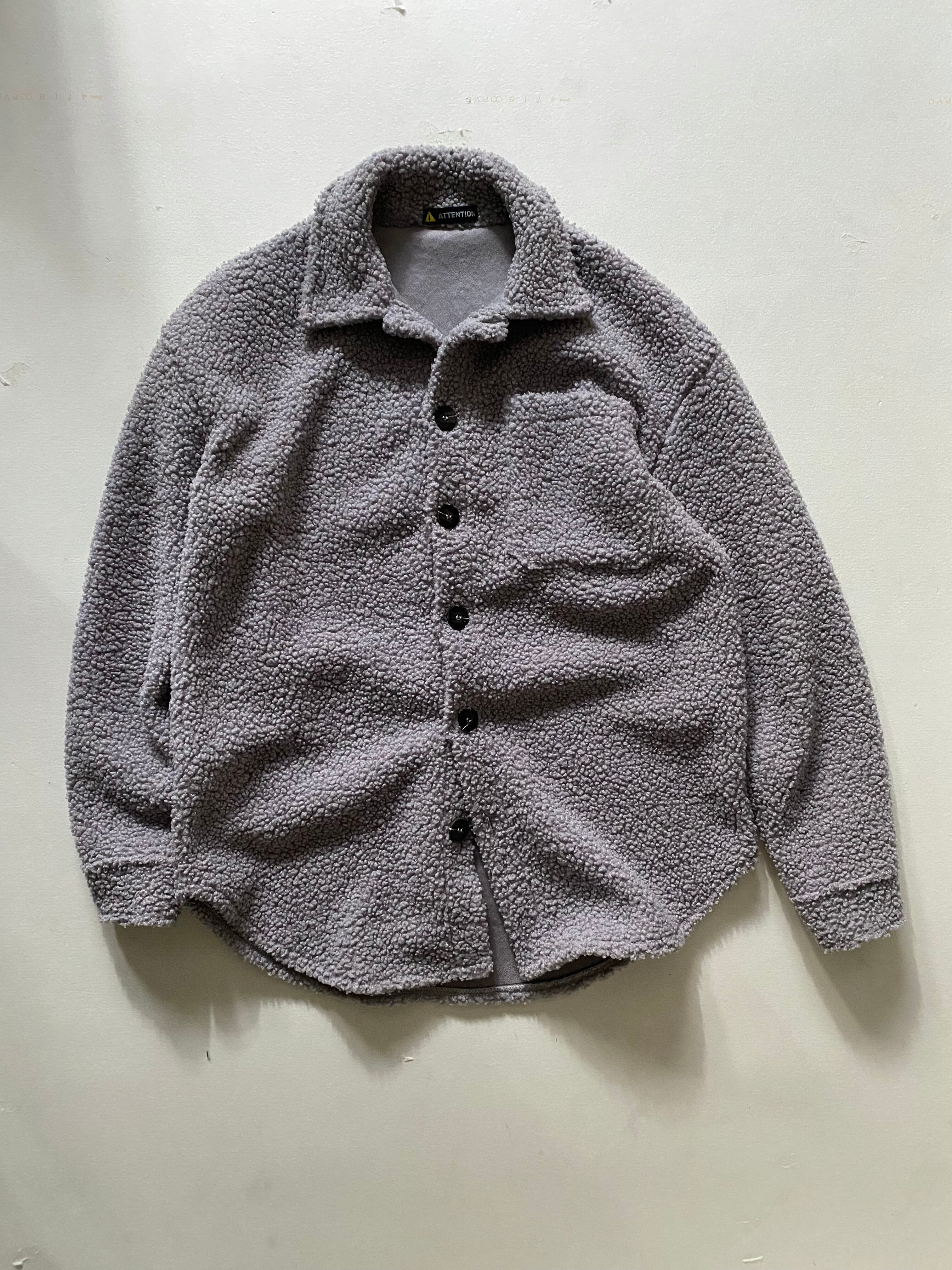 グレーのフリースシャツです。このシャツは、オールフリース素材で、暖かさと軽さを兼ね備えた一着となっています。インナーとしても、シャツジャケットとしても活躍し、毎日のコーディネートを楽しくコーディネートできます。