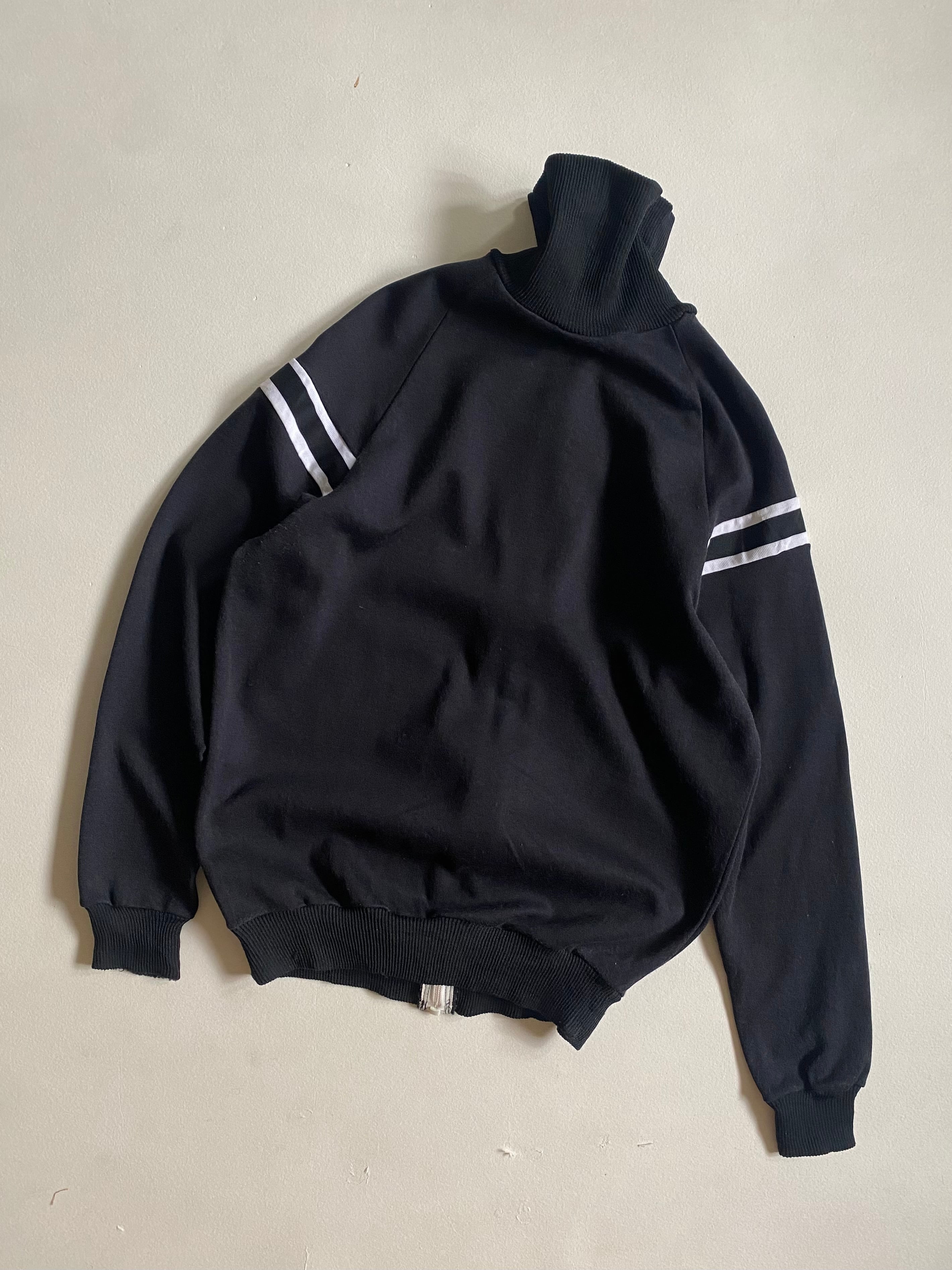 80s- Germany black track jacketです。このトラックジャケットは、シンプルながらも際立つブラックカラーが特徴的で、どんなスタイルにも合わせやすい万能アイテムです。適度にフィットするデザインで、着心地も抜群です。