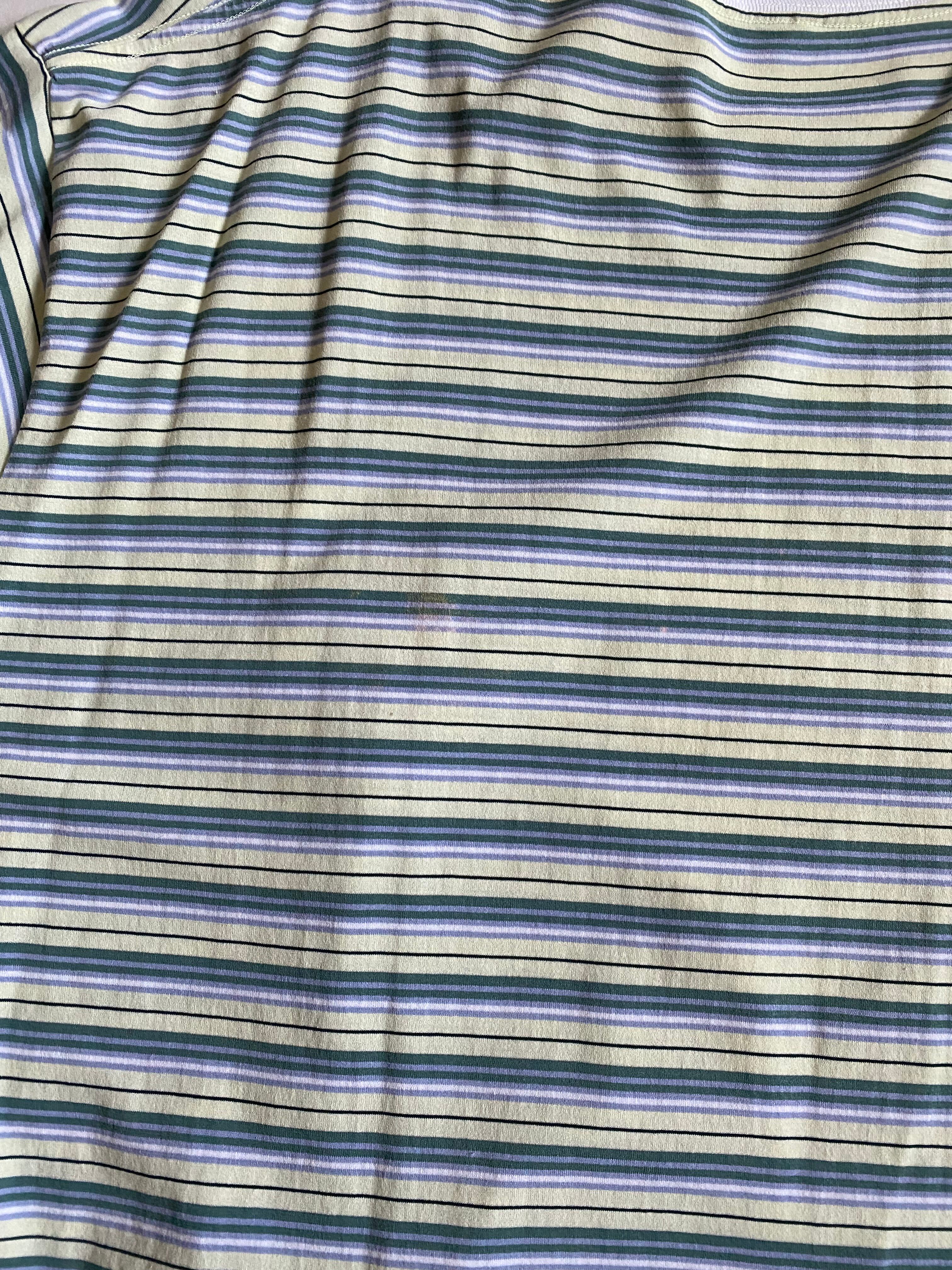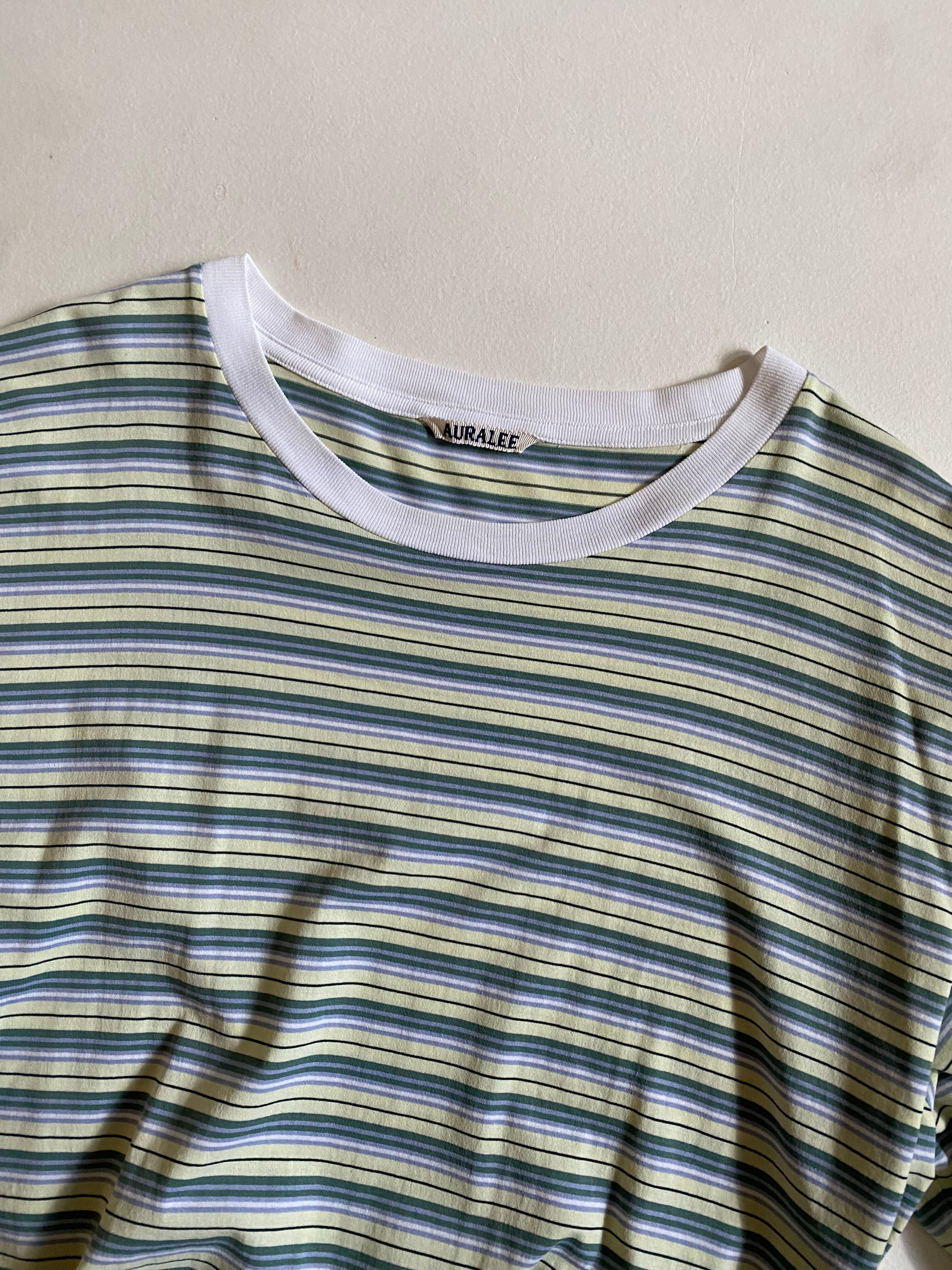 らしい配色のボーダーデザインが特徴で、インナーとしてはもちろん、一枚でもサラッと着こなせるアイテムです。カジュアルな雰囲気を持ちながらも、シンプルさの中に遊び心を詰め込んだ一着となっています。