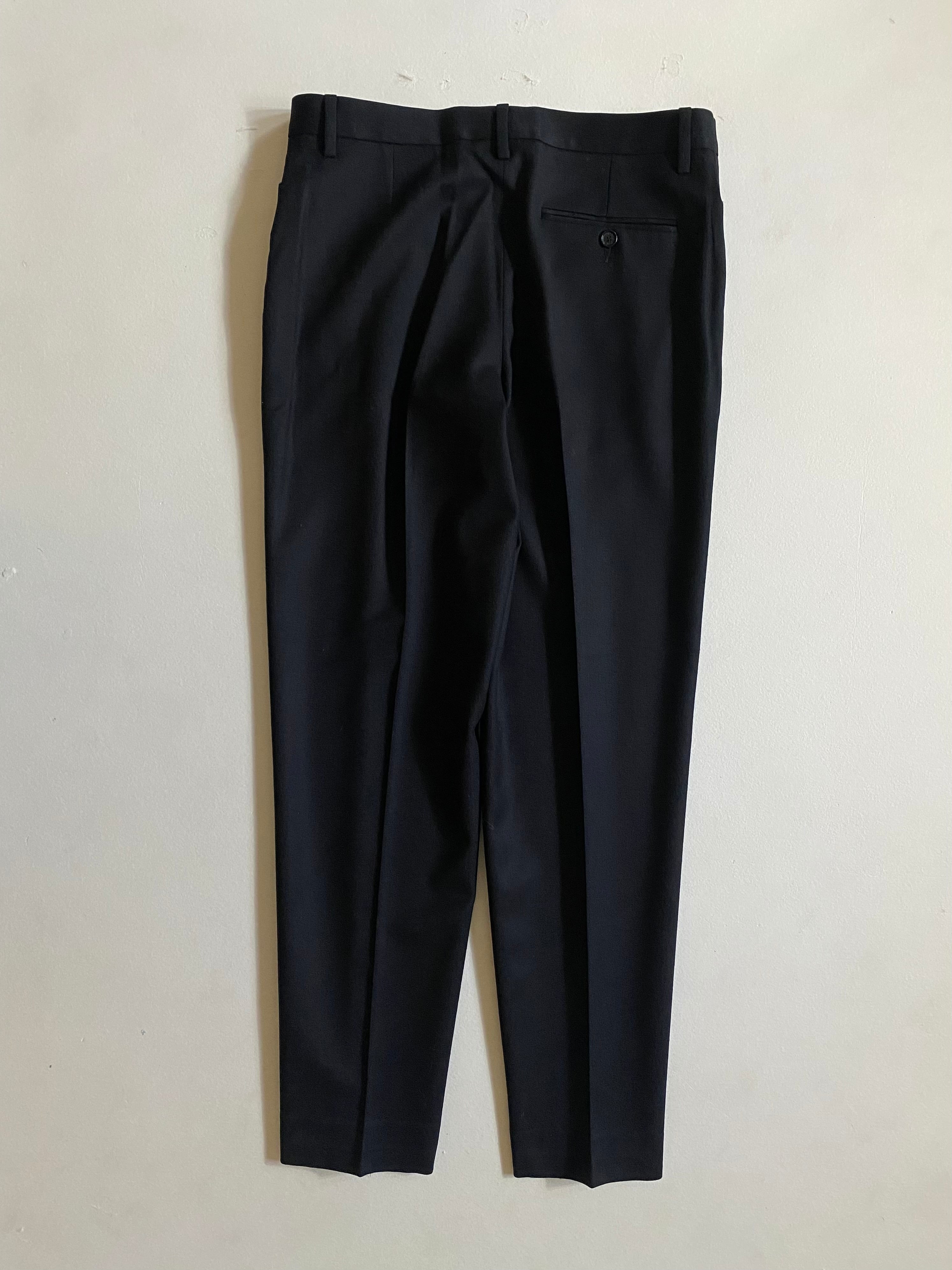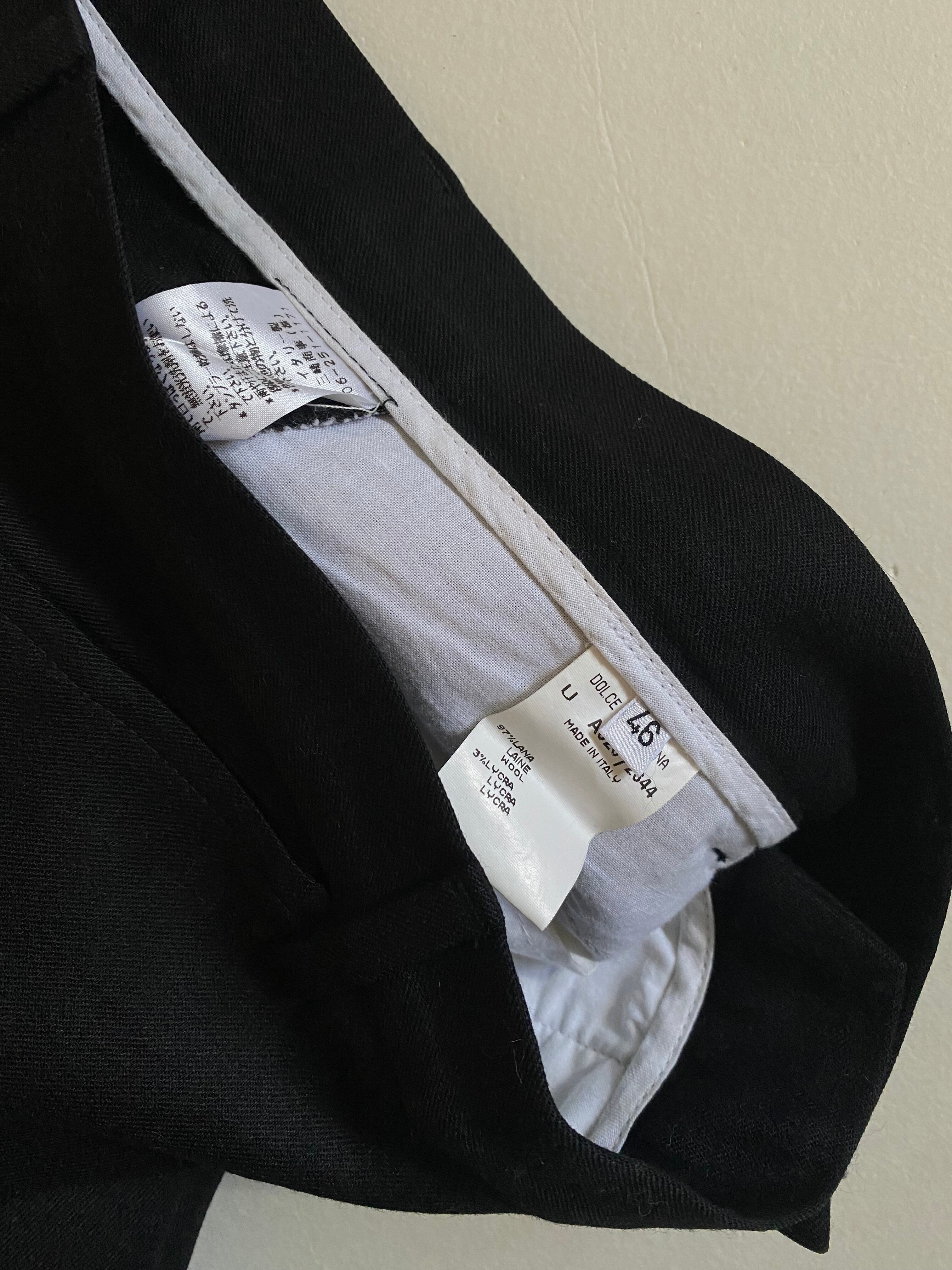 Dolce & Gabbana wool slacks blackです。このスラックスは、シンプルでありながら高級感漂う黒のウール素材が特徴で、気分な股上と細身のシルエットが魅力です。洗練されたデザインが、スタイルを引き立てる一着です。