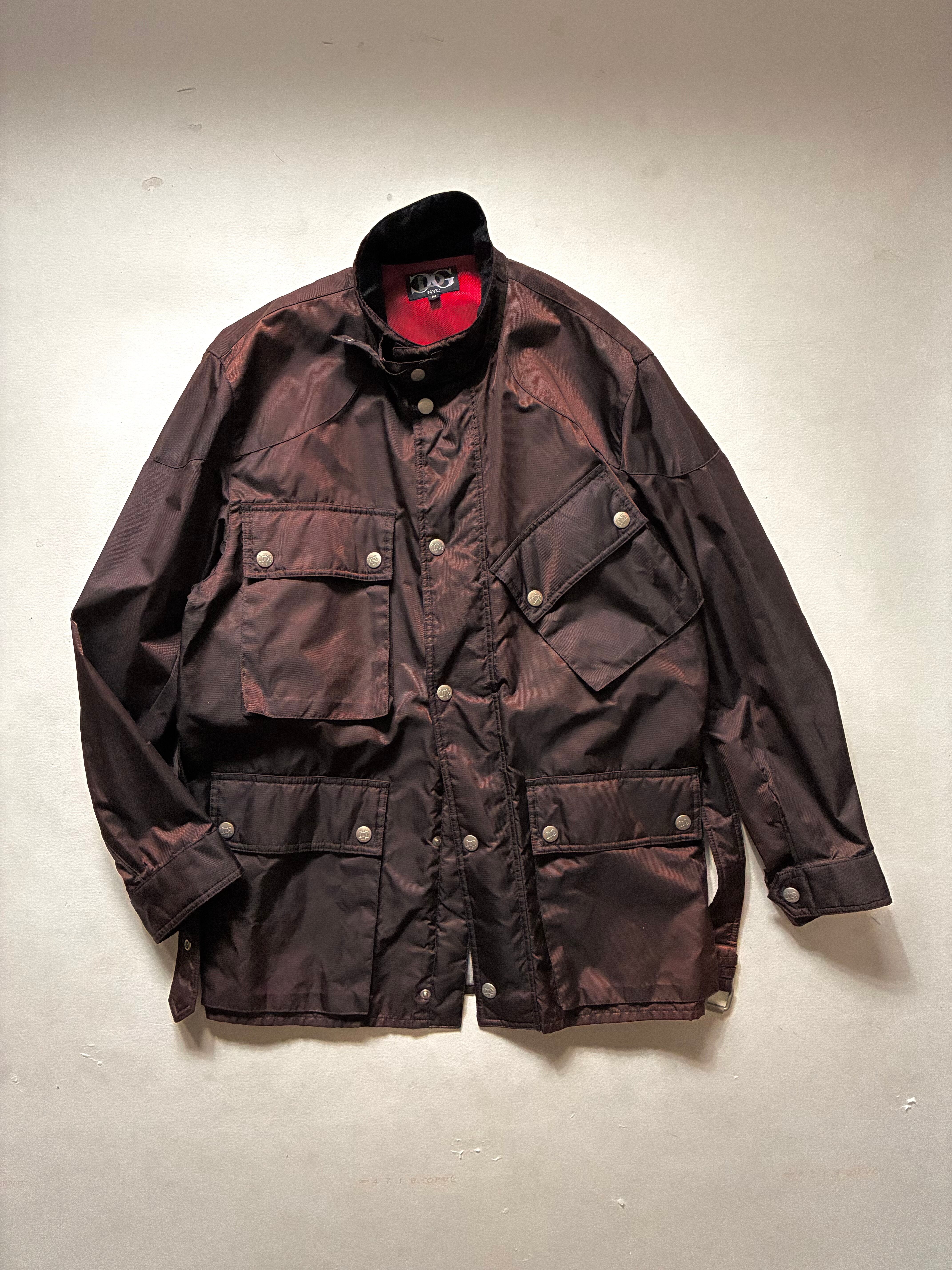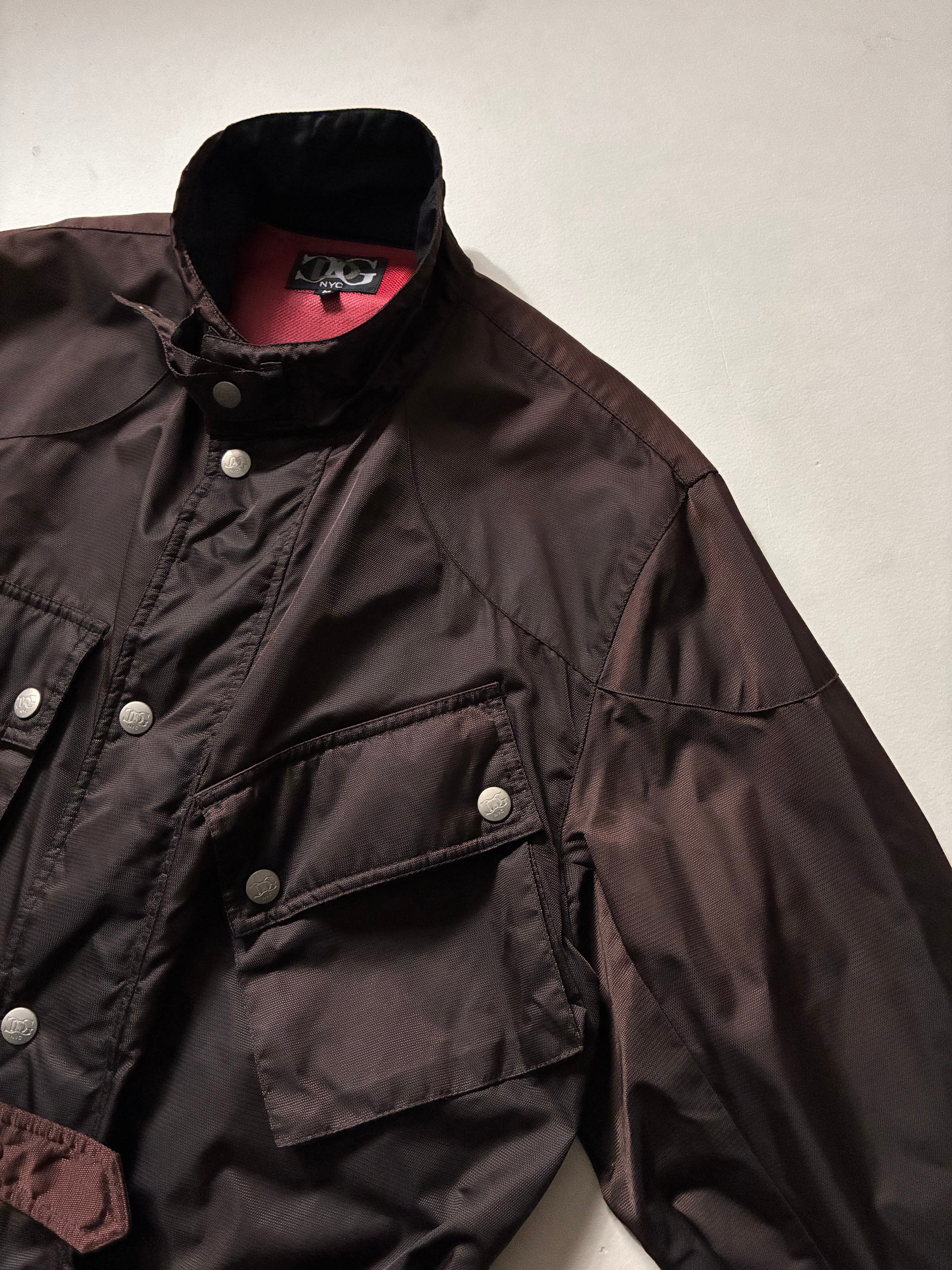 90s- CGDesign motorcycle jacketは、ユニークなフェード感のあるブラウンナイロンを使用した素晴らしいモーターサイクルジャケットです。CGDesignによるデザインは、クラシックな魅力とハードなスタイルを融合させています。