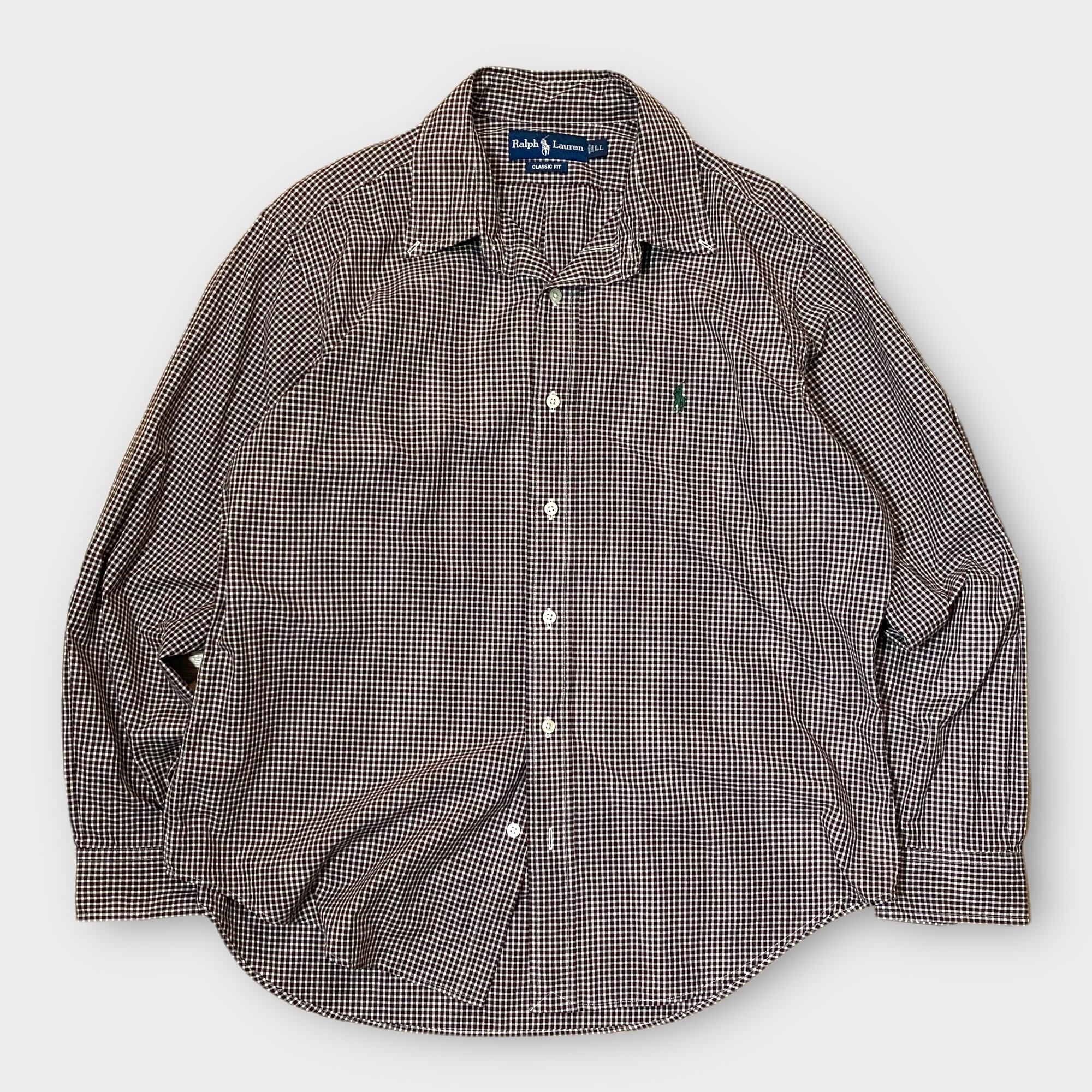 精悍な印象で着こなせる00s- polo ralph gingham check shirt。着丈は短めで、身幅は広めのボックスシルエットが魅力的。品のある茶×白のチェック柄が、おしゃれな大人の雰囲気を演出します。