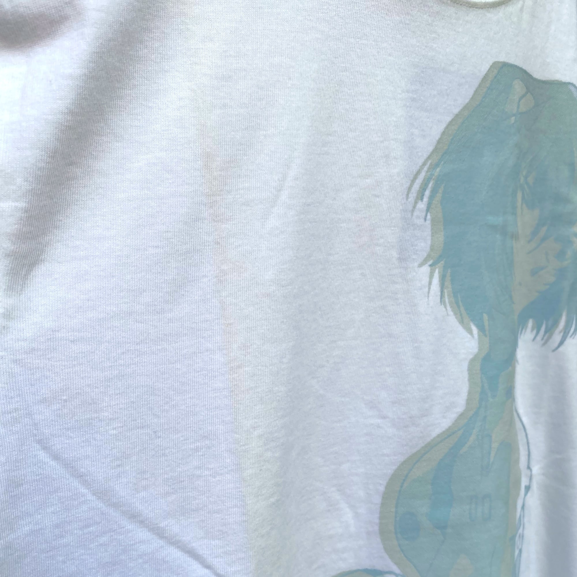 00s EVANGELION T-shirt 綾波レイは、アニメファン必見のレアアイテムです。2000年代にリリースされたデッドストックのTシャツで、綾波レイのプリントが施されています。今アツいアニメTシャツで、レトロ感満載のデザインが個性的でオシャレ。コレクターの方々にもおすすめの一枚です。