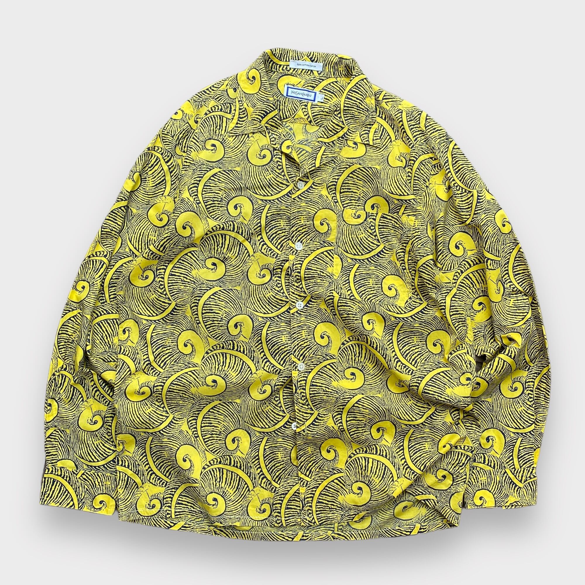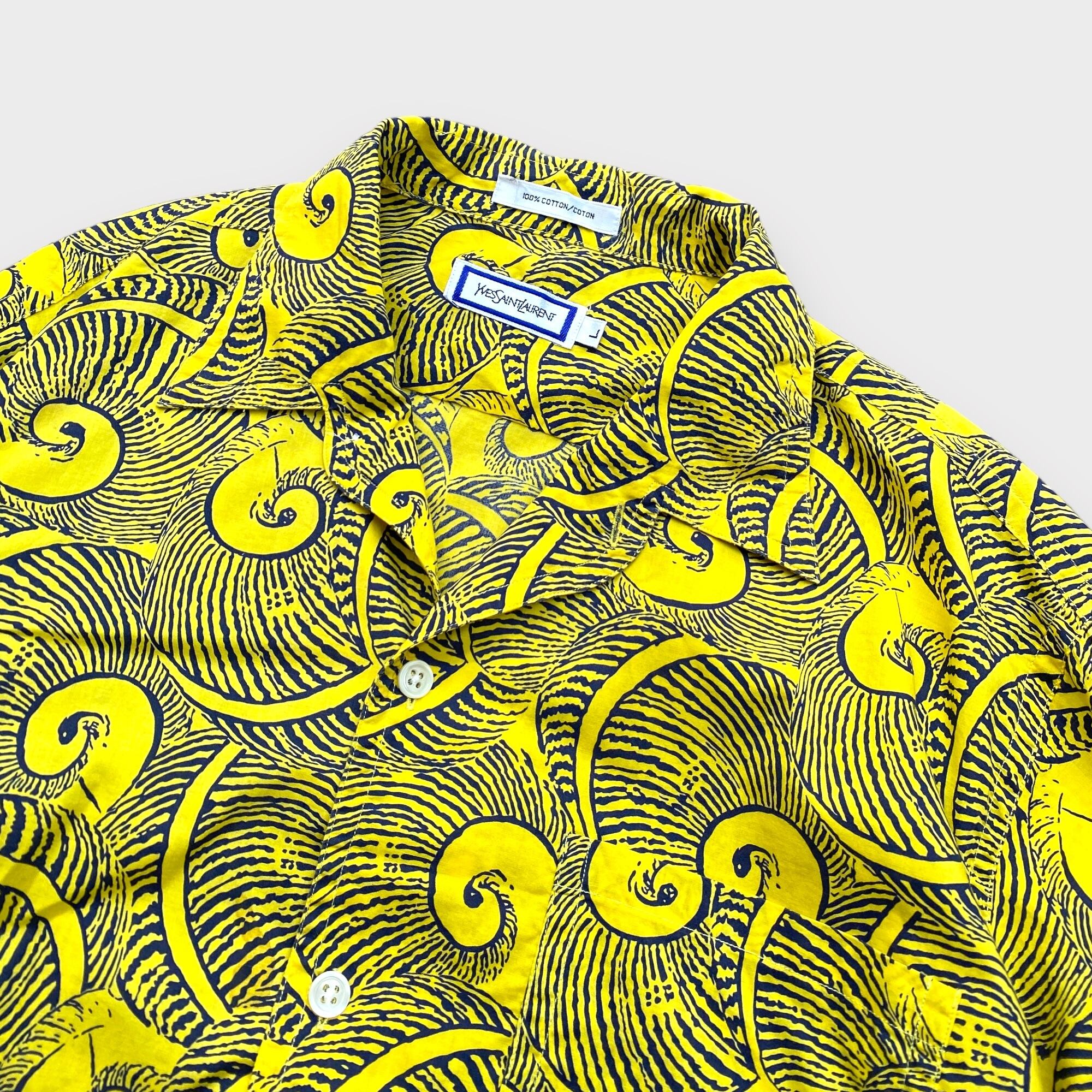 90s-サンローランの総柄シャツは、その独特な柄が際立つアイテムです。ヴィンテージ感満載で、他にはないデザイン性が魅力。中でも、サイズバランスの良さは必見です。着心地も快適で、コーディネートのポイントとして活躍すること間違いなし!