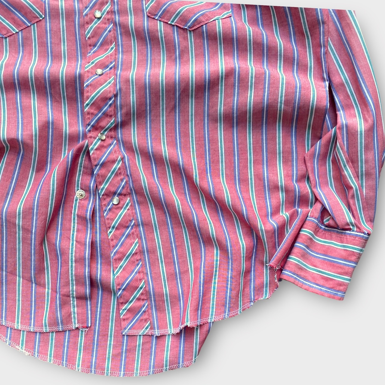 80s-90s wrangler stripe western shirtは、ウエスタン系のトレンドを取り入れた一枚。ウエストをシェイプしすぎず、取り入れやすいシルエットで、誰にでも似合うデザインです。レトロなストライプ柄がヴィンテージ感を演出し、80s-90sの雰囲気を楽しめます。