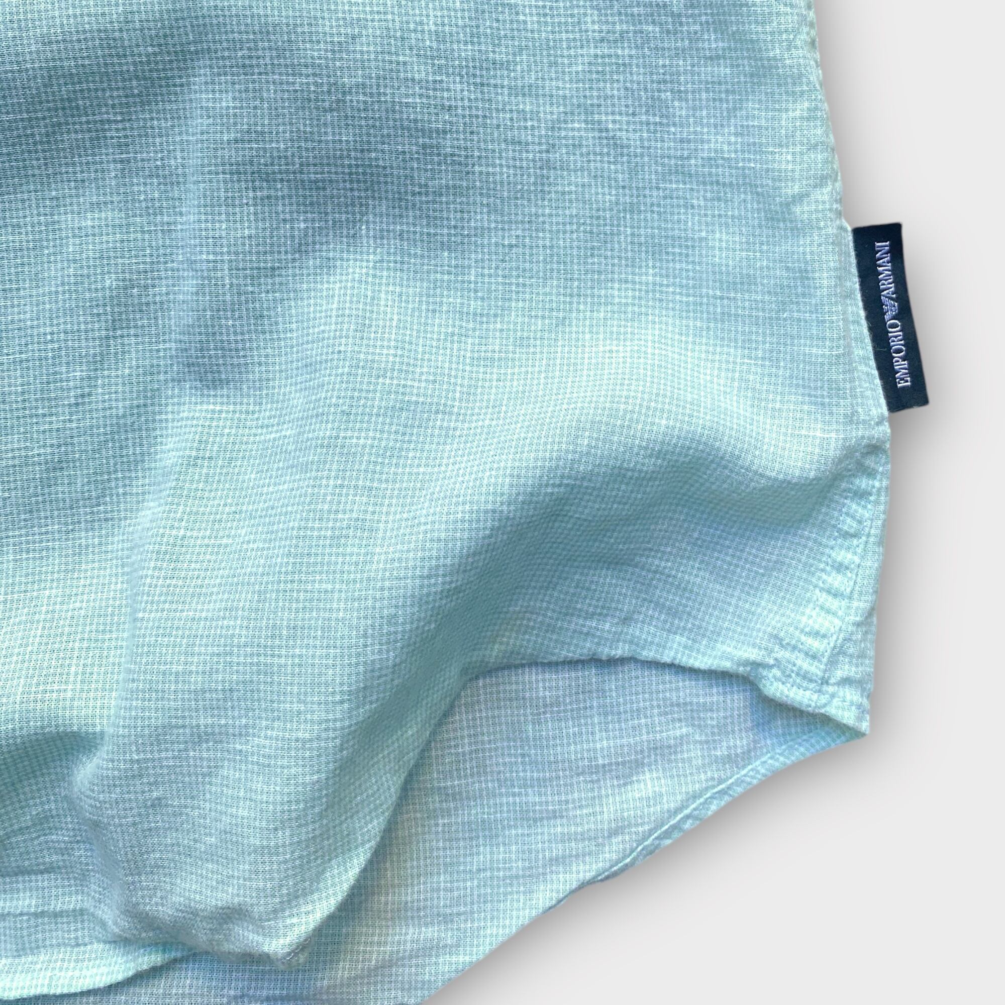 エンポリオアルマーニのコットンリネンチェックシャツは、ミントグリーンのカラーに細かいチェック柄が施された上品な一枚です。さりげない洗練を演出し、どんなシーンにもマッチします。アルマーニならではのデザインとクオリティで、あなたの着こなしを格上げしてくれること間違いなし。