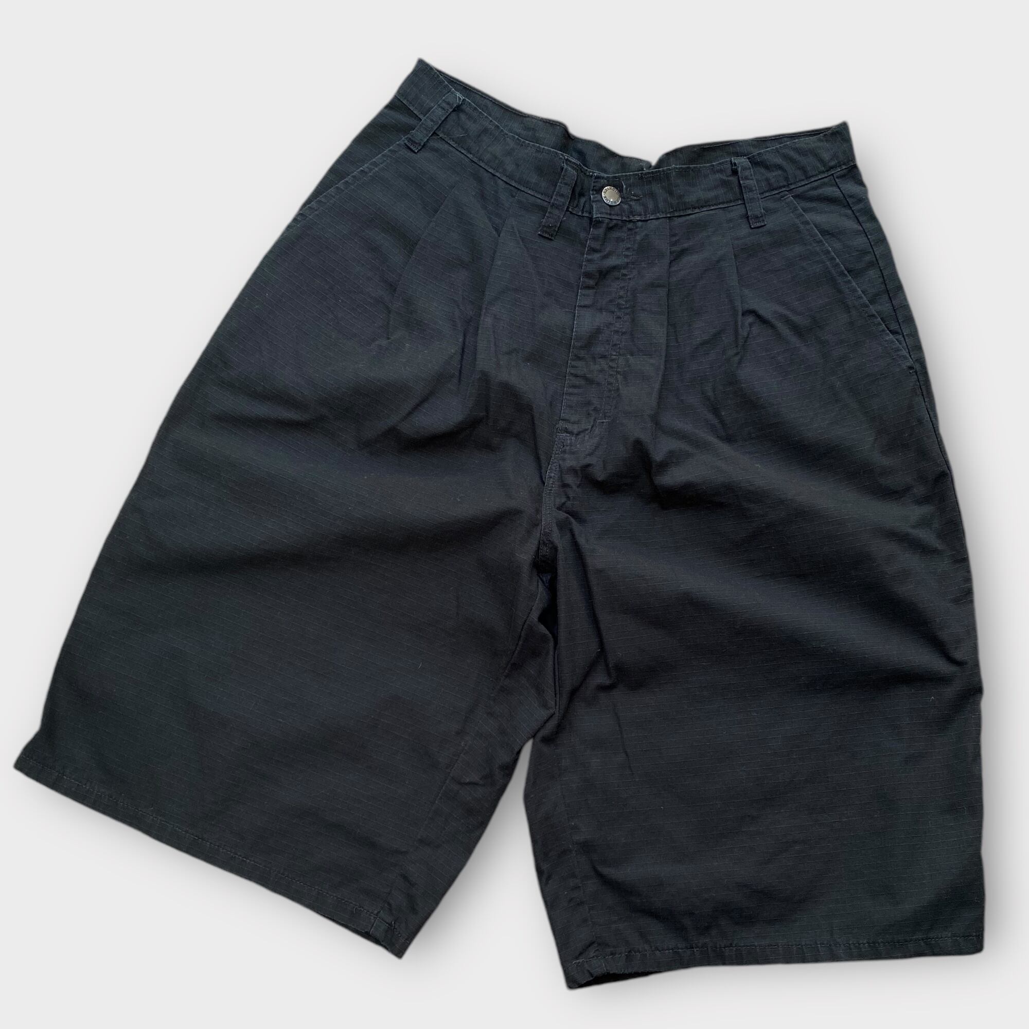 ウェスト42インチをツータックにリメイクしたディッキーズ、REMAKE dickies 2tuck half pants ripstop。珍しいリップストップ生地が特徴で、スタイリッシュなアクセントになります。洗練されたデザインでありながらも、リメイクされた個性的な一本です。ストリートファッションからカジュアルスタイルまで、幅広いコーディネートに活躍すること間違いなしです。