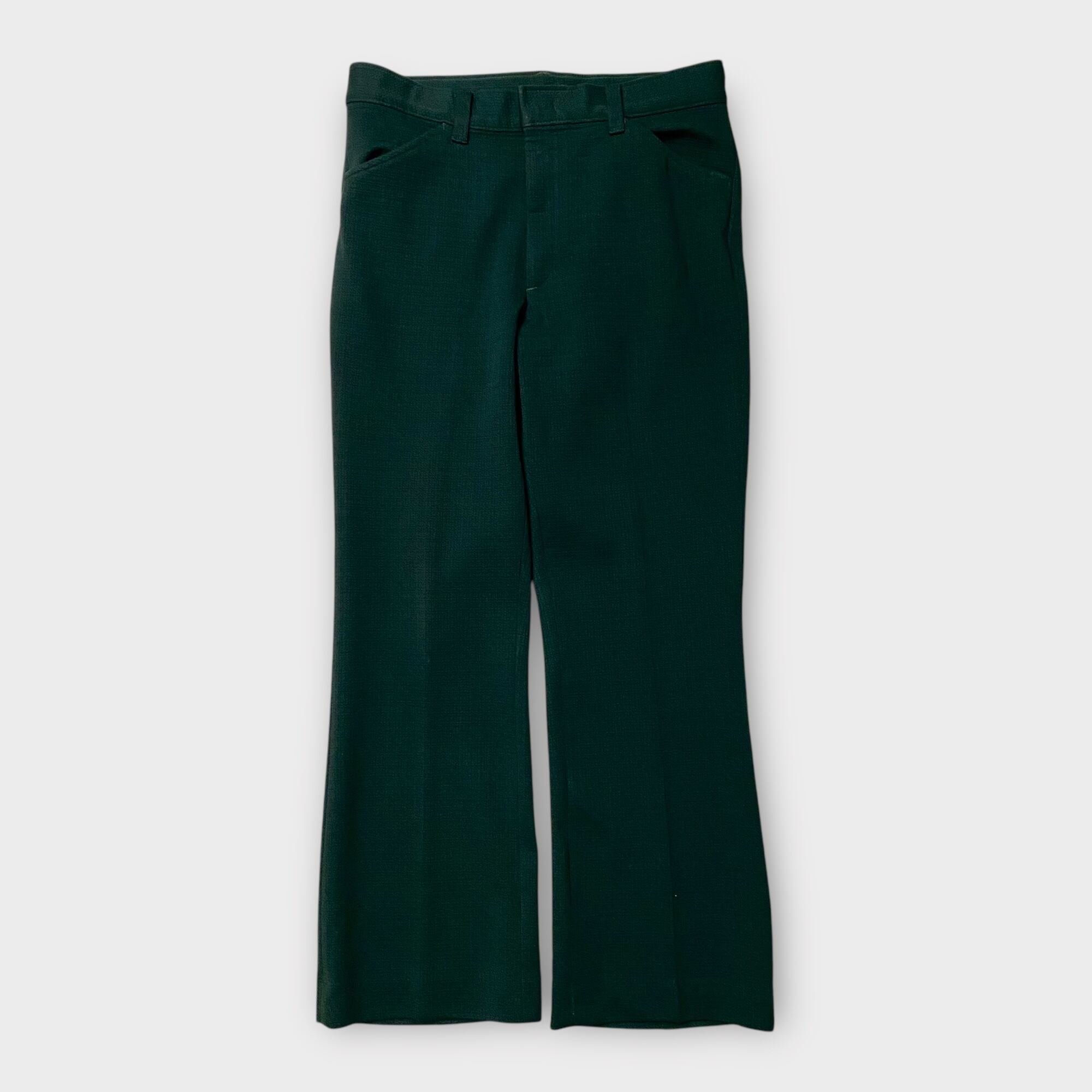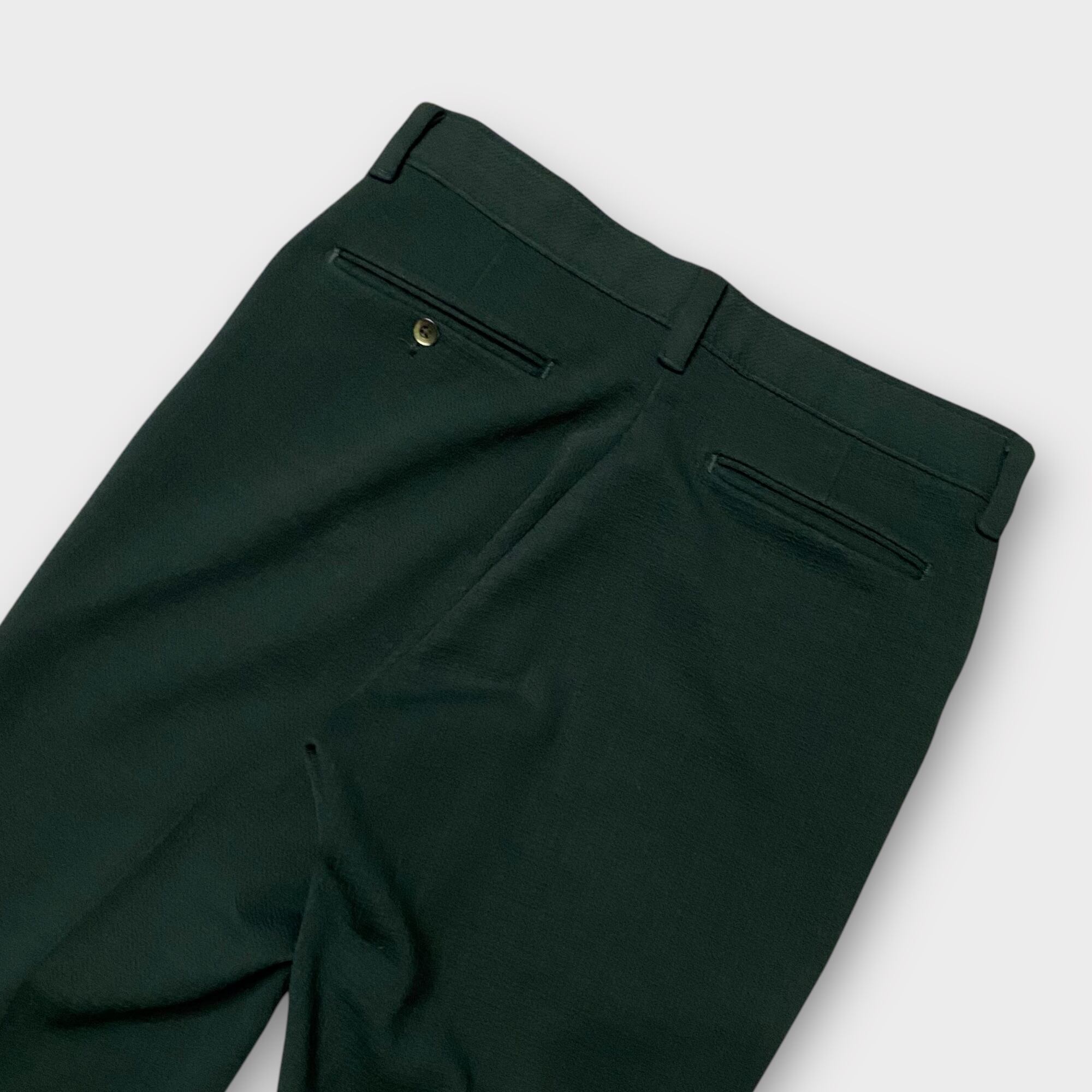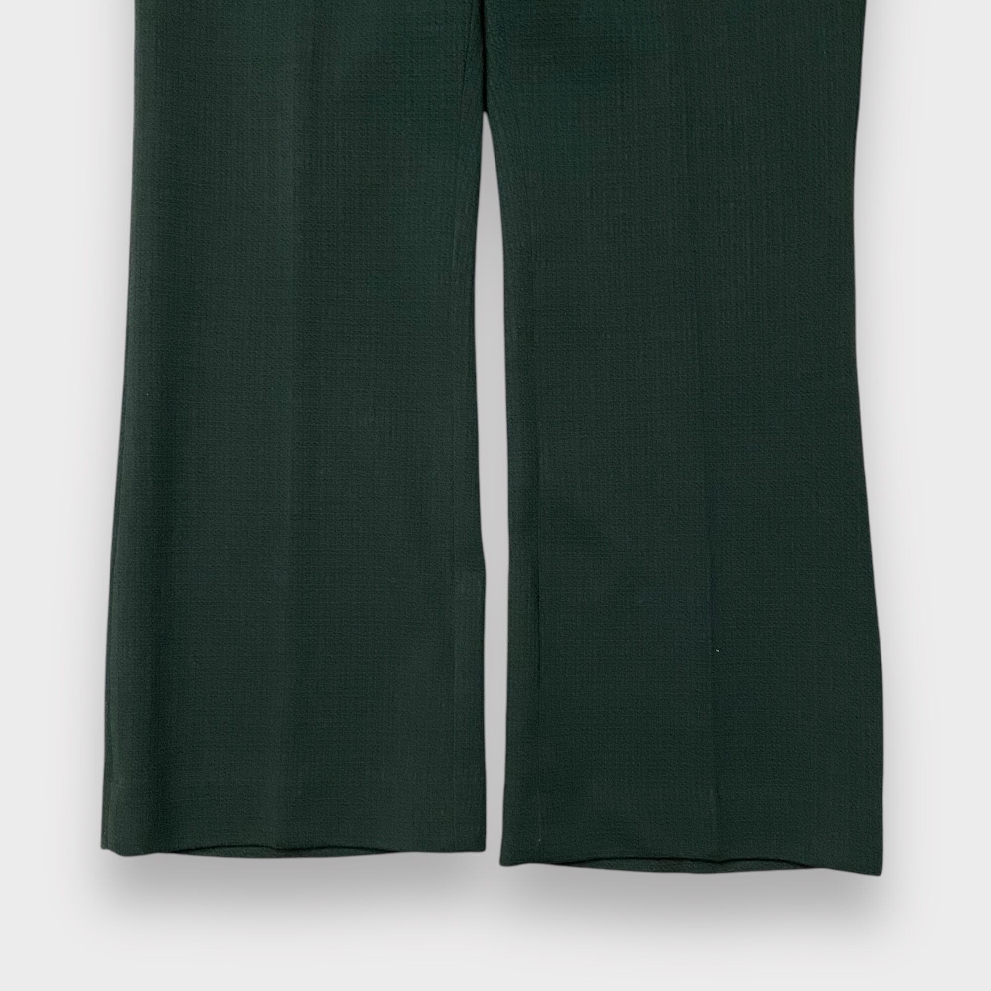 70s FARAH knit pants SCOVIL zipperは、ダークグリーンの美しいカラーと絶妙なニットの編み柄が魅力的なスラックスです。微フレアなシルエットが、あなたのスタイルに洗練された印象を与えます。 このパンツは、70年代のレトロな雰囲気を持ちながら、現代のファッションにもぴったりフィットします。シンプルながらも存在感のあるデザインは、カジュアルからきれいめなスタイルまで幅広く活躍するでしょう。 この70s FARAH knit pantsで、新たなコーディネートの可能性を広げてみませんか?自分だけのスタイリングを楽しむことができ、ファッションの楽しみを再発見できる一着です。ぜひ、お手元にお迎えして、コーディネートを一層引き立ててください。