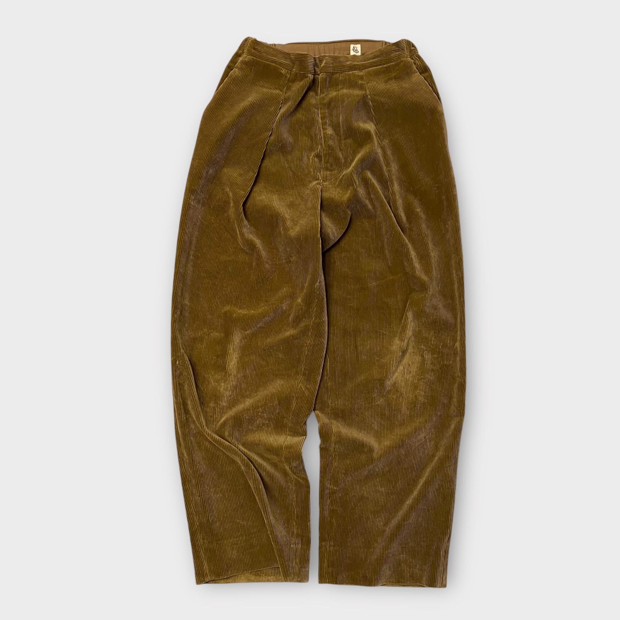 KAPTAIN SUNSHINE corduroy wide pantsは、滑らかで光沢のあるコーデュロイ素材が特徴の一着です。ワイドなシルエットが抜群に格好よく、シンプルながらも存在感を放つデザインです。このパンツは、リラックスした雰囲気とトレンド感を同時に演出し、カジュアルな日常使いはもちろん、お出かけスタイルにも適応します。