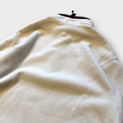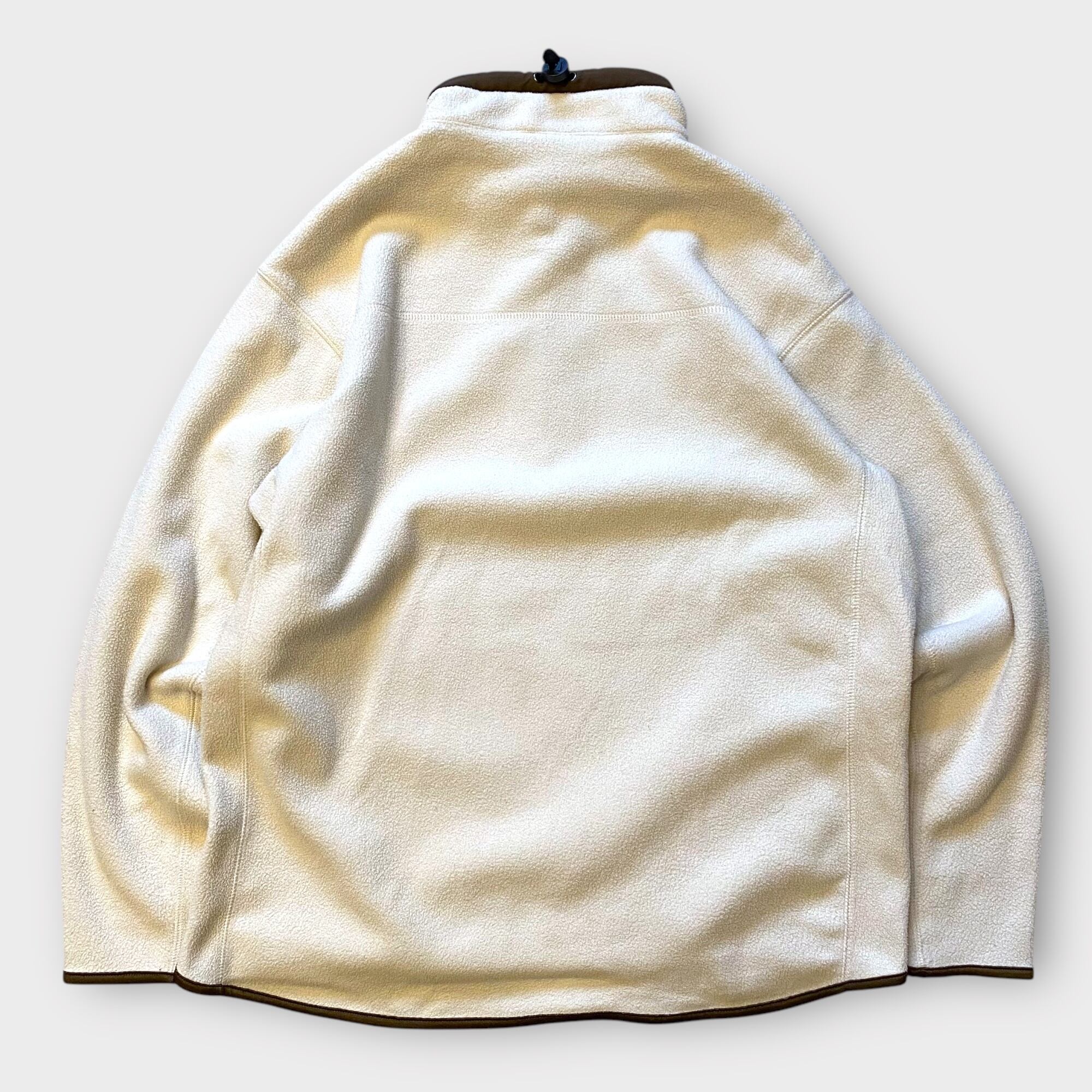 オフホワイトとブラウンの絶妙な配色が魅力のこのフリースは、独特なデザインディテールが盛りだくさんの一着です。パイピングや裾に施されたスウッシュが、シンプルな中にもスタイリッシュな印象を与えており、目を引くポイントとなっています。