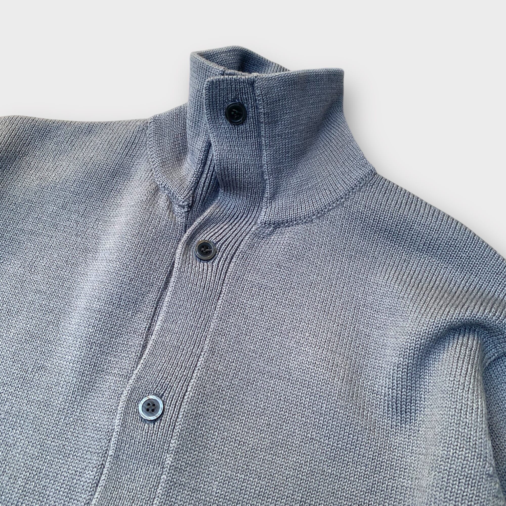 オールドのビームスより登場した、グレーのボタンセーターは、使い勝手が良いハイネックが魅力です。ハイネックはそのまま着用できるのはもちろん、倒して襟として使うことも可能なツーウェイデザインが嬉しい一着です。ウール素材ならではの柔らかな肌触りが心地よさを提供し、秋冬の寒い季節には欠かせないアイテムとなっています。