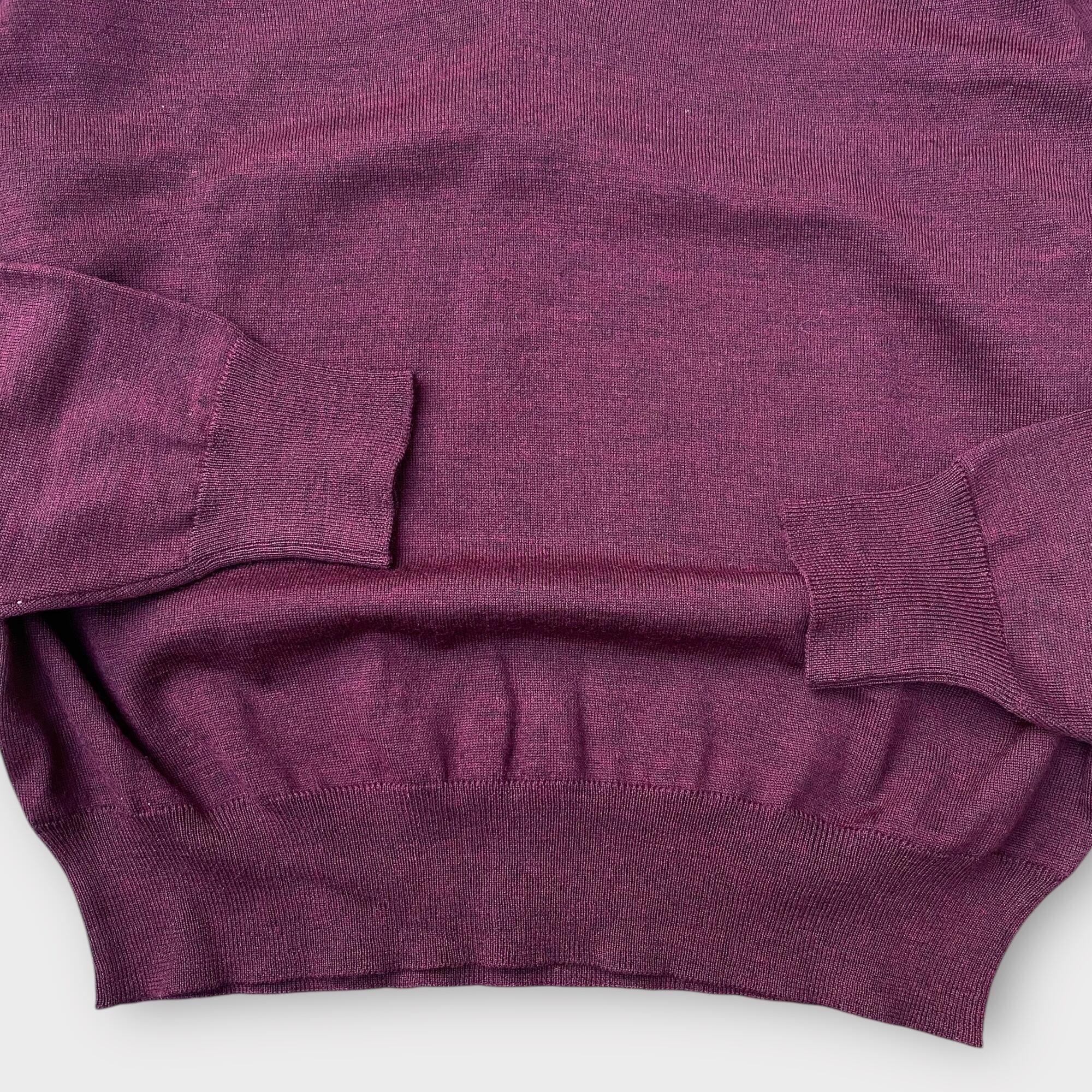 セクシーなボルドーカラーが印象的なゼニアのウールVネックセーター。イタリア製の高品質素材を使用しており、デイリーユースにぴったりな一着です。温かみのあるスムースな肌触りが、秋冬のコーディネートに華やかさを添えてくれます。