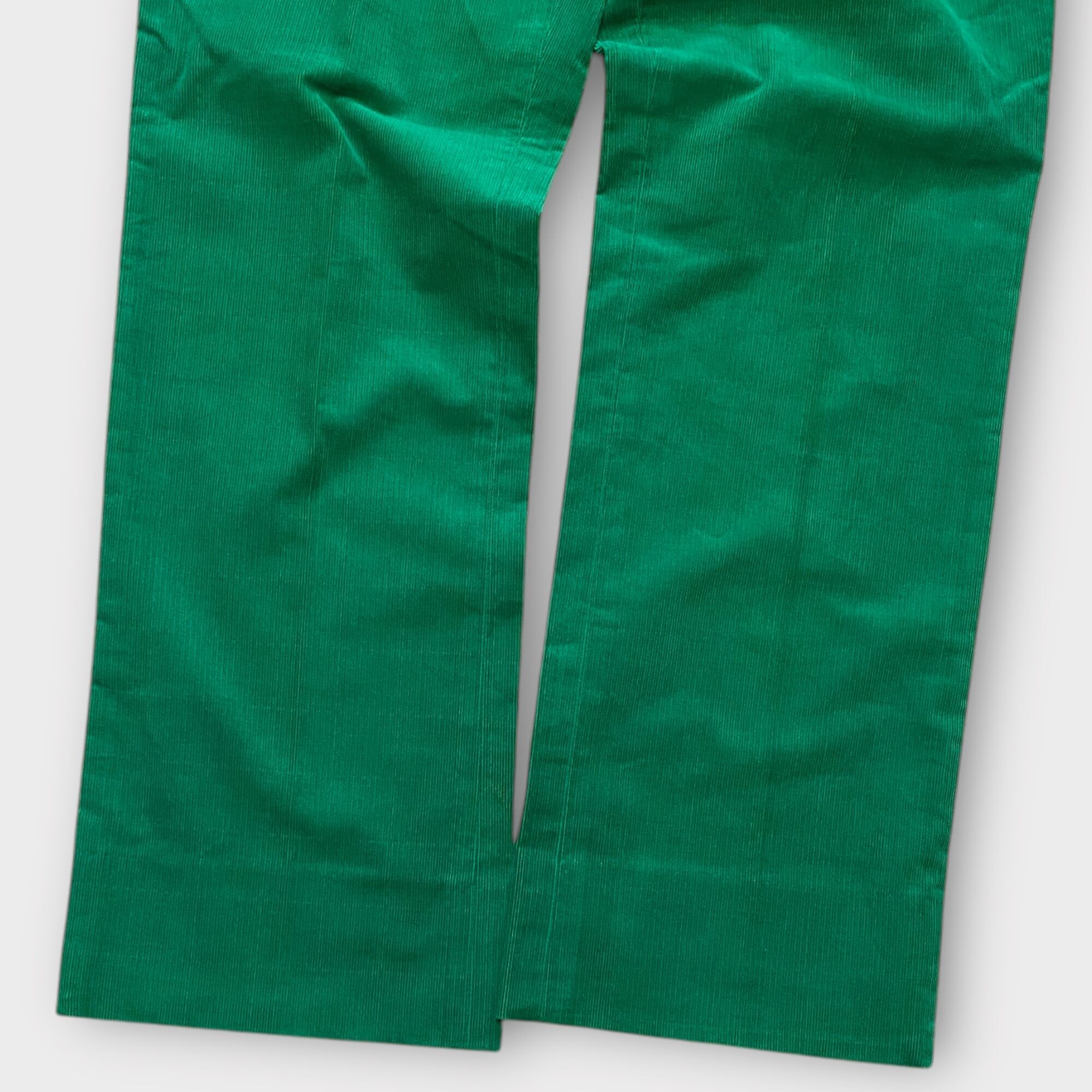グッドなグリーンカラーに同色のチェックが映える、細畝コーデュロイスラックス。美しいシルエットと魅力的なカラーが、コーディネートに新しいアクセントを加えることでしょう。意外とどんなスタイルにも合うため、カジュアルからフォーマルまで幅広く活用できます。