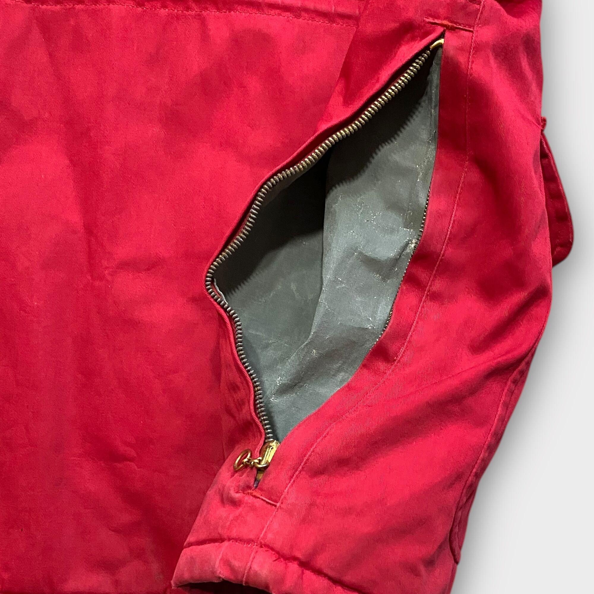 ヴィンテージの魅力が詰まった70s- sears Ted Williams hunting jacket。フェードした赤がとにかく目を引くデザインで、存在感抜群のハンティングジャケットです。フードはボア付きで、ジッパーを開け閉めすることでスタイルを楽しむことができ、寒い季節のバックスタイルにもぴったりです。